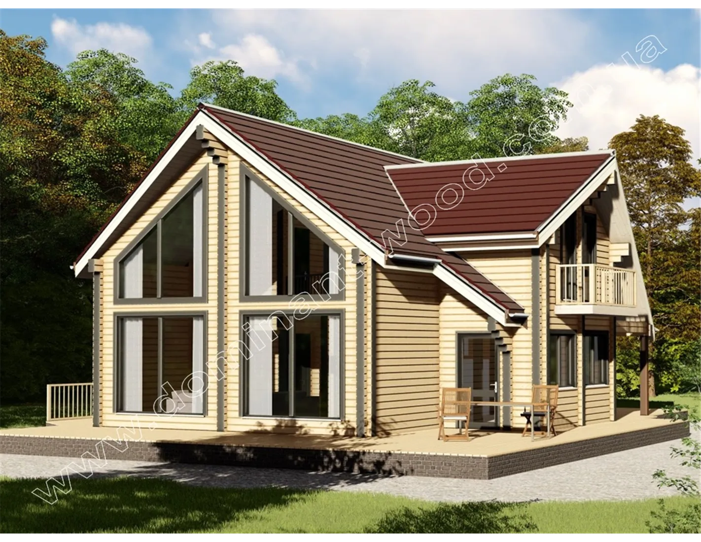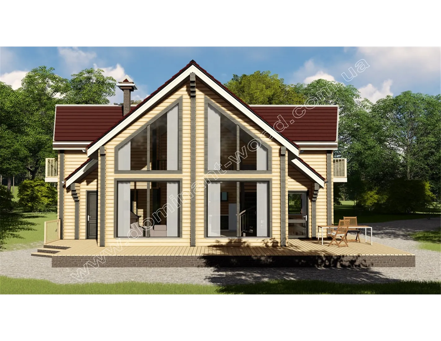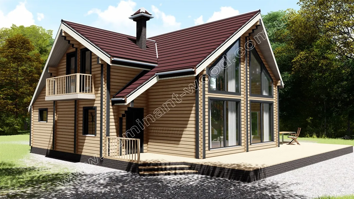 Яскрава краса високих, гострих дахів та величезних вікон проекту «Аполон» зумовила великий попит на будівництво саме цього проекту. Ефектний дизайн будинку з брусу, за красою порівнянний з грецьким богом краси, неодноразово надихав наших клієнтів на будівництво унікальних проектів, наприклад, розкішний зруб з дерева на замовлення. Цього разу ми презентуємо варіант проекту із сухого, профільованого бруса. Звісно, «Аполлон2» значно відрізняється від вихідного проекту, оскільки строгі, прямокутні форми шліфованого бруса передбачають наявність лише прямих кутів. Але, як і раніше, величний маєток з брусу створений для того, щоб довгі роки прикрашати життя та створювати комфорт великій та дружній родині.