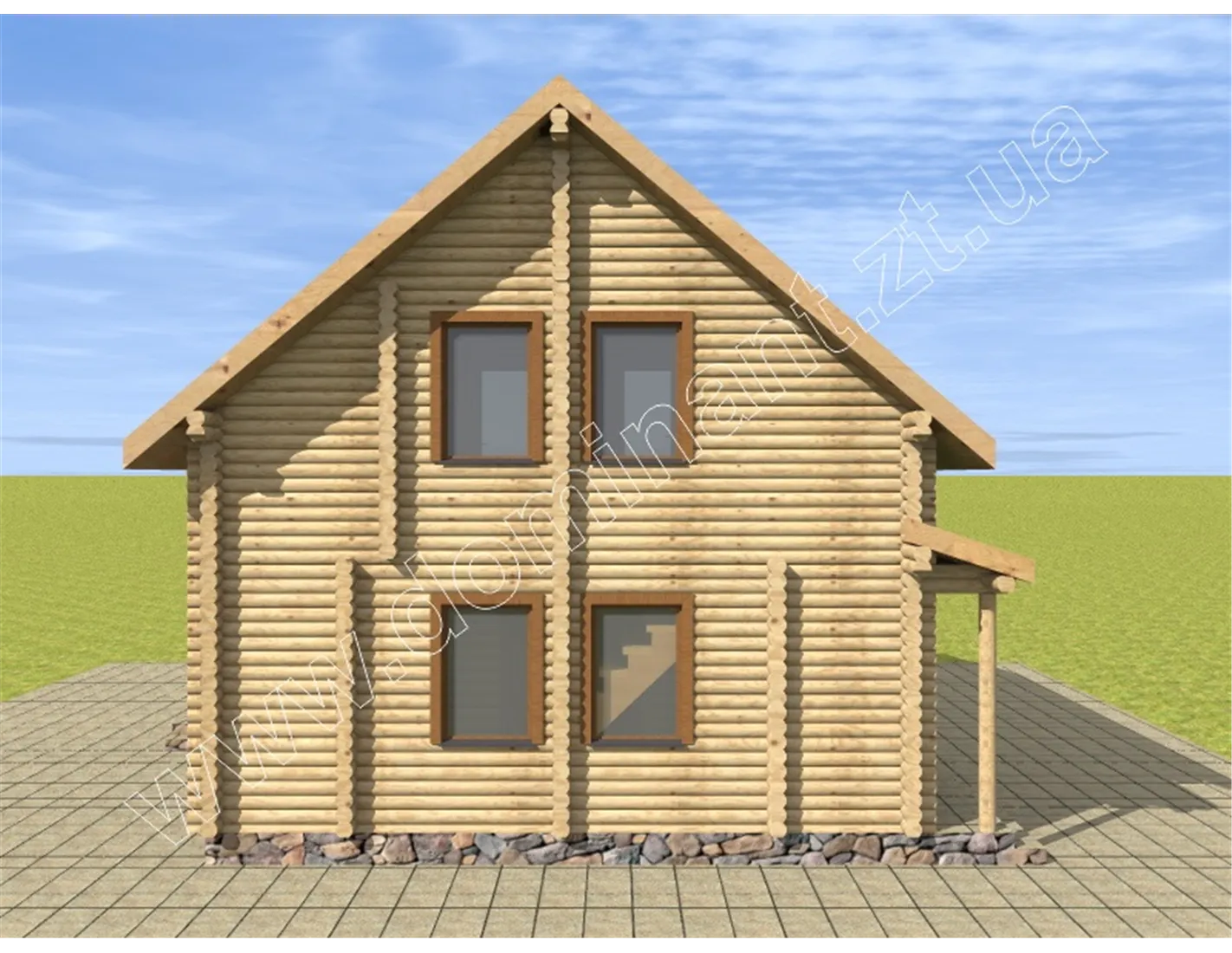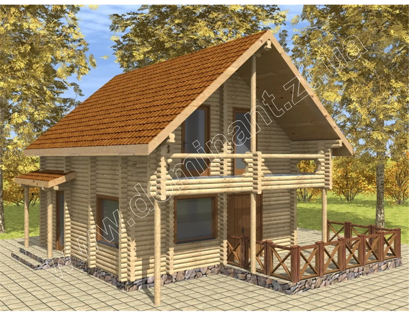 З іншого боку, подібні проекти хороші для впровадження в курортний бізнес, так як мають хорошу місткість і гармонійно вписуються в будь-який природний ландшафт. Добре такий будинок буде виглядати в оточенні гілок високорослих дерев, таких як: сосни, липи, дуби, ялини та інше. Як і ці масивні дерева, цей будинок вселяє надійність і спокій, свідчить про стабільність і вічність.