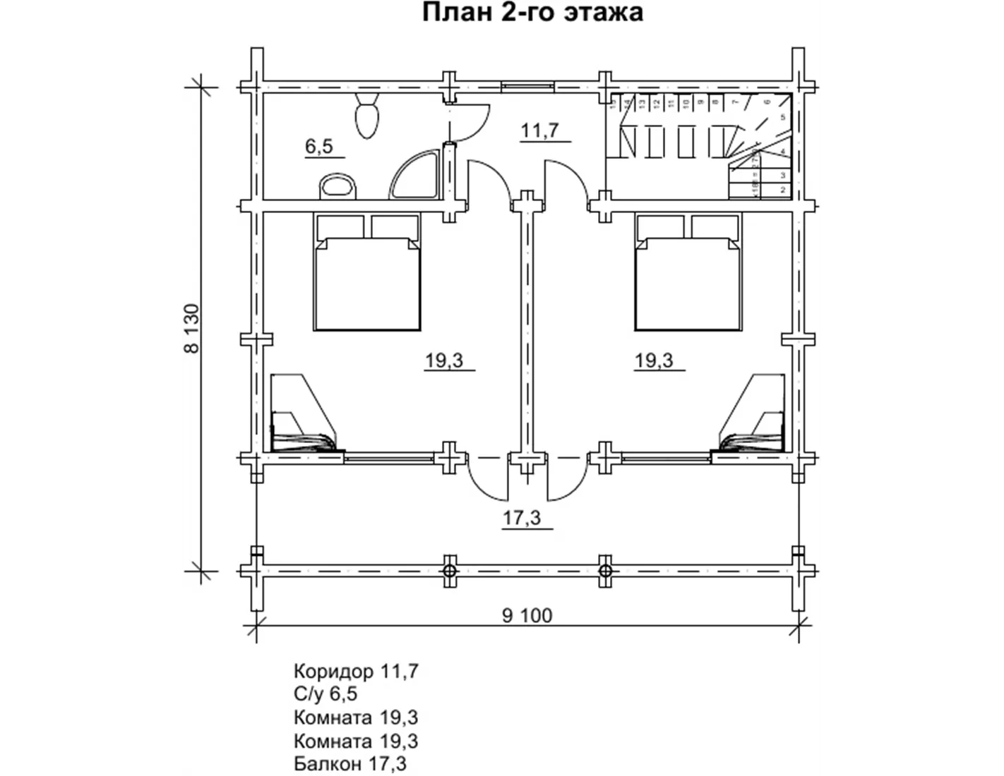 Двоповерховий котедж з бруса 8х9 м - «Петунія»