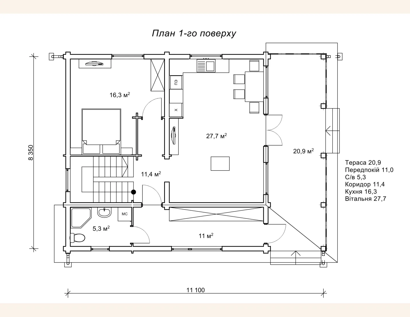 Дерев`яний будинок з проектом, ціни 8х11 м - «Семурі3к»