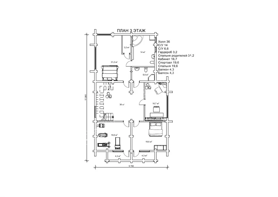 спальня (м²)19,6