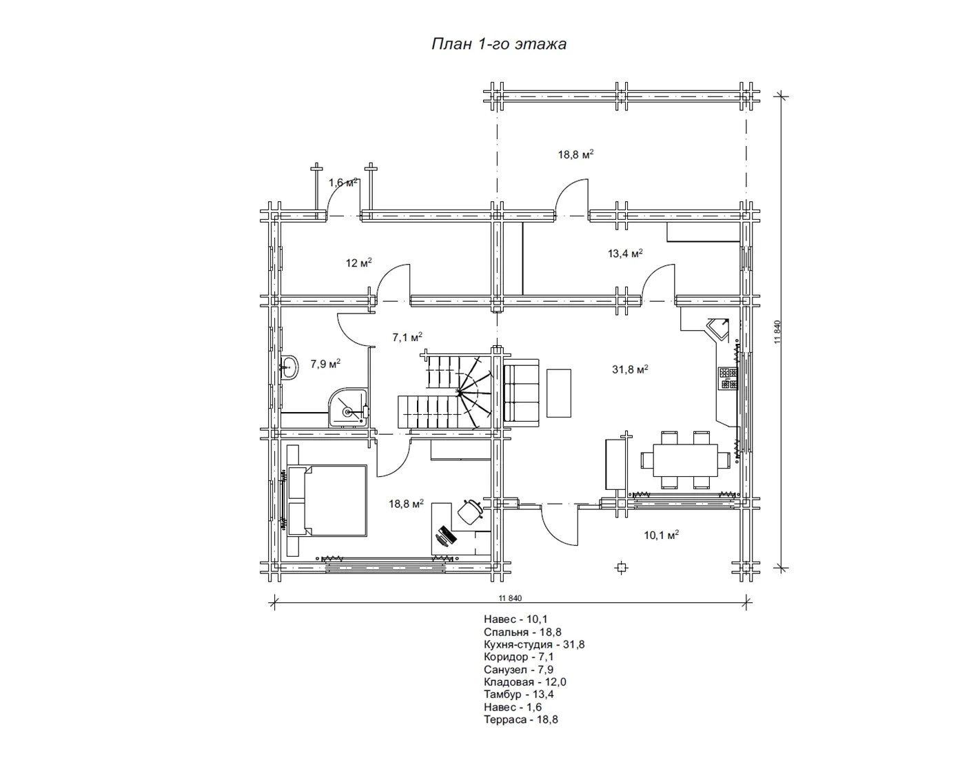 Проект будинку з дерева 11,8 х11, 8 м з утепленими стінами