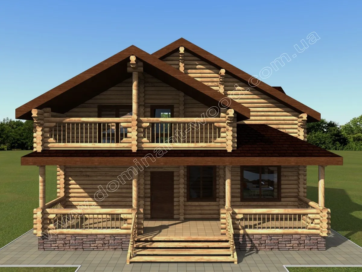 Розкішний особняк Жарта просто приголомшливо виглядає завдяки витонченої округлості оциліндрованих колод, цікавому багатогранному даху і затишному будиночку - балкончику. Великі світлі вікна роблять всю будівлю світлішою і яскравішою. Це ефектний дерев’яний зруб, який здатний тільки підкреслити гарний смак і високий статус свого господаря. Гарний дерев’яний будинок з цікавим балкончиком і літньою терасою Жарта, гостинно запрошує скоріше увійти і дізнатися, що ж в ньому знаходиться.
