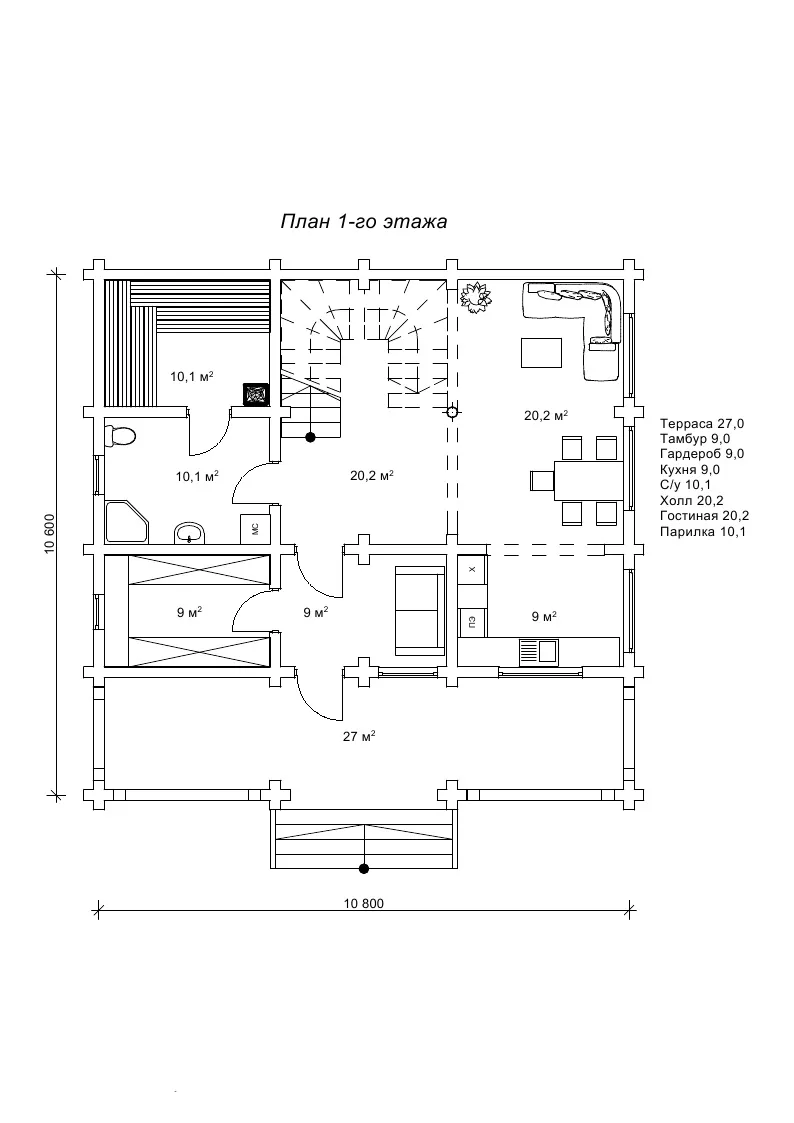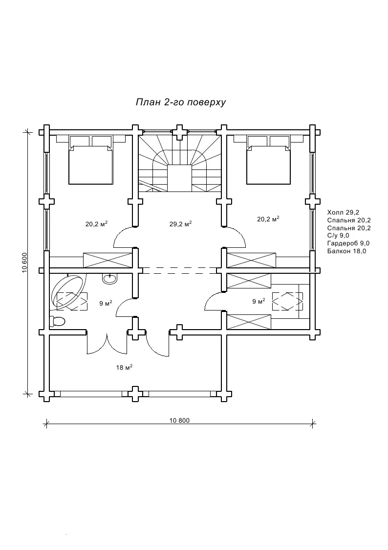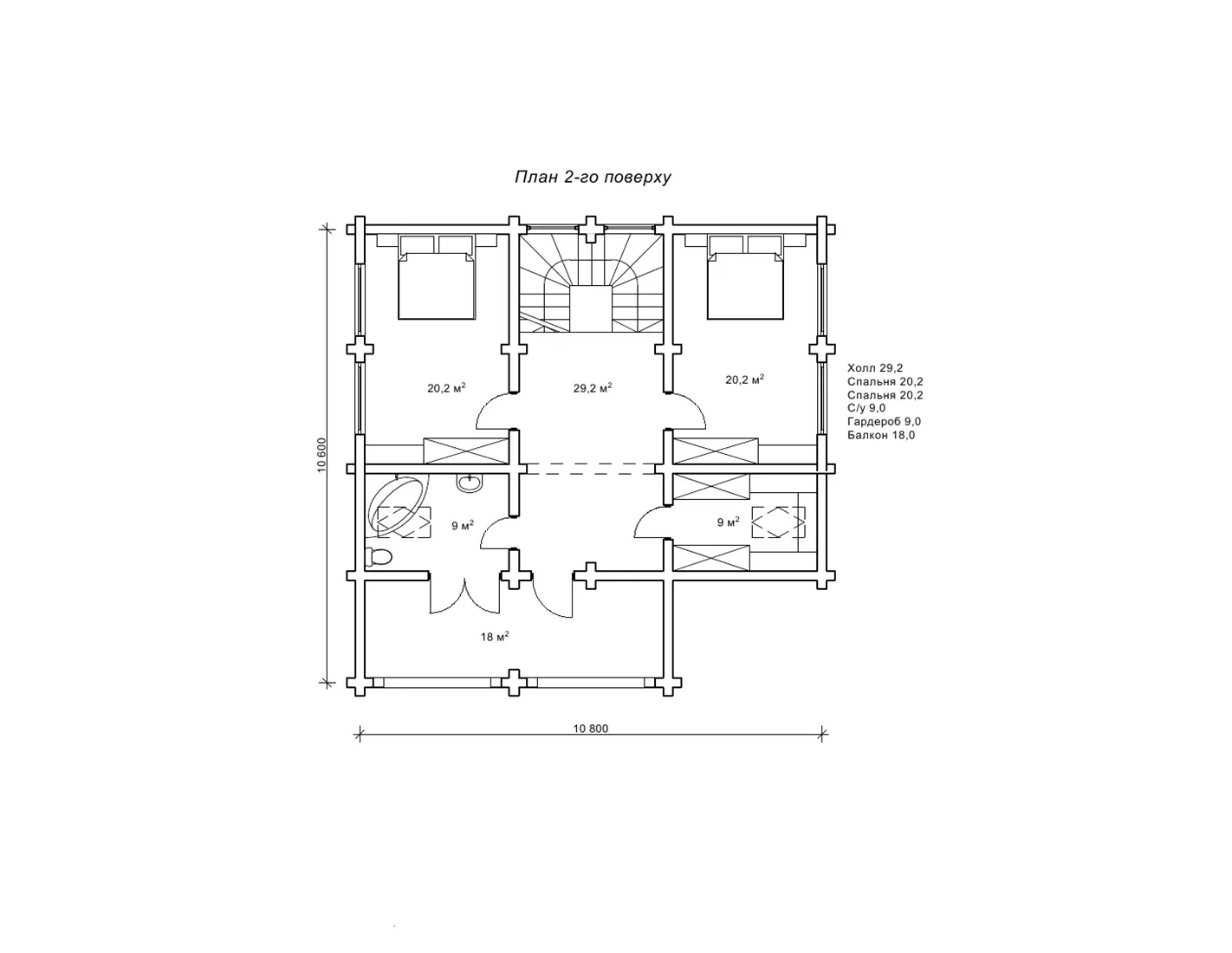 Двоповерховий дерев`яний будинок 10,6х11 м з лазнею - «Жарта»