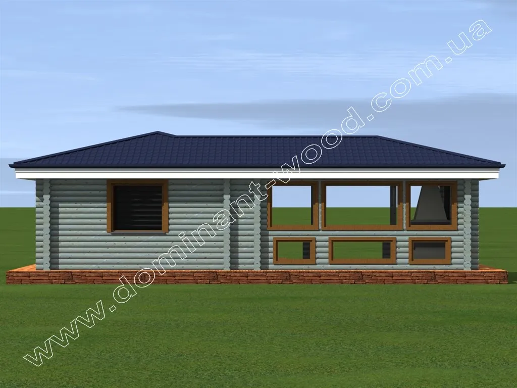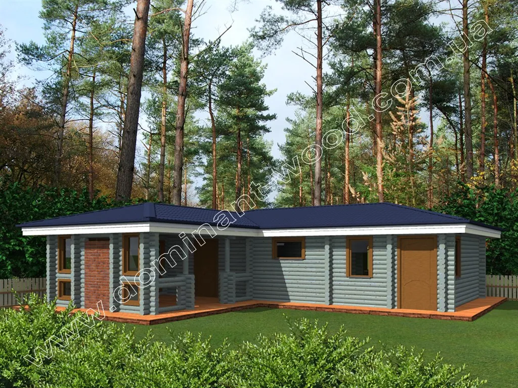 Планування будинку з бруса з альтанкою і каміном, 72,5 м2