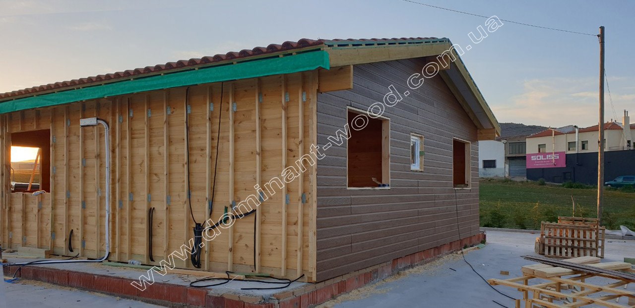 Каркасні конструкції виготовляються на власних виробничих потужностях компанії «Домінант», з використанням сучасних деревообробних станків. Імпортне, високоточне обладнання дозволяє нам високоякісно виконувати свою роботу. Каркаси складаються зі струганих, ретельно висушених балок 150х50 мм (сосна першого сорту). Ці балки застосовуються для зовнішніх каркасів.