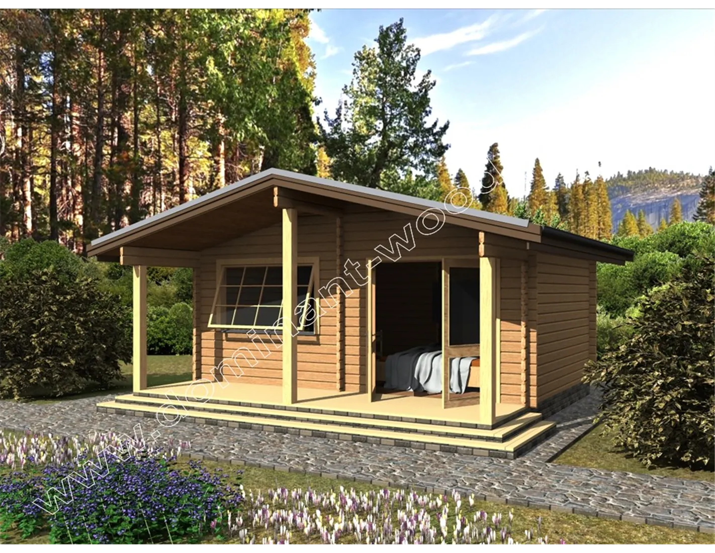 Однокімнатний літній будиночок «Лакум» урізноманітнить вашу дачну ділянку, не займе багато місця і стане затишним куточком відпочинку після продуктивної праці в саду або городі. Привабливий дерев’яний котедж з терасою обов’язково сподобається вам завдяки своїй натуральній красі. Будиночок «Лакум» виконується з сухого соснового бруса, який наповнить затишну кімнатку літньої дачі свіжістю хвойного лісу і корисними фітонцидами (природними антисептиками), якими так відома сосна. Поставивши собі таку дачу з бруса, ви зможете приїжджати сюди не тільки, щоб відпочити, а й оздоровитися, і наповнитися силою природи.