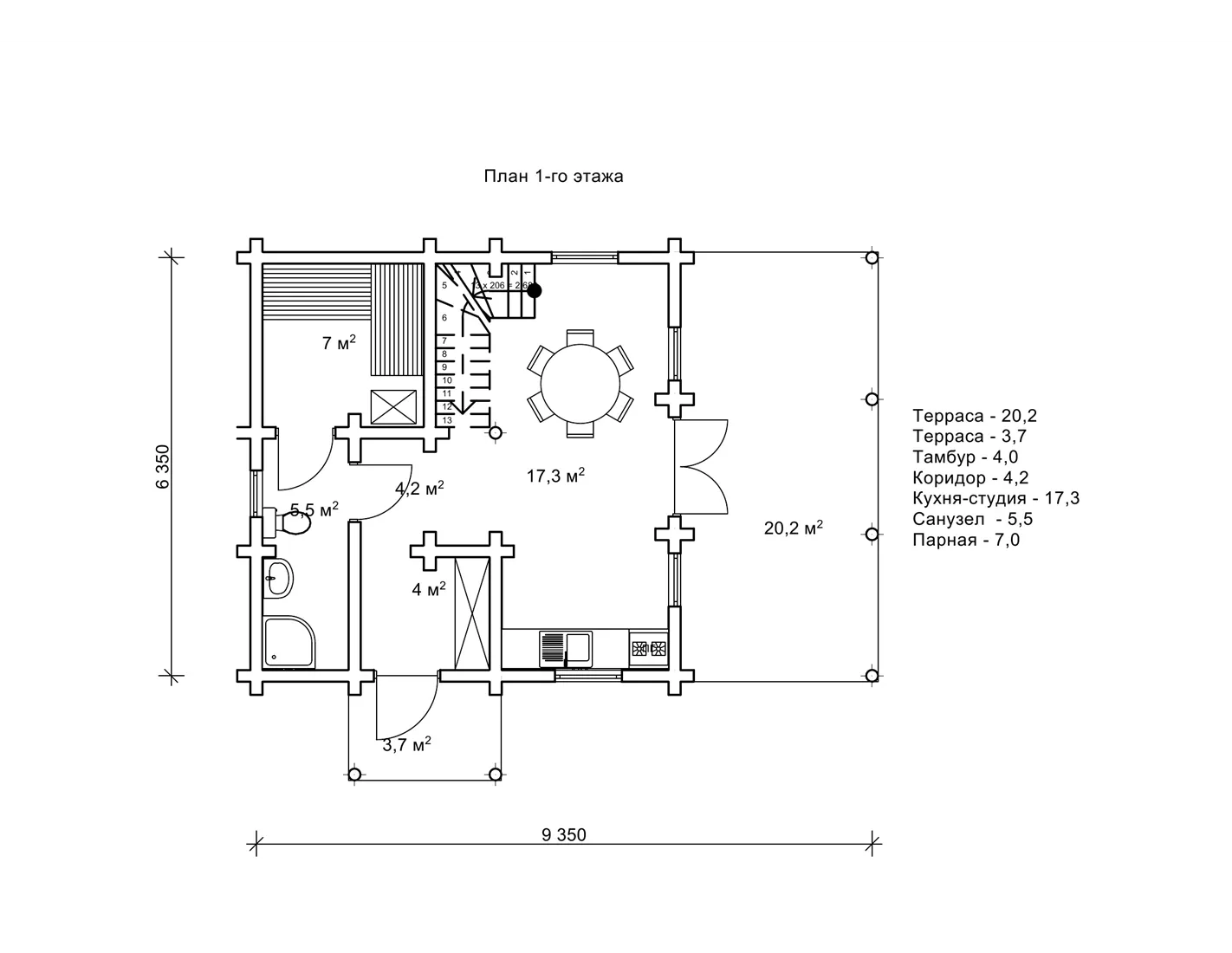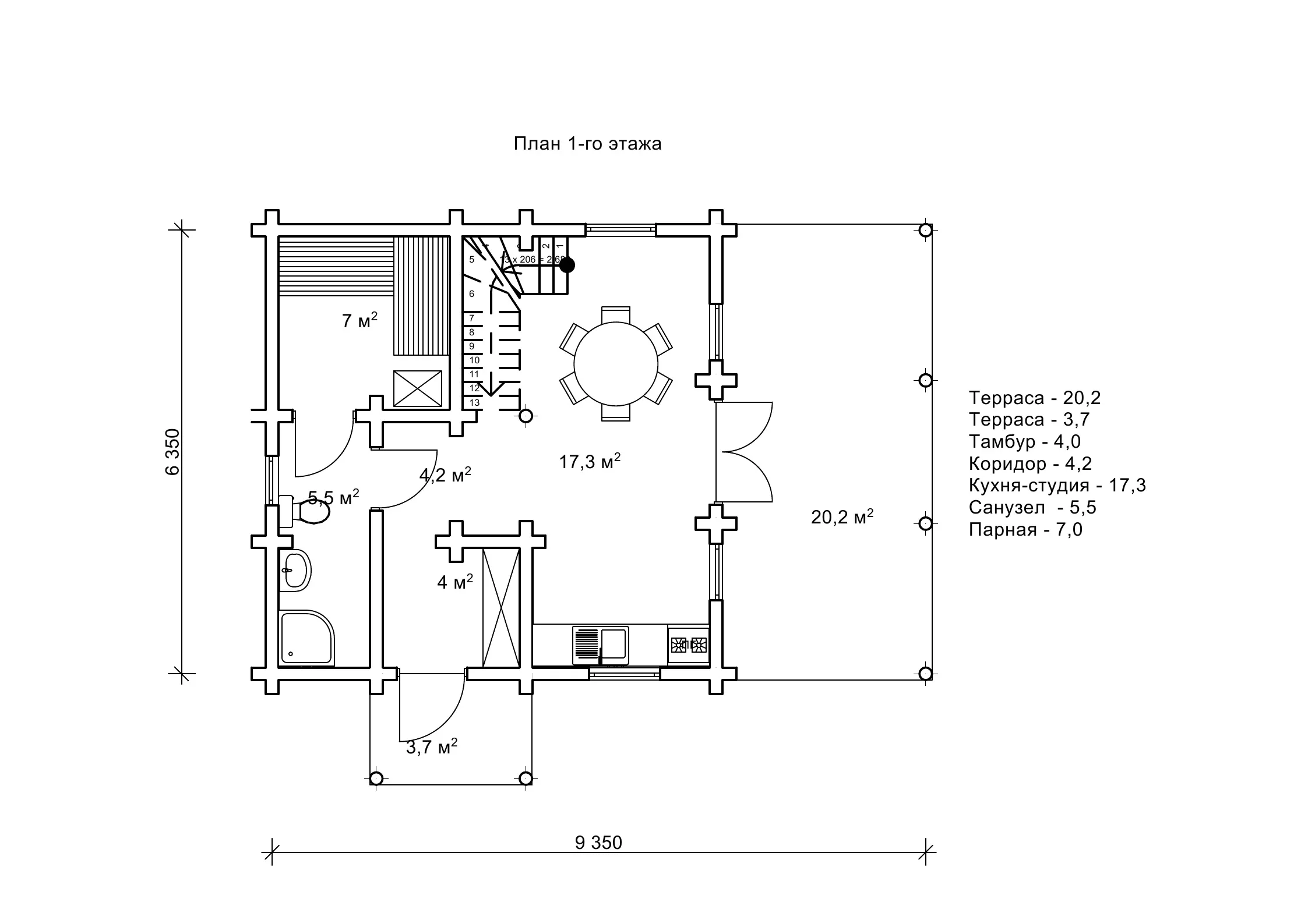 Проект дерев’яного будинку «Баура2» з парною