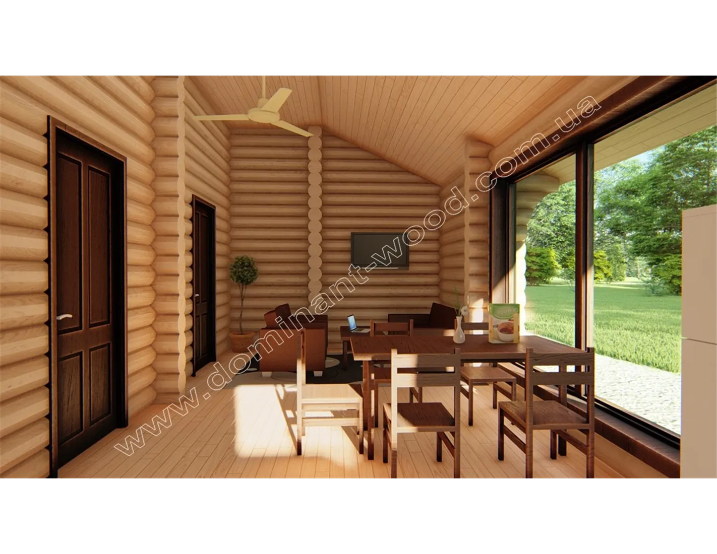 Так як двокімнатний будиночок зі зрубу «Часей» вміщує все, що необхідно для комфортного розміщення та проведення часу, то його комерційне використання принесе гарний і постійний прибуток господарям. Чому ще повною мірою сприятиме креативний дизайн запропонованого проекту, який відображає нестандартне мислення його власника. Дійсно, екстравагантний зовнішній вигляд будівлі так і манить заглянути всередину, де все може бути ще барвистішим і вишуканіше оформлено. Зовнішня краса екстер’єру залишає нескінченний простір фантазії для оформлення внутрішнього простору будиночка. Один із варіантів затишного та максимально наближеного до природи інтер’єру можна подивитися на цій сторінці у візуалізаціях нашого архітектора. Будівництво двокімнатного будиночка із зрубу за проектом «Часей» - один з найкрасивіших і функціональних варіантів облаштування заміської ділянки!