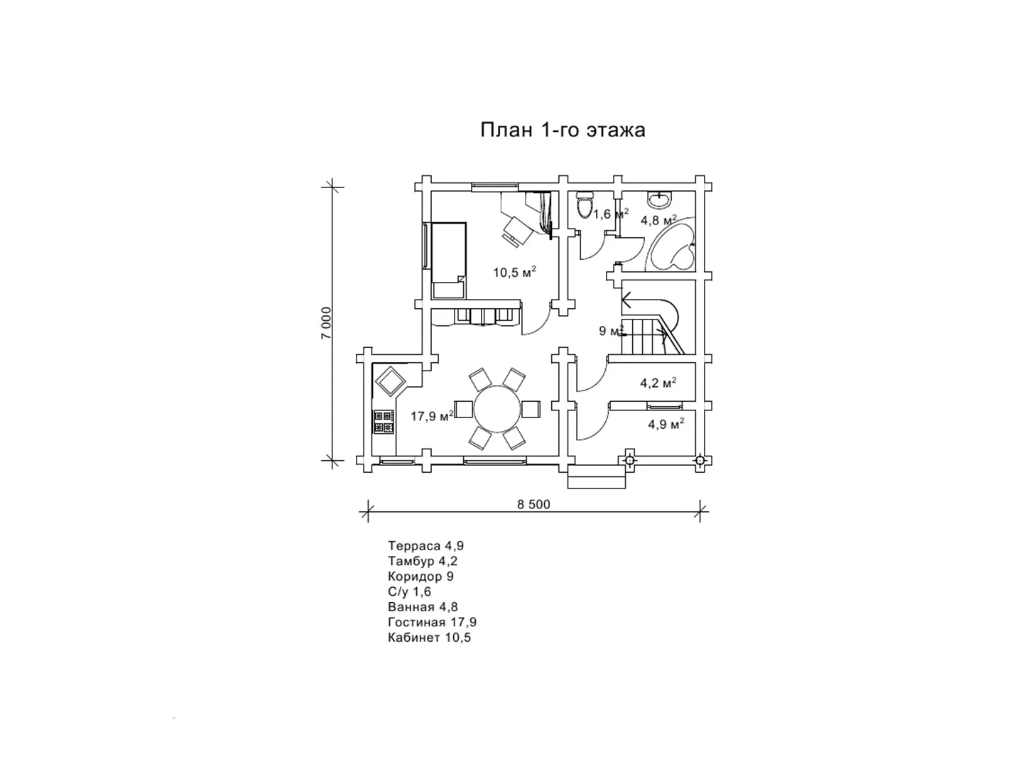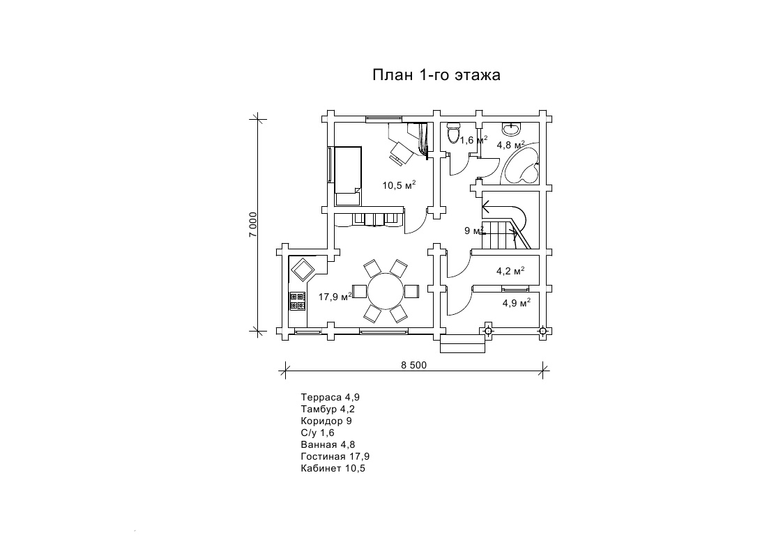 Дерев`яний зруб 7х8,5м з мансардою - «Авінрус»