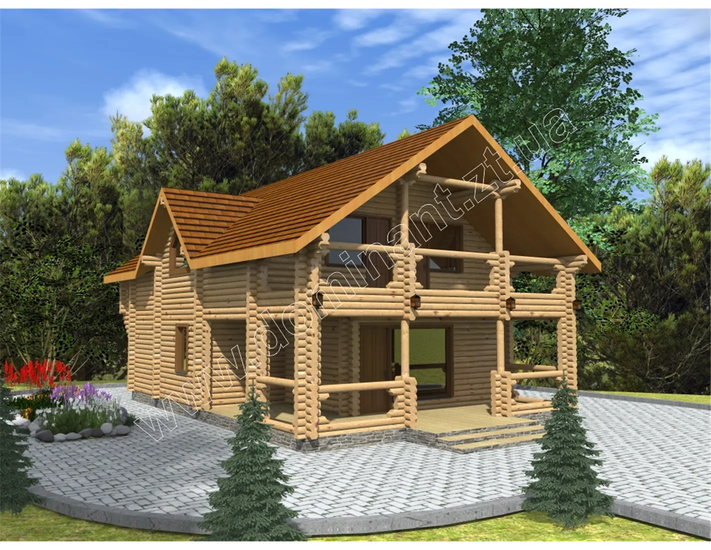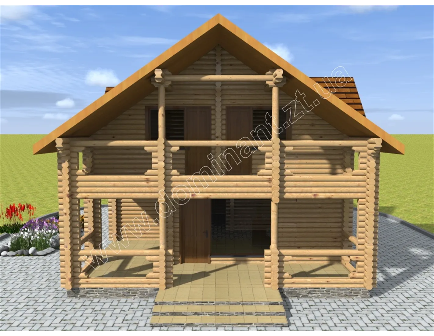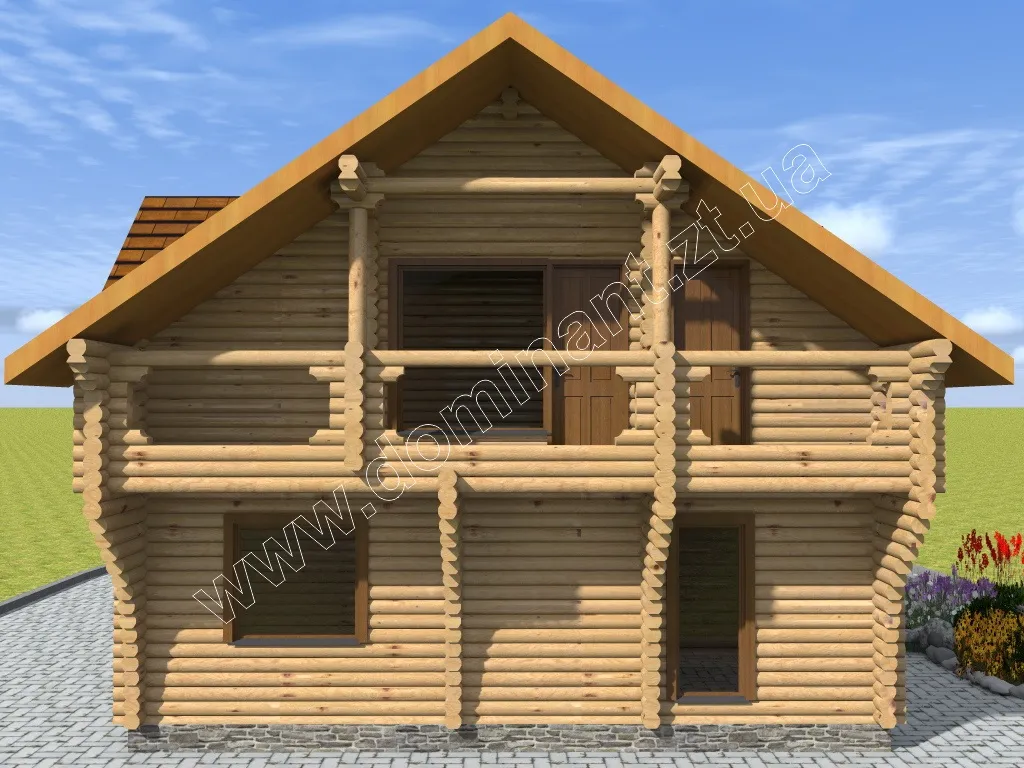 Гарний, презентабельний і затишний двоповерховий особняк з просторою верандою, мансардою і балконом - це наш проект Мілана. Особливого шарму дому надається плавними вигинами стіни, що утворює навіс над першим поверхом під балкончиком. Витончені округлості кожної колоди в ідеальній геометрії цього добротного будинку створюють незрівнянне відчуття завершеності. Кожен наш проект може бути виконаний з різних видів бруса. Технології будівництва читайте на сторінці з проектом Мілана: dominant-wood.com.ua/uk/proekty/303-milana Але саме цей проект найефектніше буде виглядати саме з круглого, оциліндрованого бруса.
