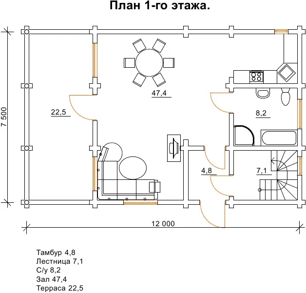 Такий проект виглядає дуже просторим і налаштовує до відпочинку. Відкрита тераса і балкон приваблюють своїми розмірами і розташуванням. Тут здорово буде присвятити час прочитанню хорошої книги або своїм власним думкам. У наш час бурхливого прогресу так не вистачає особистого простору і тиші. Так хочеться посидіти спокійно на лоні природи і послухати її заспокійливі звуки. Цей будинок настільки самодостатній, що навколо нього не особливо потрібен ландшафтний дизайн, досить газону з травою, за яким буде легко доглядати, що так само буде економити час господареві. А краще, якщо такий будинок буде розташований в лісі. Це додасть йому велику цінність. Хоч проект створений для дачі, в оригіналі і з додатковою модернізацією, він цілком може розглядатися як житловий будинок. При цьому будинок Женева спокійно може вмістити себе гостей і великі галасливі компанії. Їх можна буде розважити бесідою або вечерею на відкритому повітрі, а при холодній погоді - влаштувати перегляд фільмів у вітальні чи організувати настільну гру.