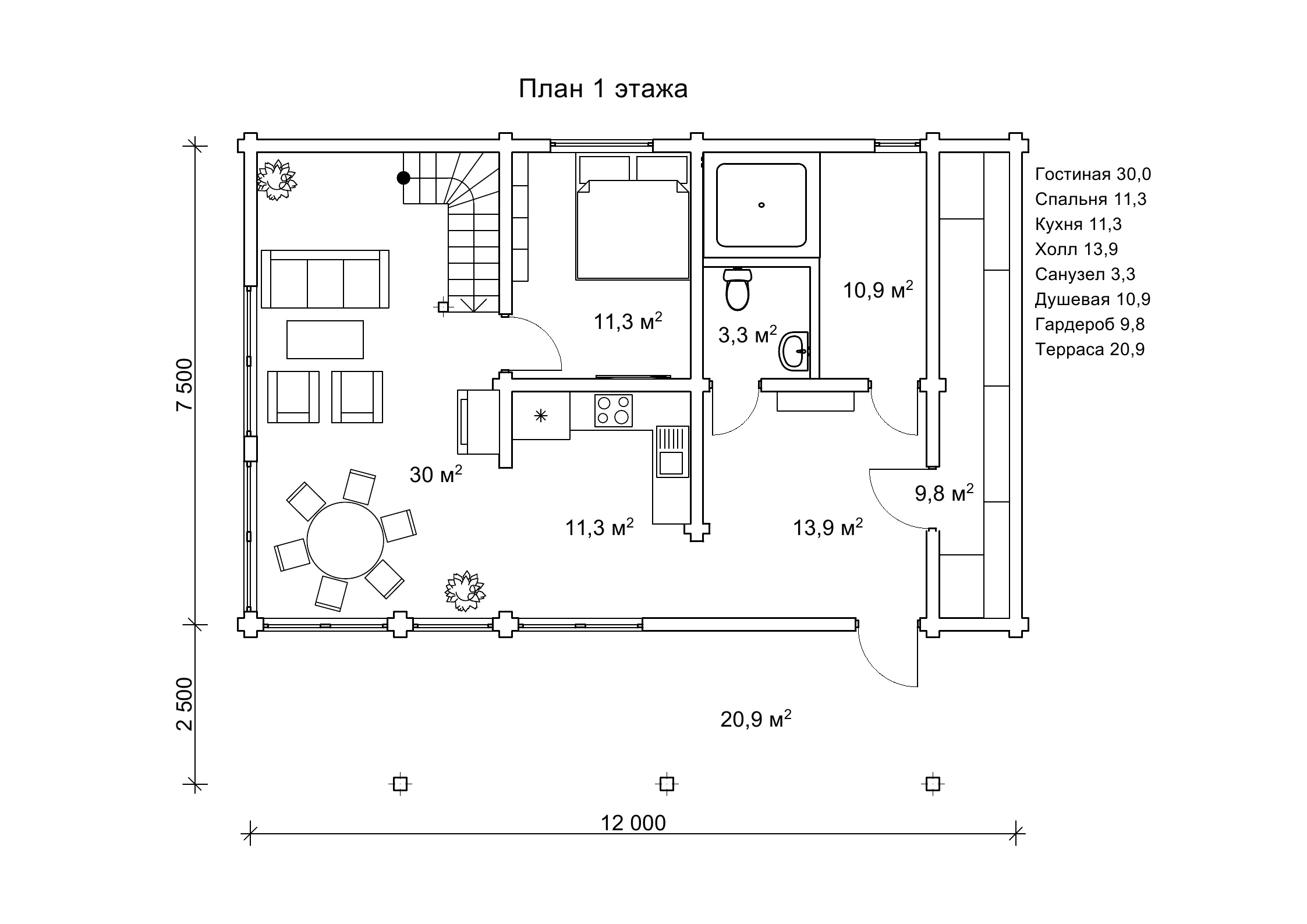На прикладі проекту «Ландег2» видно, як можна змінити і доповнити вже готовий проект котеджу згідно з уподобаннями замовника. В даному випадку з початкового проекту прибрали баню і замінили це приміщення на спальню. Таким чином, вийшов комфортний заміський будинок з двома спальнями, який підійде для сім’ї з дитиною або сімейної пари, яка любить гостей. Ми із задоволенням побудуємо вам брусовий будинок, якщо ви звернетеся в компанію «Домінант» за номерами телефонів: +38 063 499-91-00; +38 097 012-38-52 (Viber; WhatsApp)