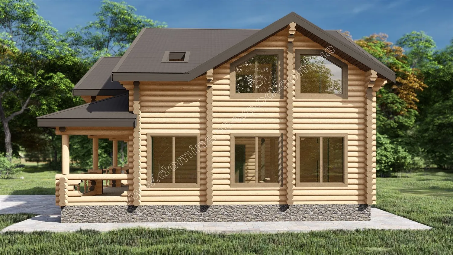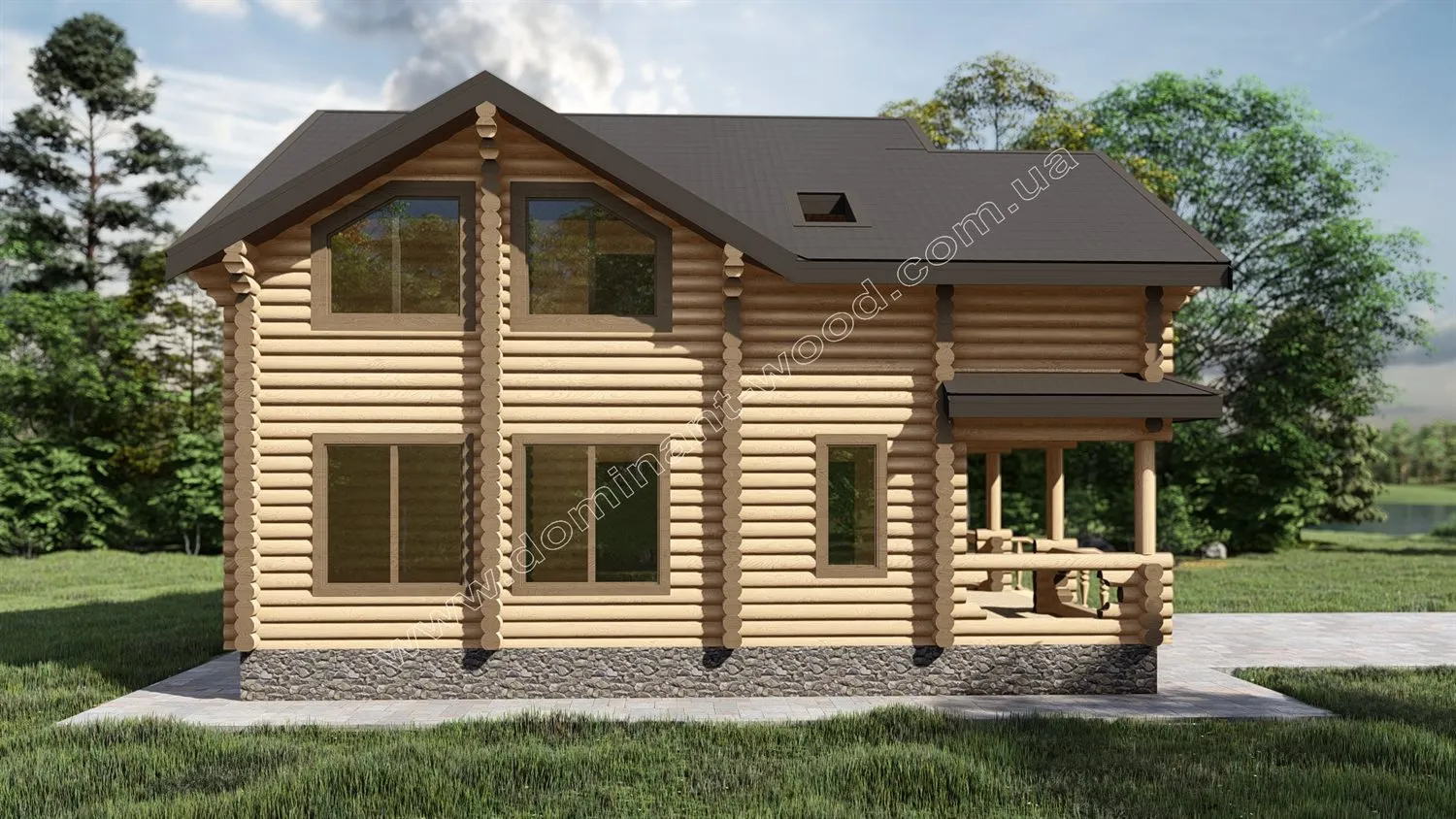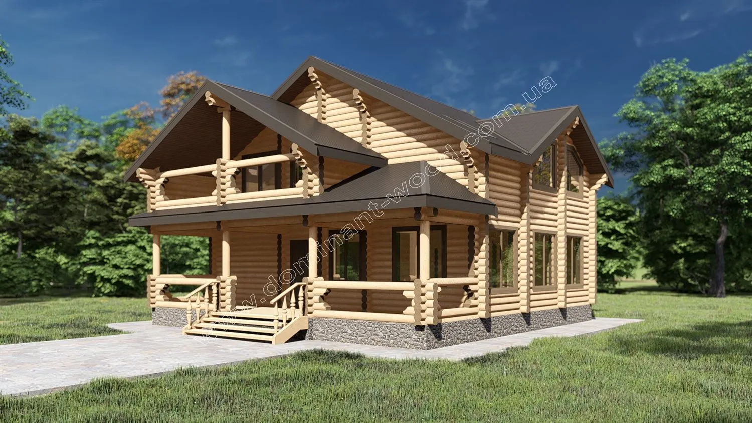 Проект Жартіна виконаний в оциліндрованому брусі на два поверхи, які включають просторі, світлі приміщення спалень, вітальні, кухні, тераси. Увійшовши до будинку, з тамбура відразу потрапляєш в студійний простір, який утворюється холом, вітальнею і кухнею. Таке планування особливо відкриває широту простору і можливості для реалізації цікавого дизайнерського оформлення інтер’єру. Дуже зручним рішенням планування виступає наявність спальні на першому поверсі. Такий варіант підходить для сімей, де підростають маленькі діти або є літні родичі, яким важко весь час підніматися і спускатися по сходах. Дуже зручною кімната буде для гостей, які приїдуть погостювати довше. Сучасний замовник, без сумніву, оцінить наявність в будинку балкончика і великої літньої тераси, де можна проводити багато часу в теплі, літні місяці.