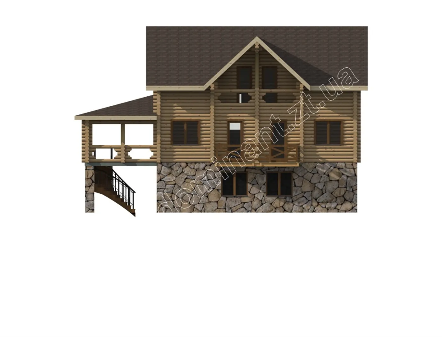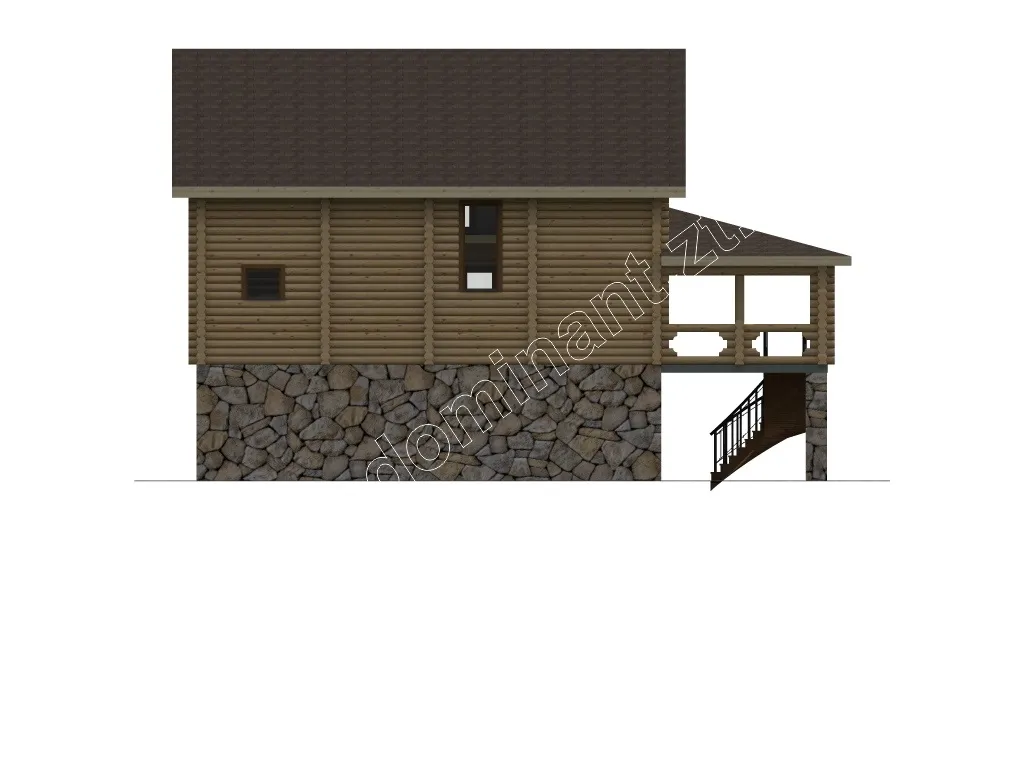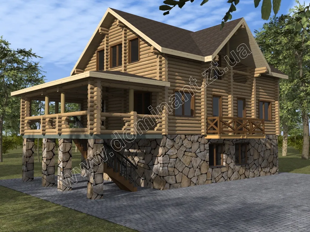 Дивлячись на цей будинок, у вашій душі виникне відчуття спокою і стабільності. Його гордовитий профіль і масивна конструкція, кажуть про його господаря тільки одне, що він не терпить обмежень і завжди має свою думку. Це уособлення достатку і благополуччя сім’ї. Дерево, як натуральний матеріал, вселяє довіру і говорить про консервативність, а камінь в основі фундаменту про тверді принципи і сильну основу роду.