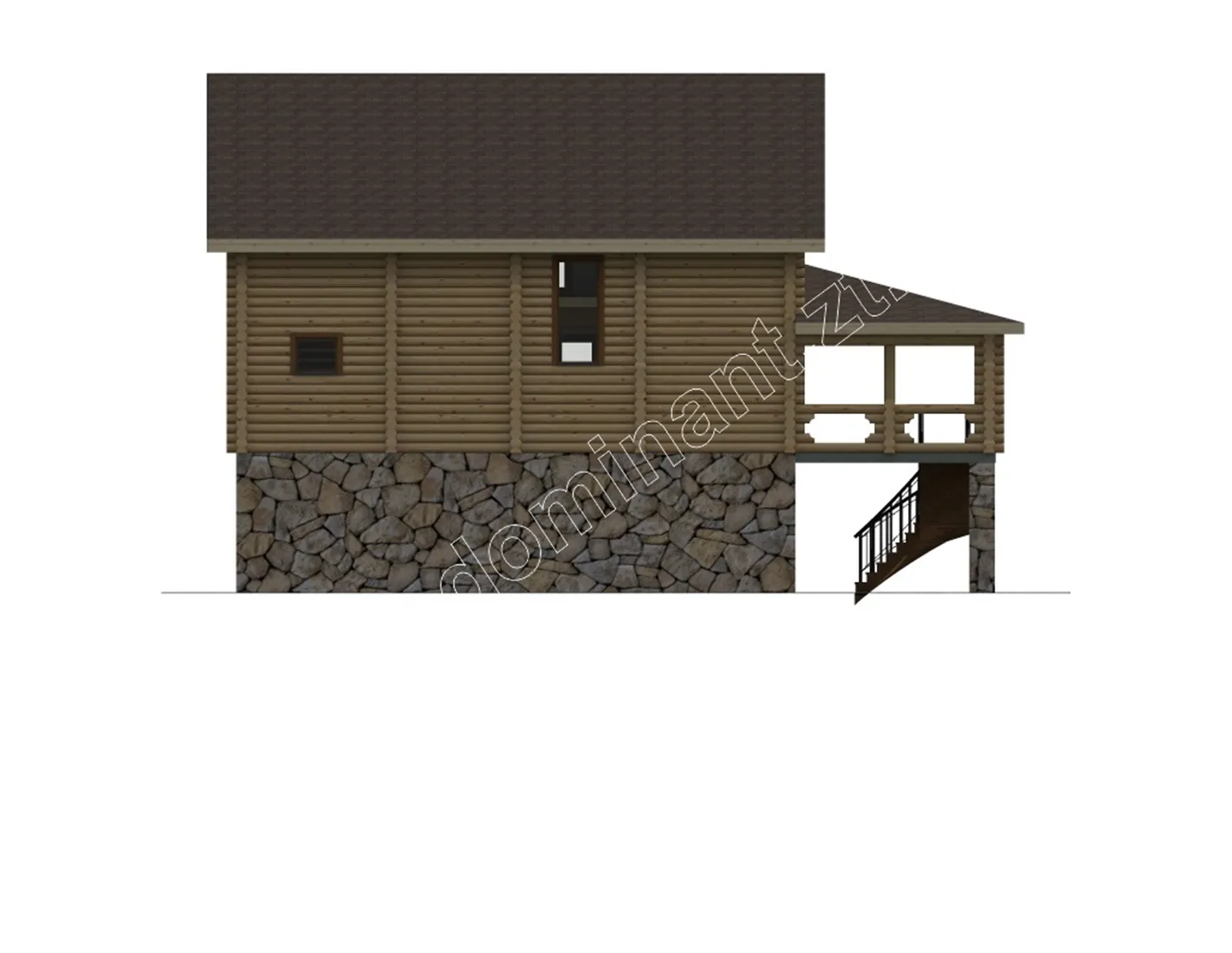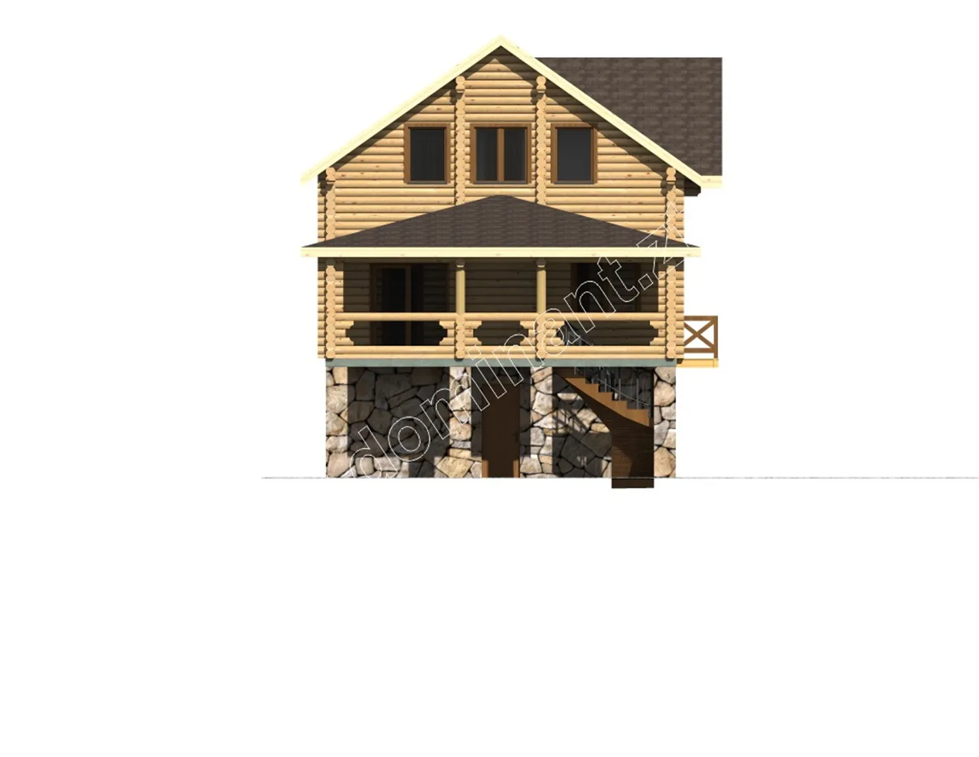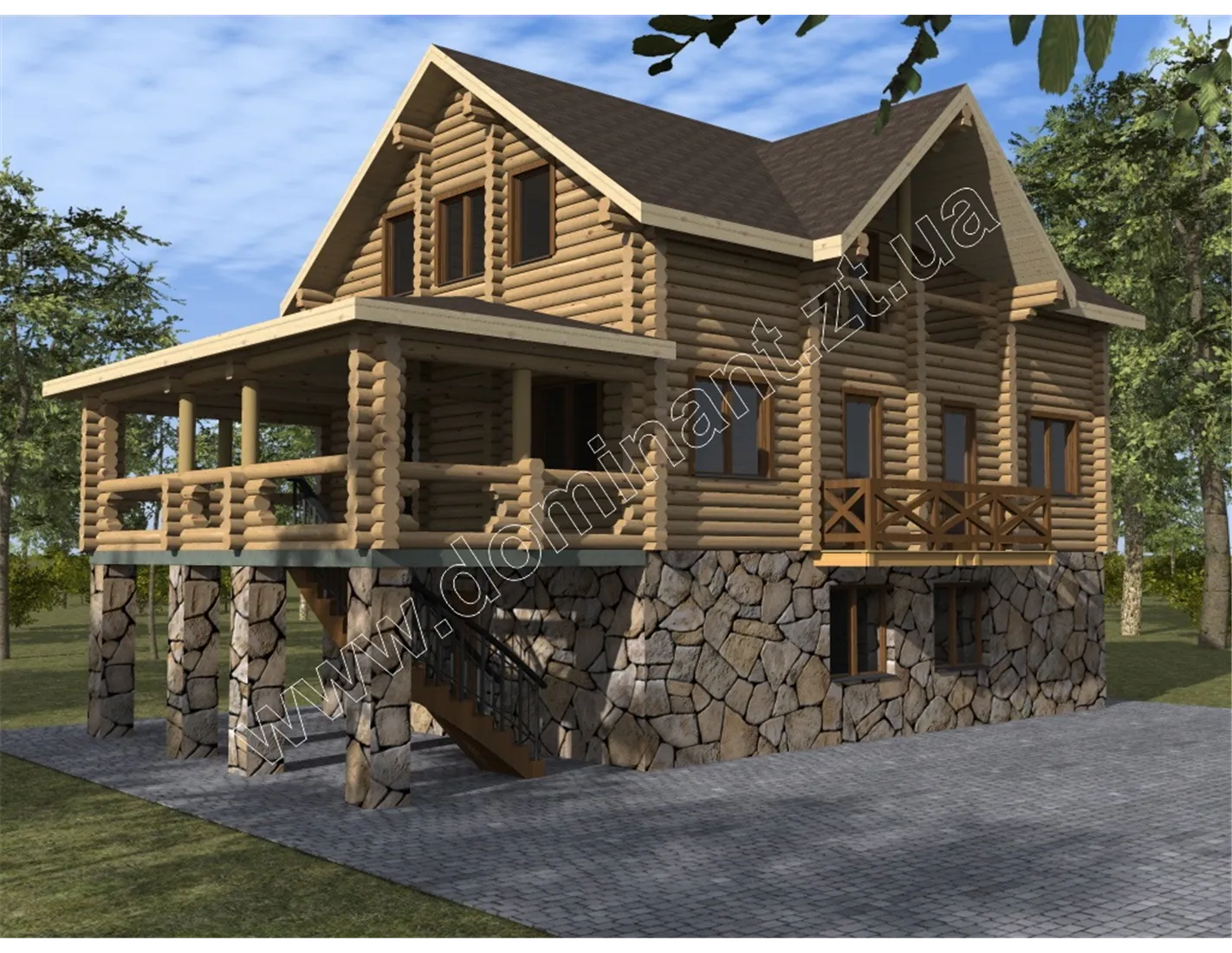 Дивлячись на цей будинок, у вашій душі виникне відчуття спокою і стабільності. Його гордовитий профіль і масивна конструкція, кажуть про його господаря тільки одне, що він не терпить обмежень і завжди має свою думку. Це уособлення достатку і благополуччя сім’ї. Дерево, як натуральний матеріал, вселяє довіру і говорить про консервативність, а камінь в основі фундаменту про тверді принципи і сильну основу роду.