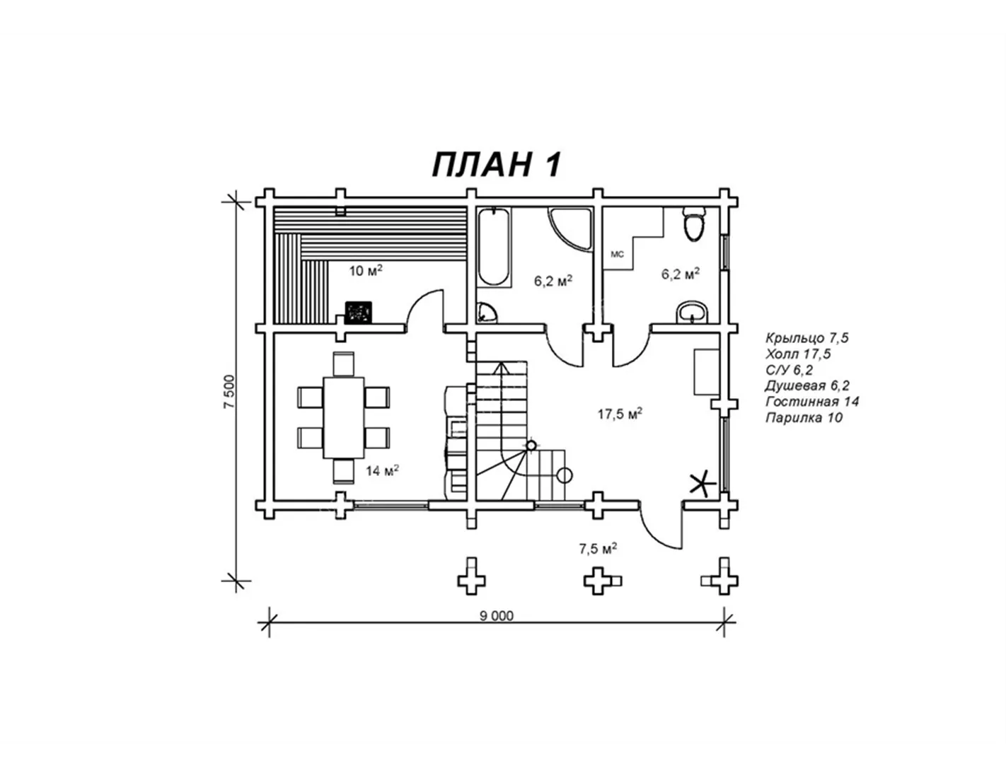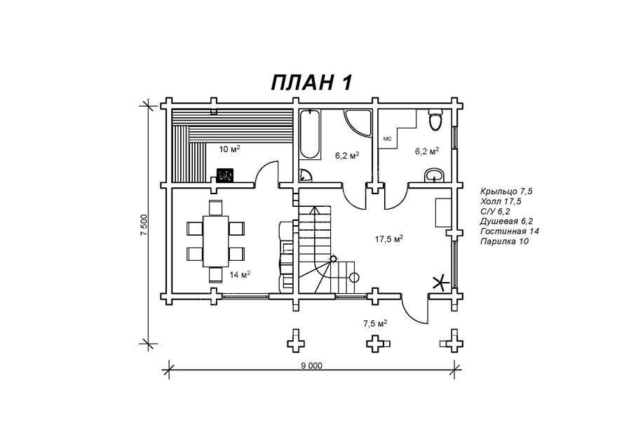 Двоповерхова баня є значно функциональнішою, ніж одноповерхова, і при цьому ще може виконувати функцію заміського дачного будинку. На плануванні видно, як компанія «Домінант» радить вам розмістити кімнати. При цьому ви можете використовувати приміщення, згідно вашим звичкам і вимогам.