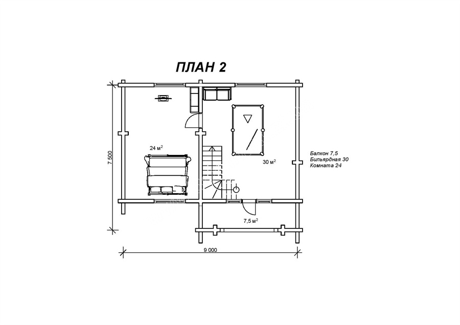 Двоповерховий банний комплекс 7,5х9 м з більярдною - «Івушка»
