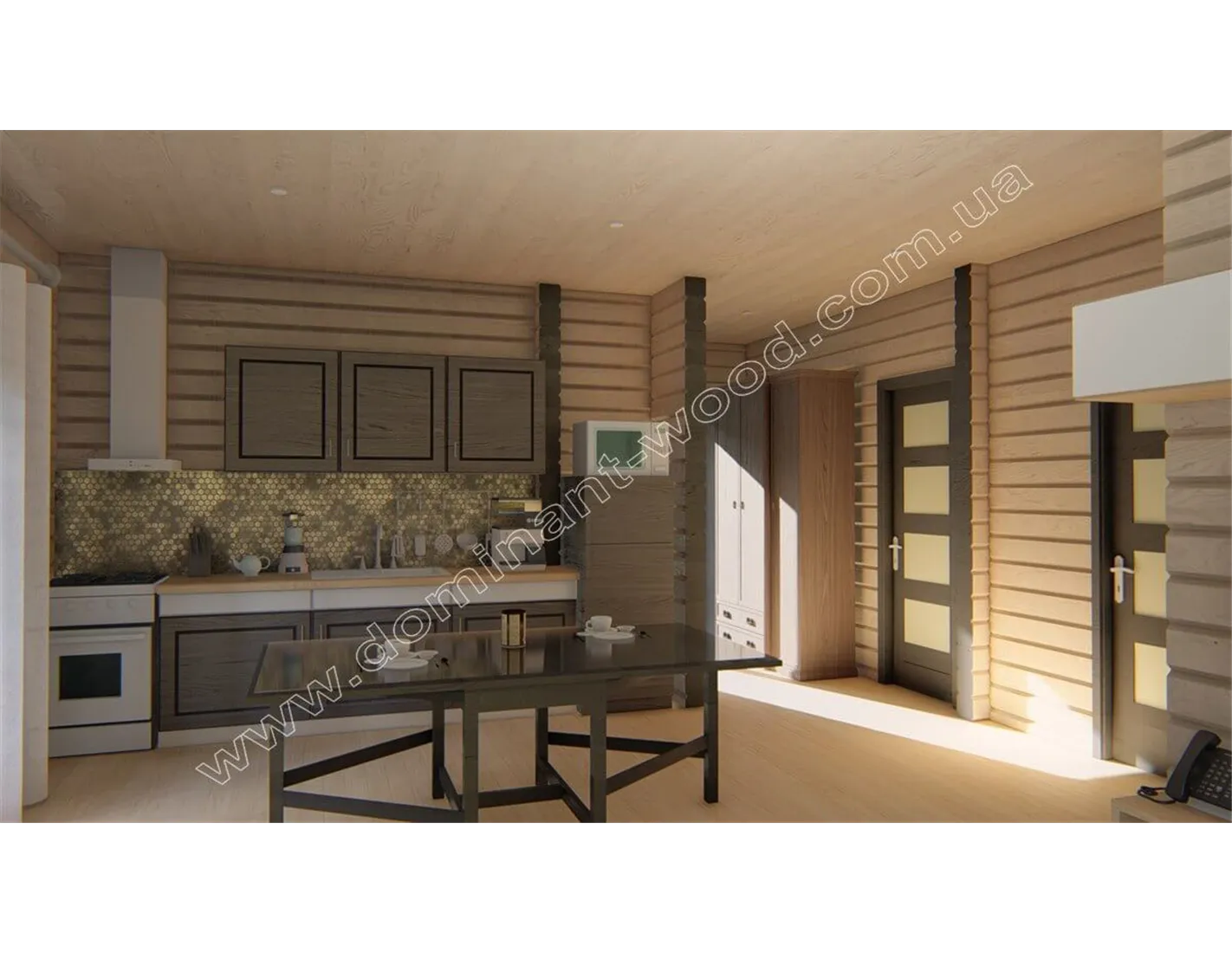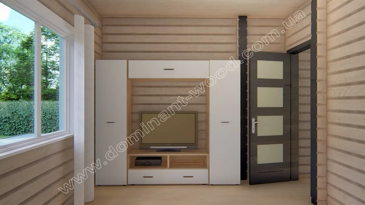 Якщо ви вибираєте котедж, який буде побудований з натуральних матеріалів, і в якому буде дві житлові кімнати і одна загальна кухня-студія, рекомендуємо проект «Навад» в якості оптимального вибору. Стандартне планування будиночка «Навад» (компактні розміри, площа в межах 100 м2 і наявність двох спалень) оптимально підійде кожному, хто бажає побудувати собі комфортне, сімейне житло. Бонусом планування котеджу «Навад» стане окреме приміщення котельні. Господарям можна буде розташувати тут опалювальне обладнання, не займаючи корисної житлової площі споруди. Це дуже зручний, одноповерховий будиночок з котельнею з сухого, профільованого брусу з плануванням підвищеної комфортності.