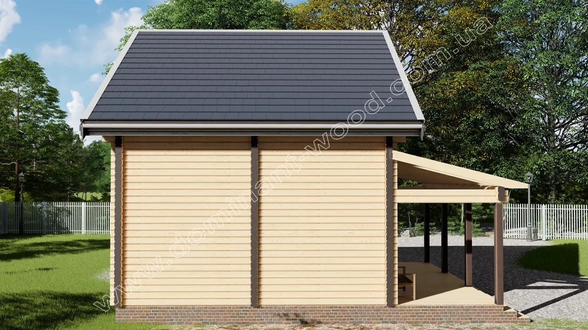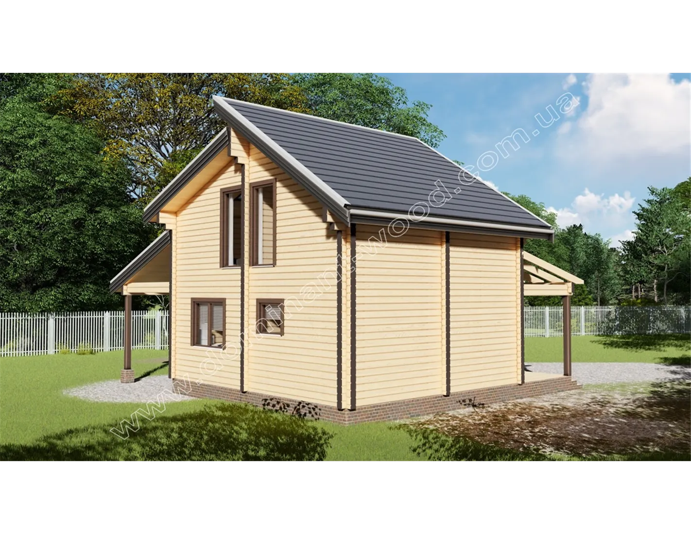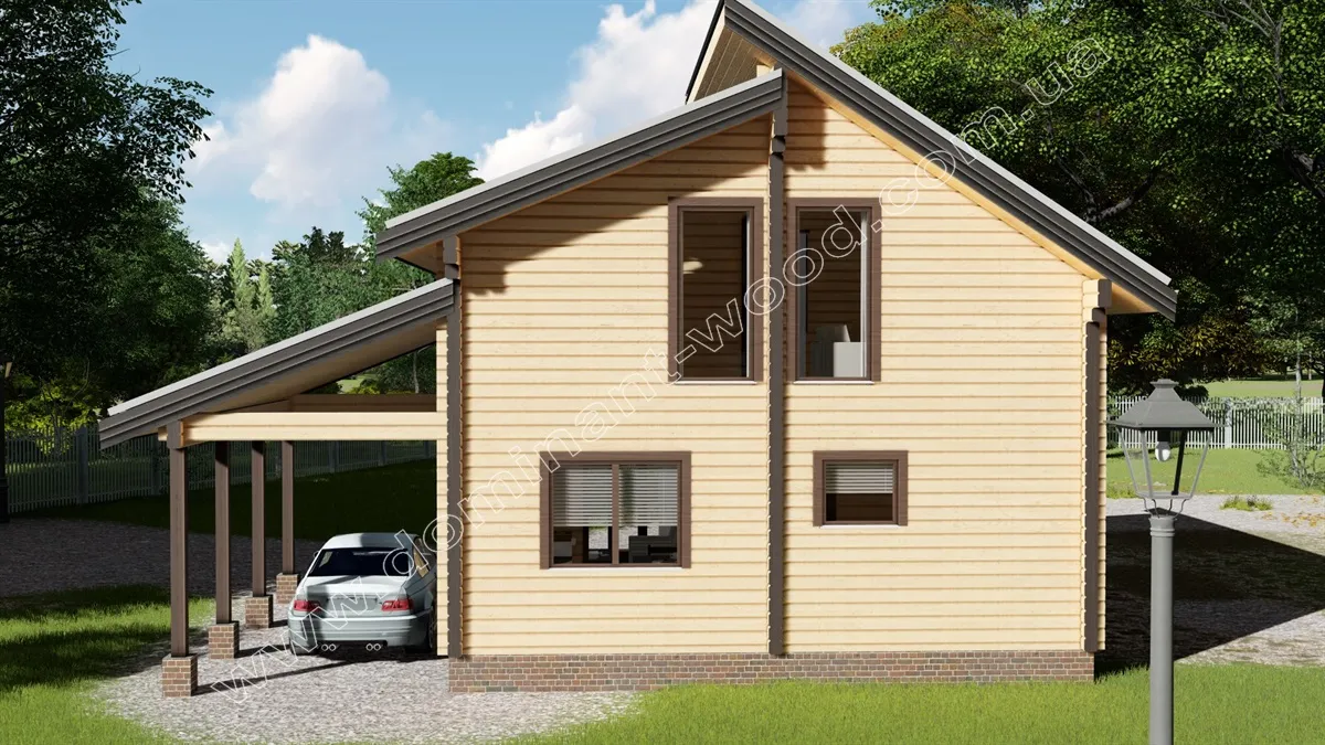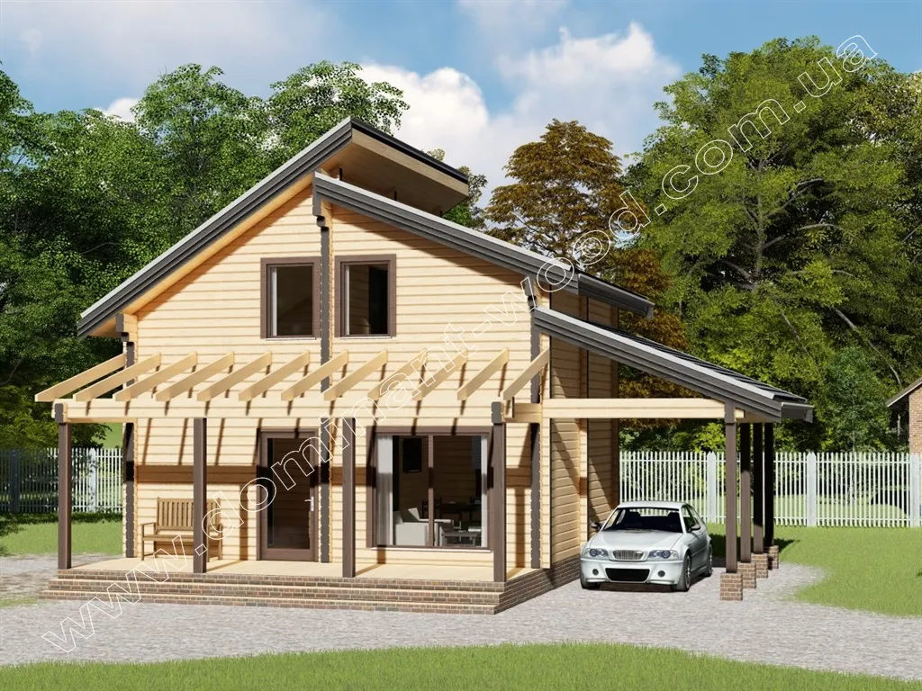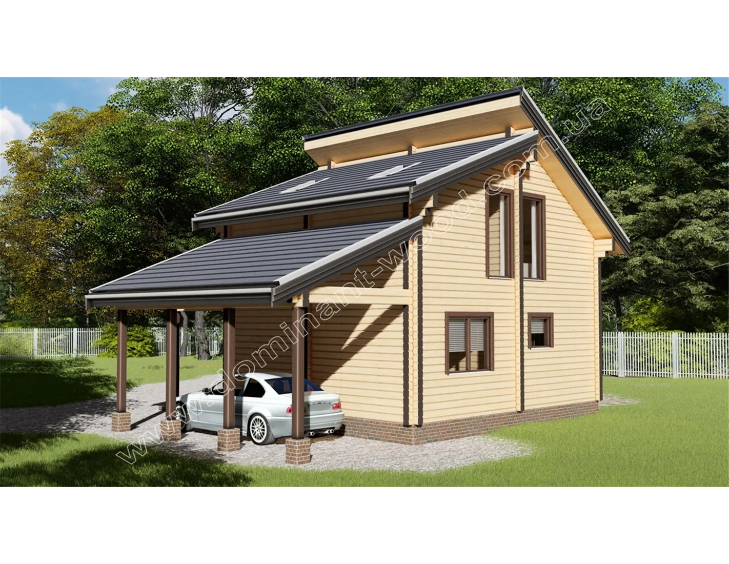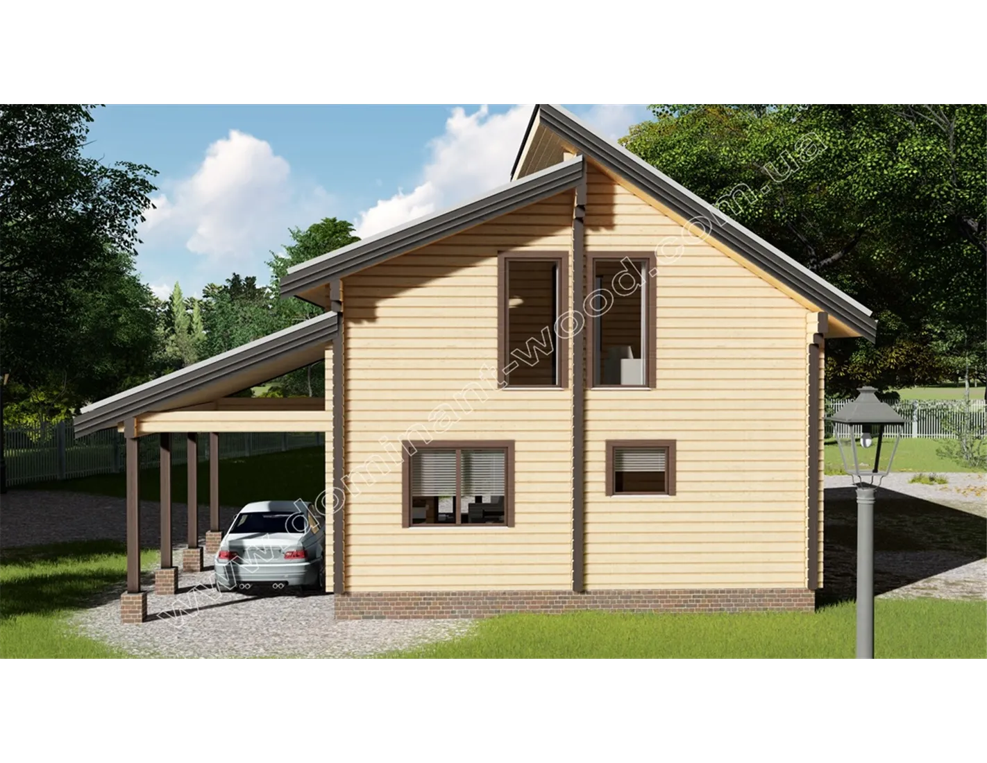 Замовлення будівництва котеджу із бруса з навісом для машини, проект «Ланда»