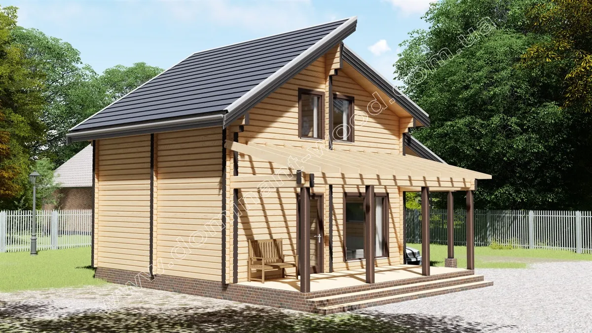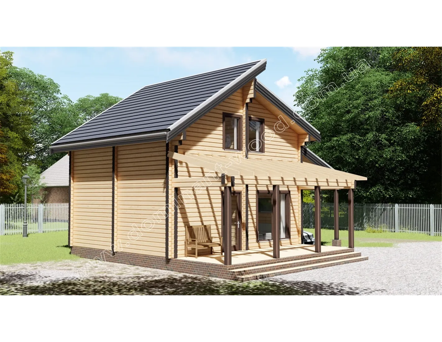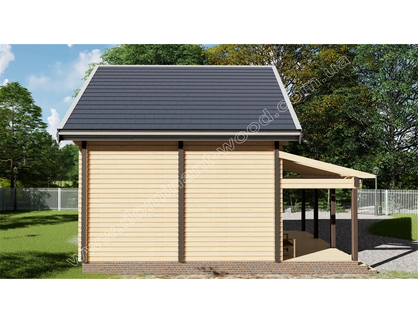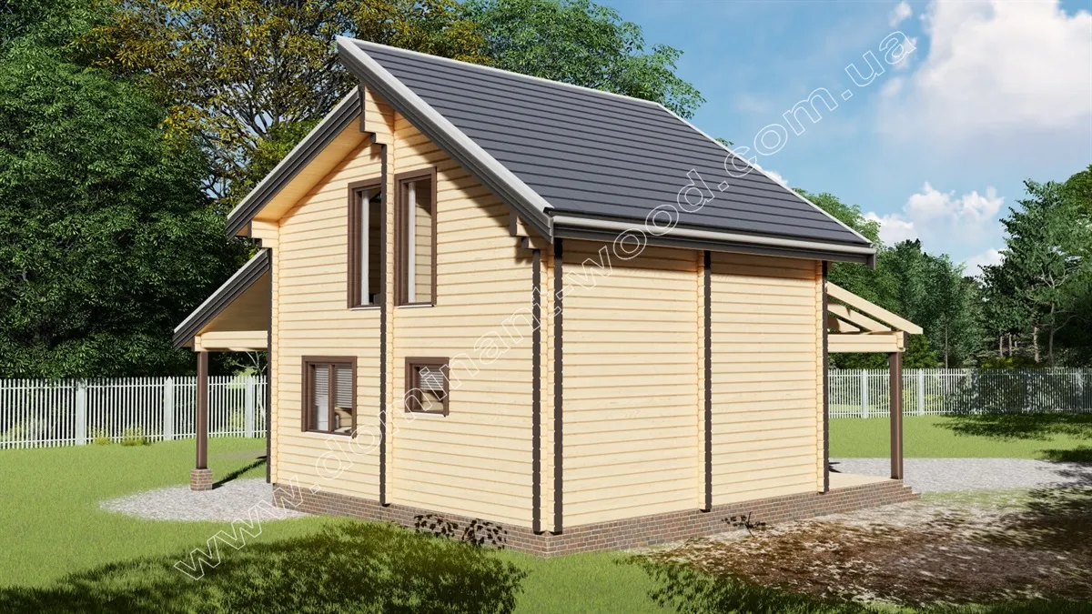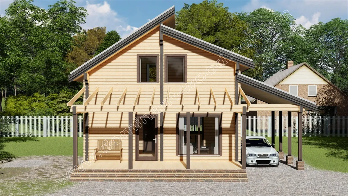 Замовлення будівництва котеджу із бруса з навісом для машини, проект «Ланда»
