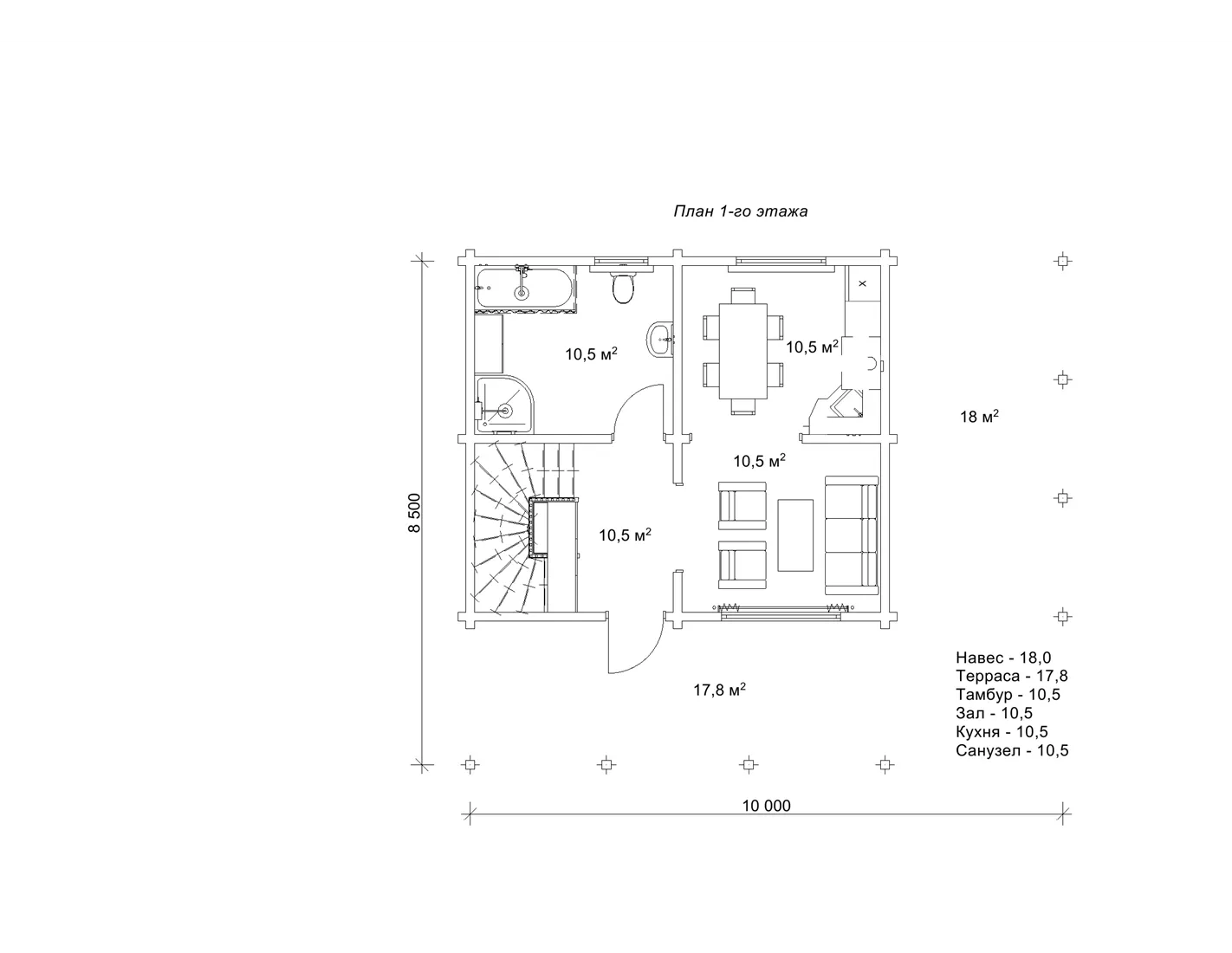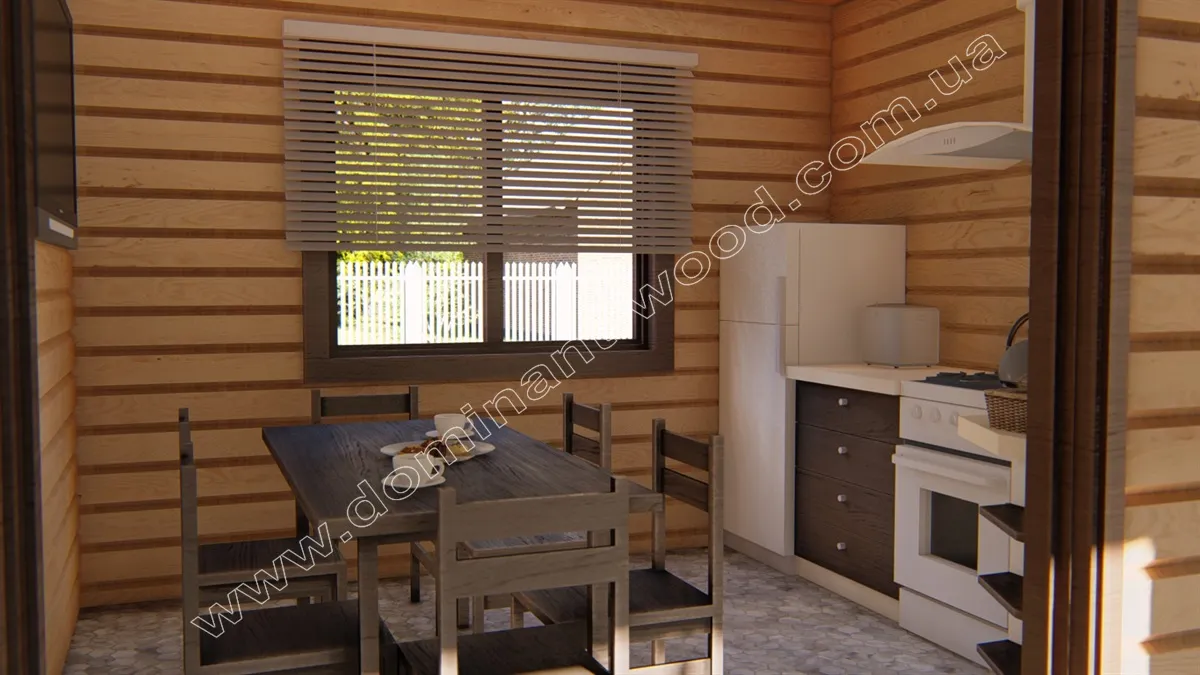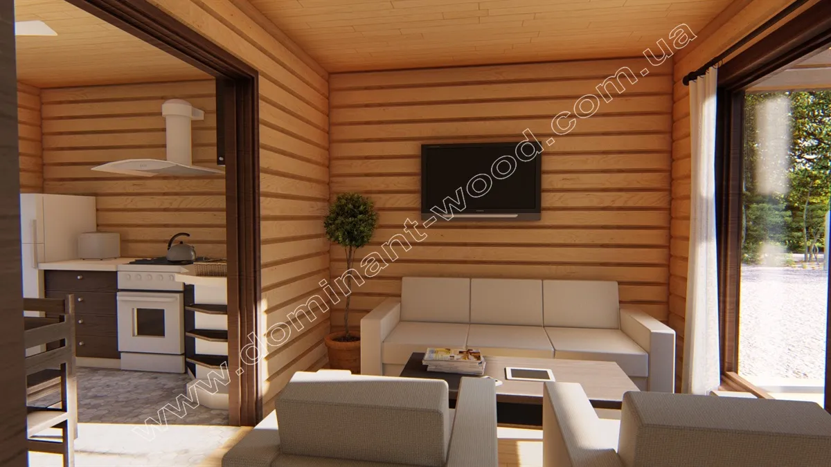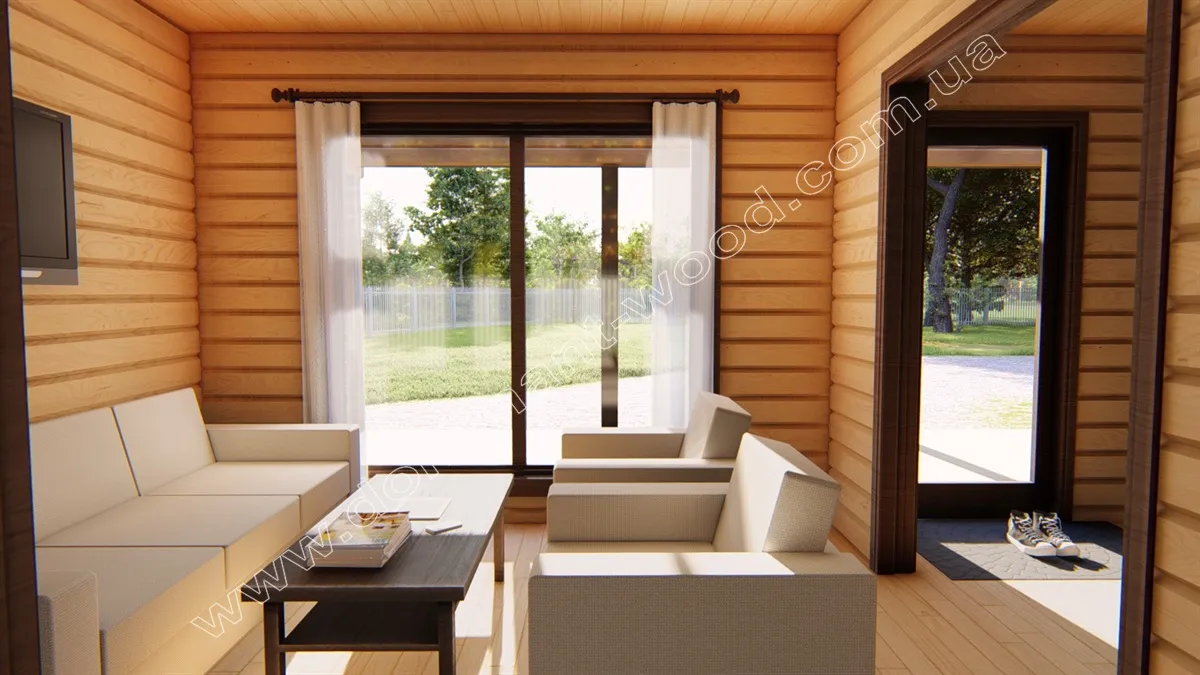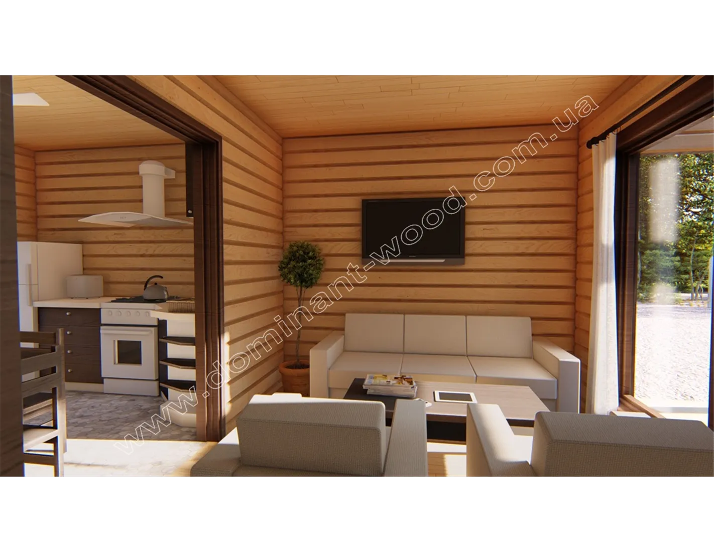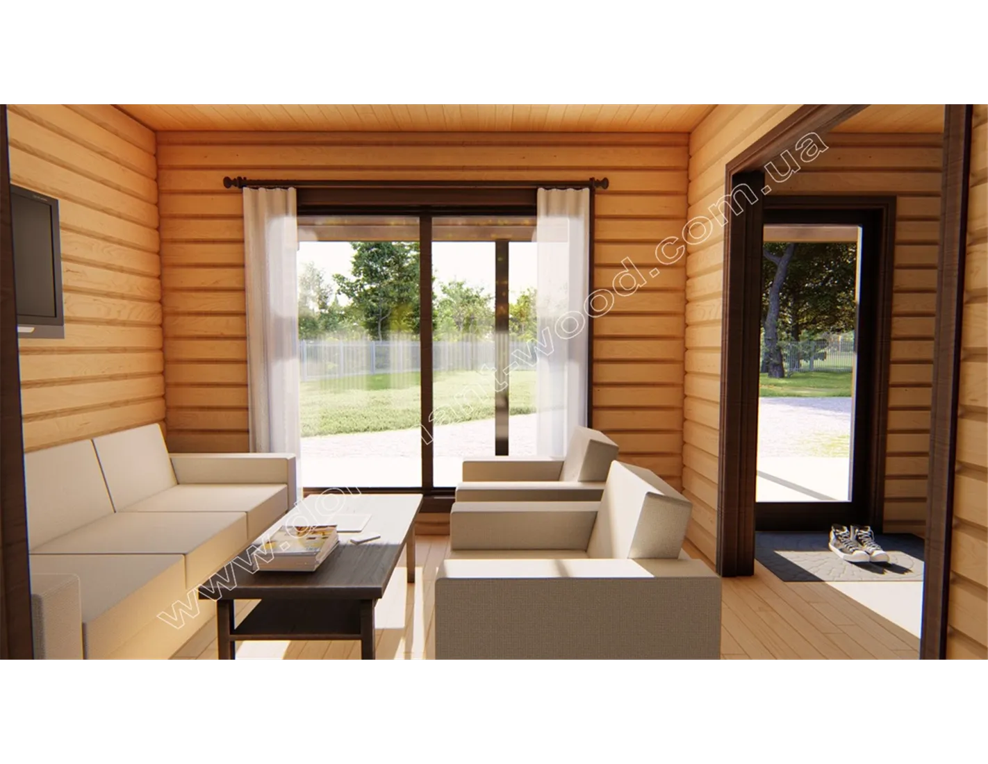 Замовлення будівництва котеджу із бруса з навісом для машини, проект «Ланда»