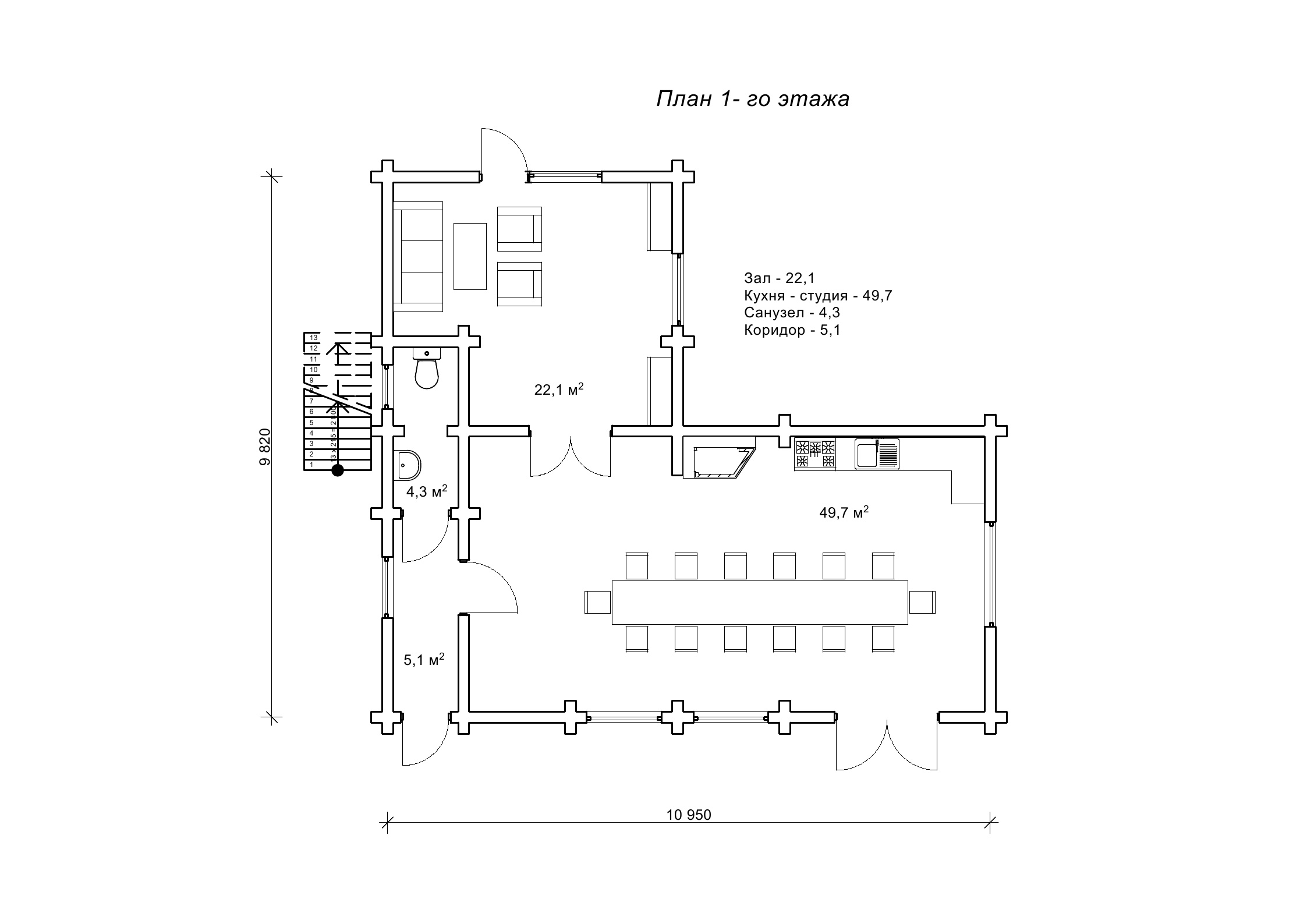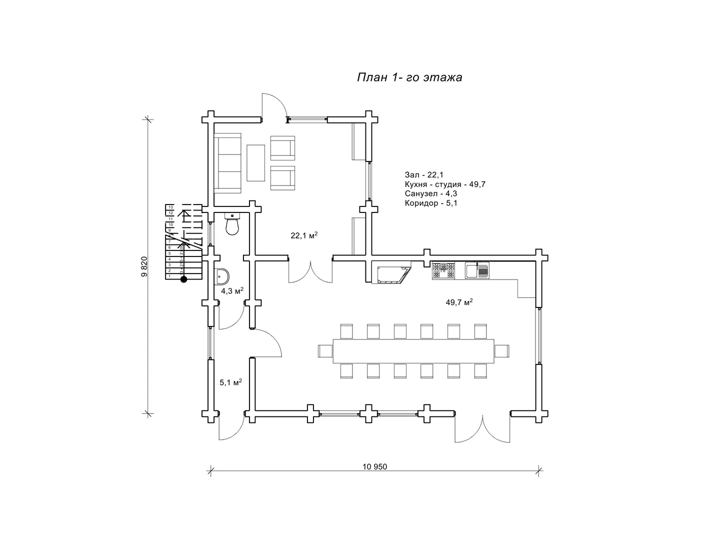 Планування гостьового котеджу «Шеррі» 9,8 на 10,9 м
