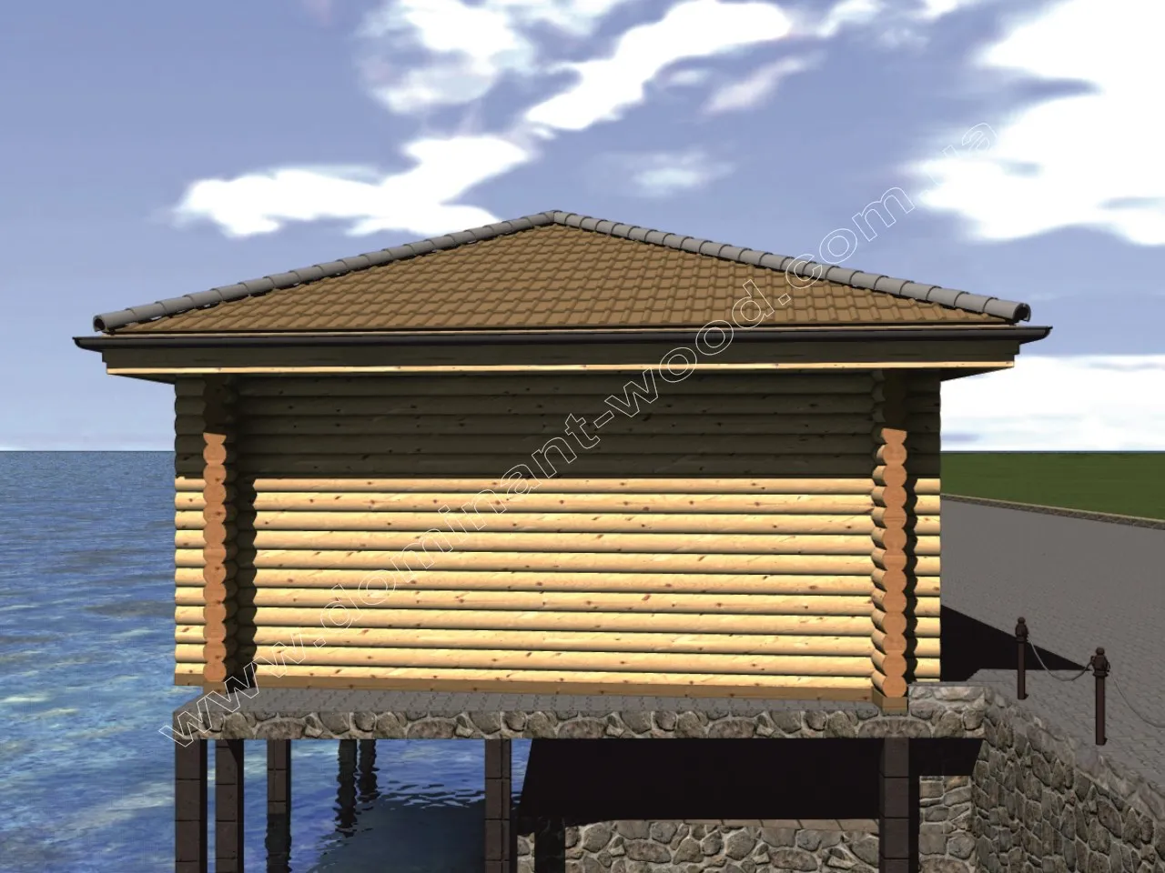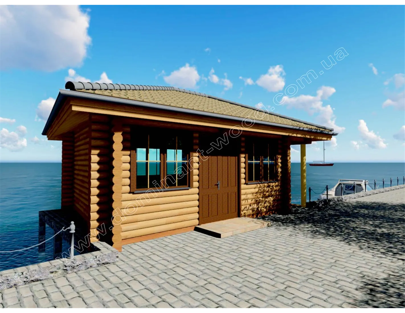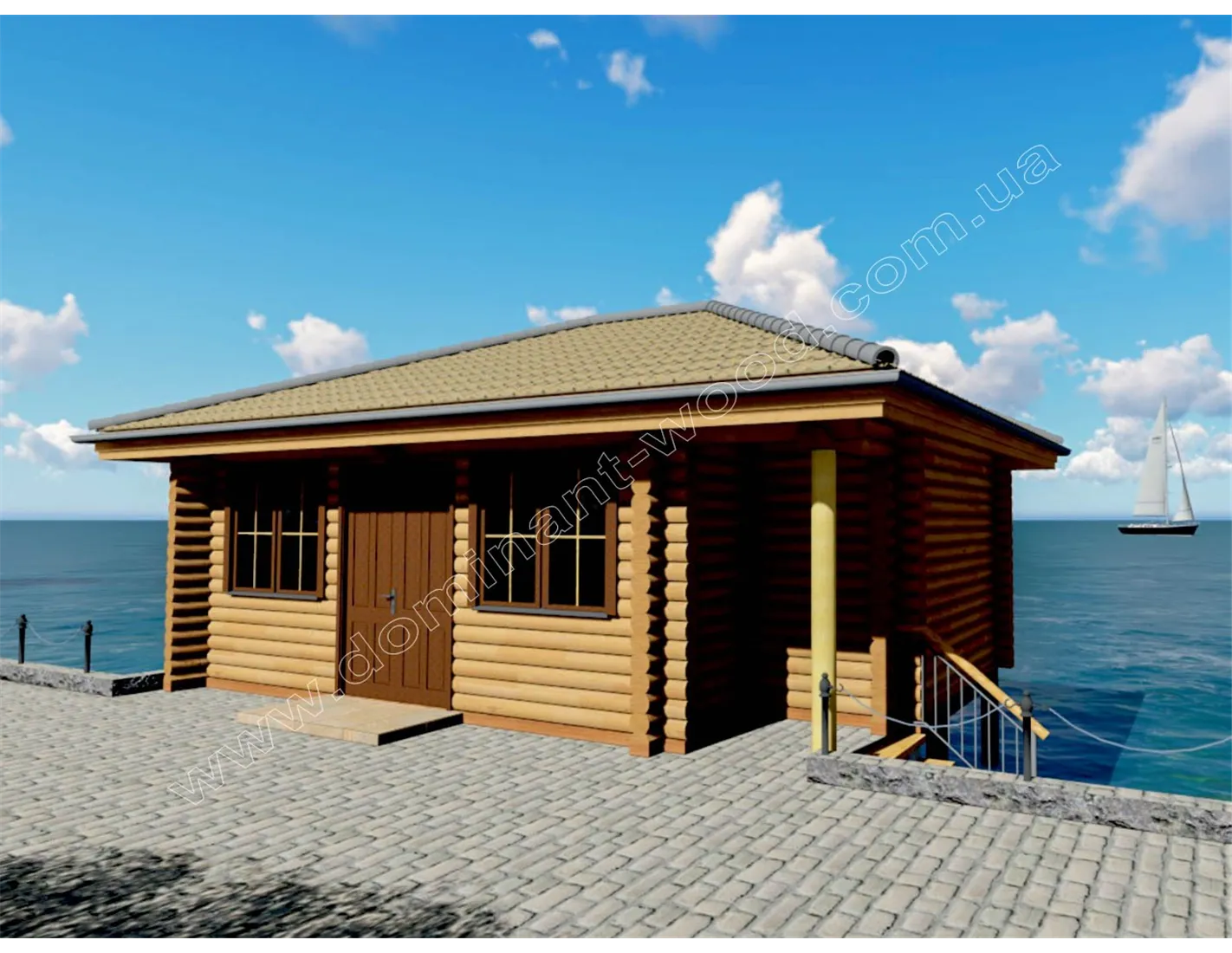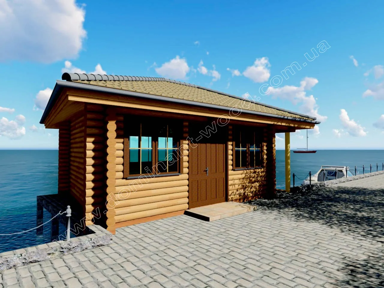 План будиночка з оциліндрованих колод на пірсі