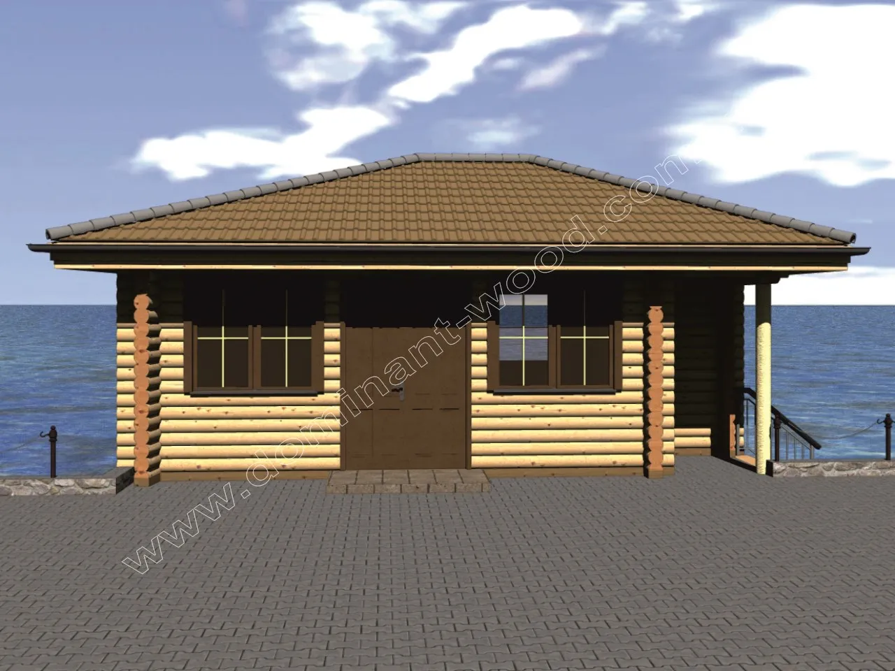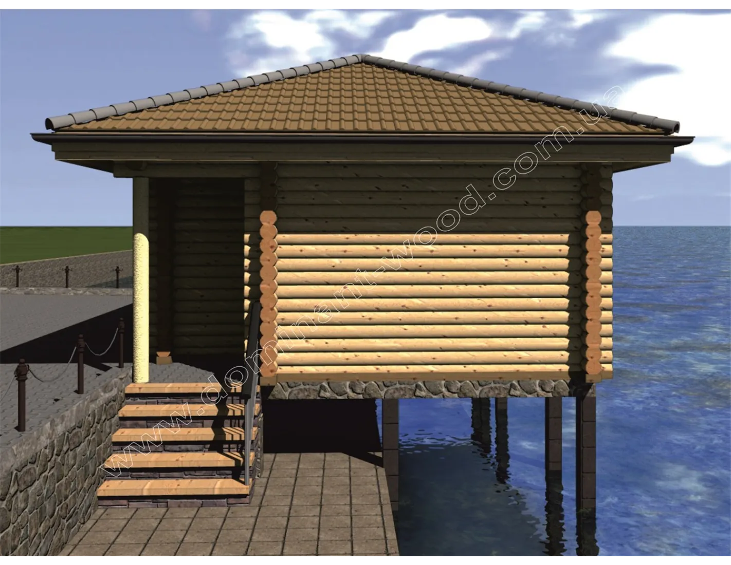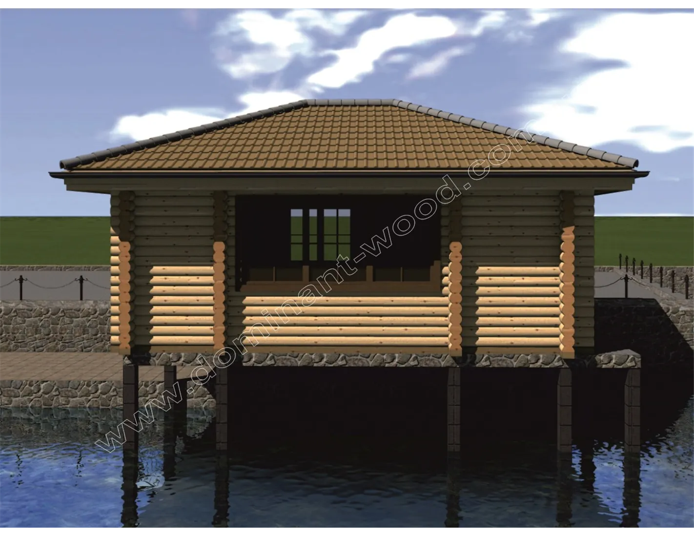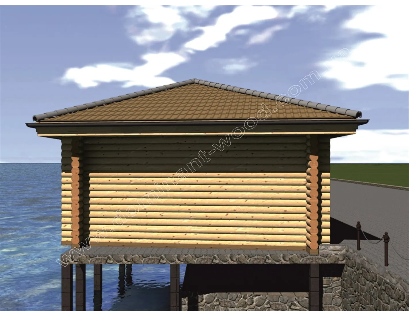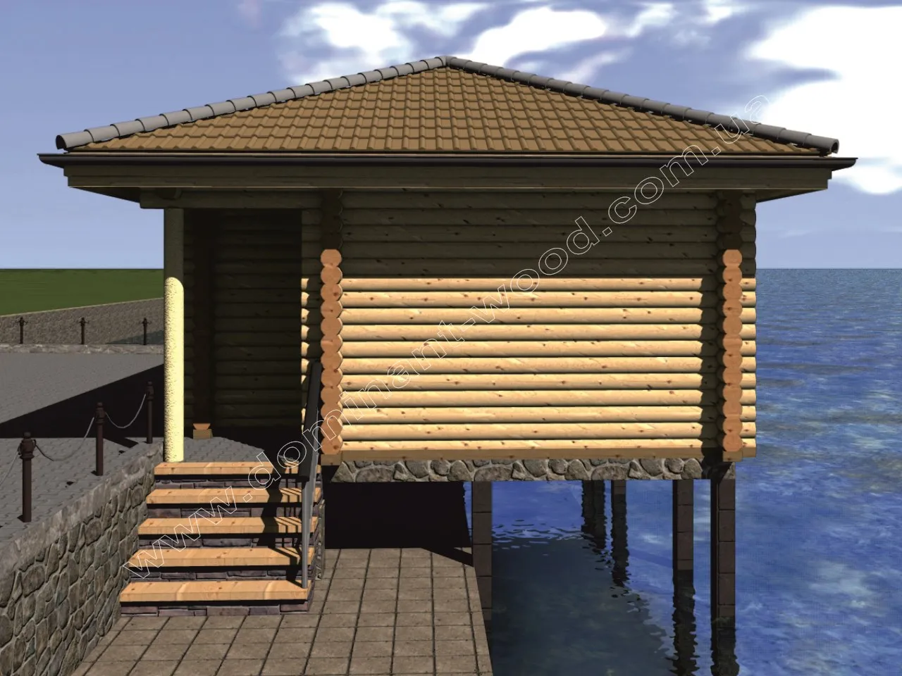 План будиночка з оциліндрованих колод на пірсі