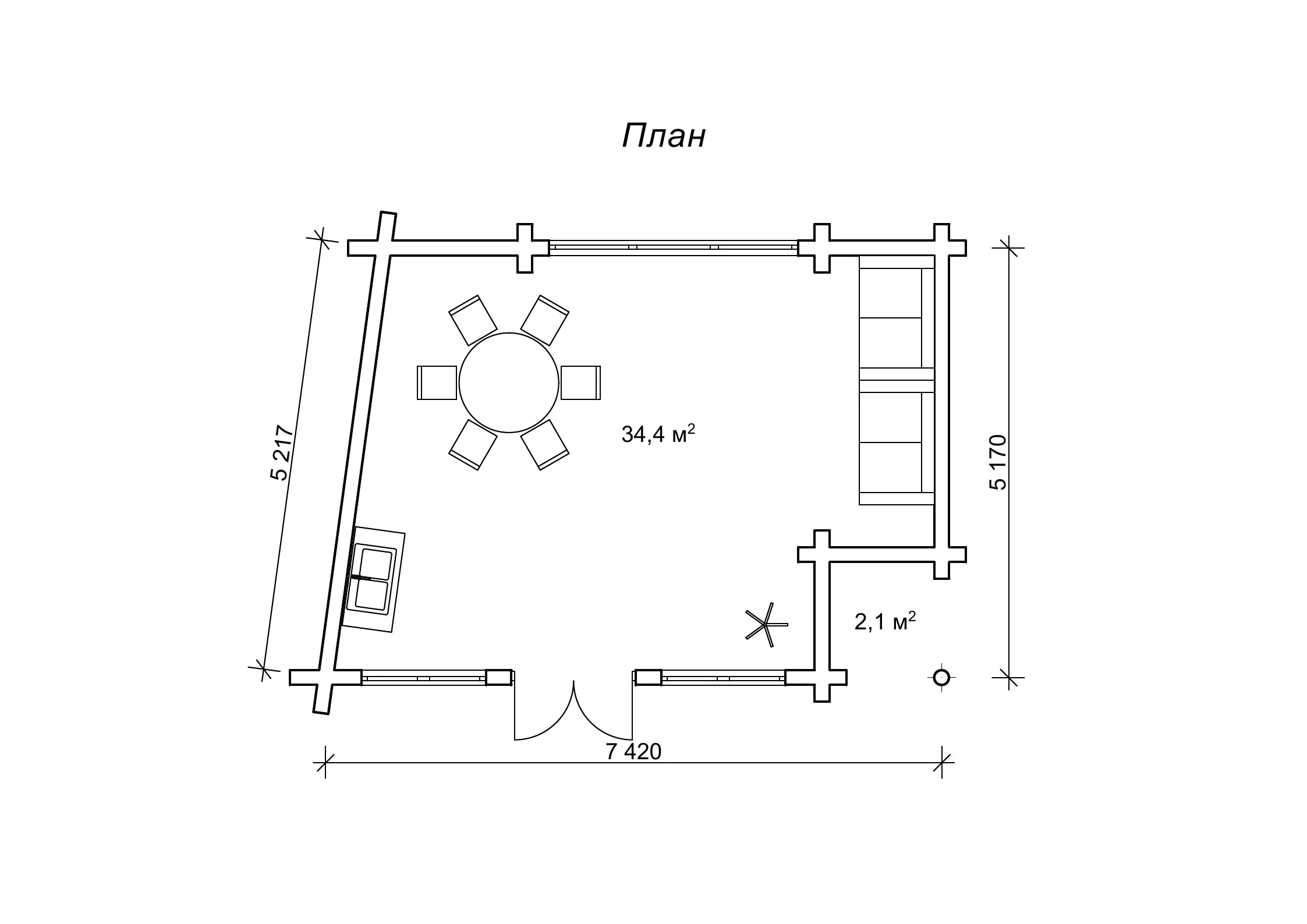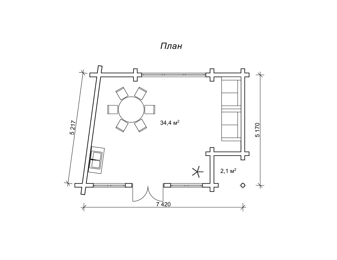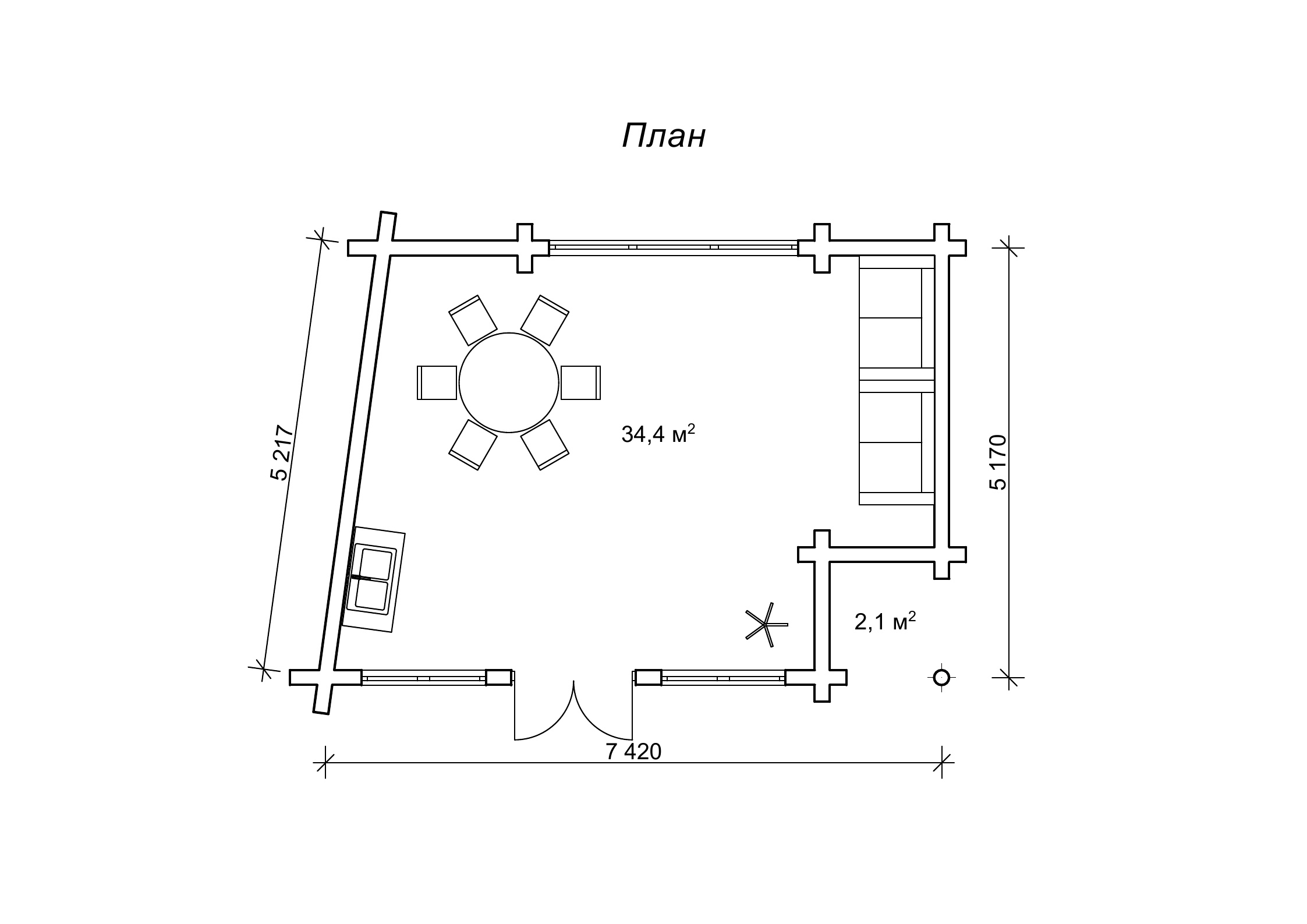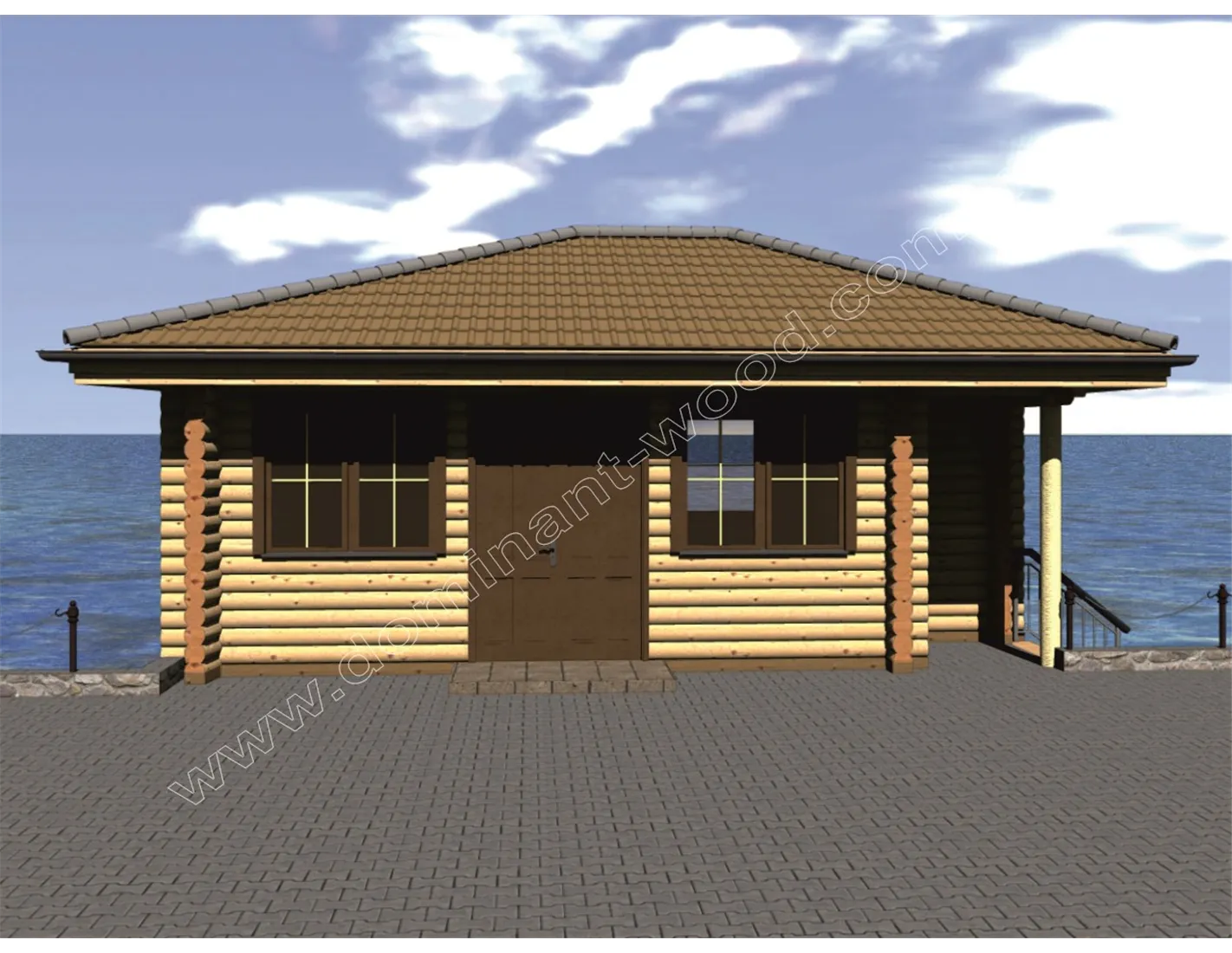 План будиночка з оциліндрованих колод на пірсі