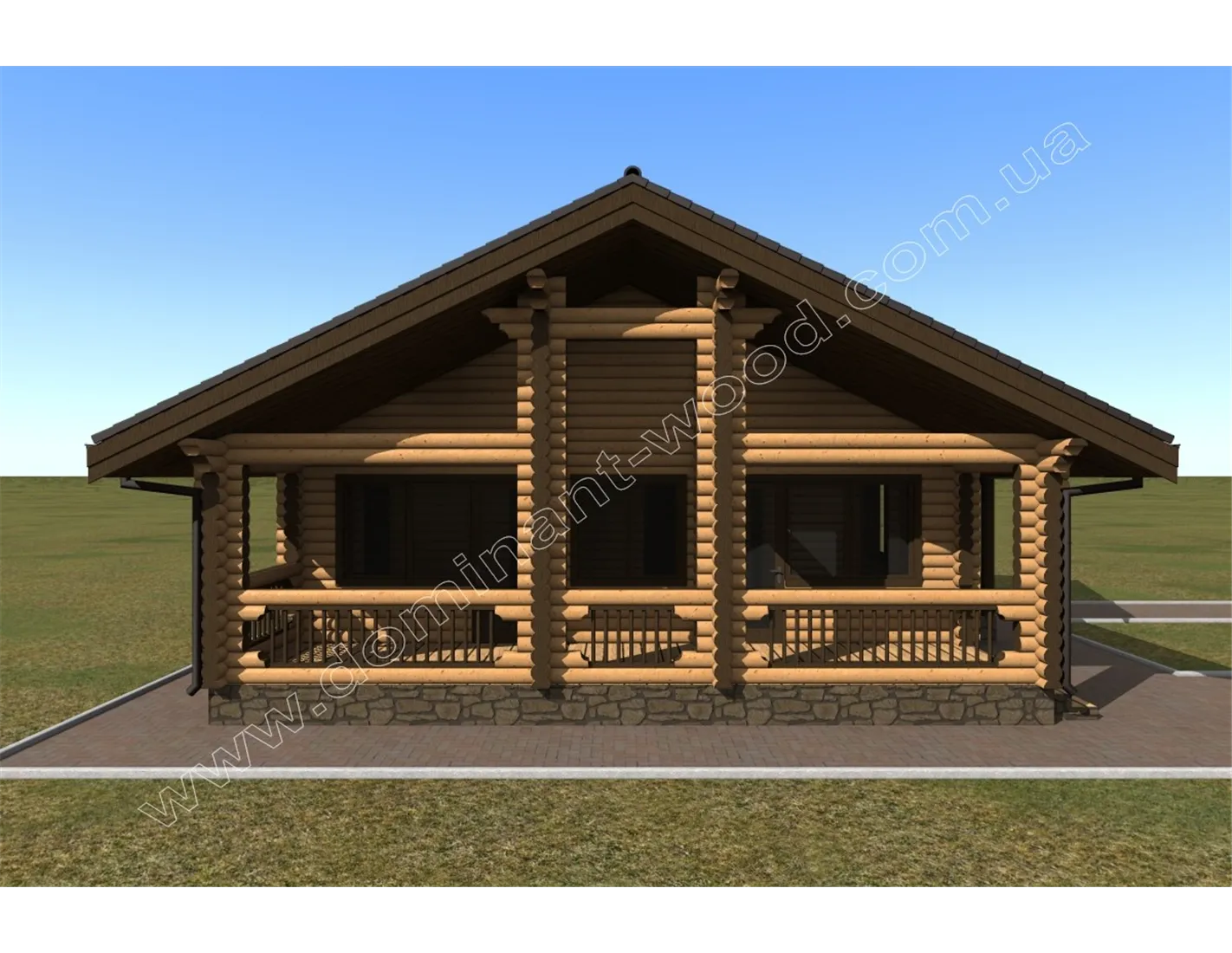 Чудовий одноповерховий будинок Шенорд з оциліндрованих колод гармонійно доповнить собою будь-яку місцевість. Мальовничо виглядає затишний ганок при вході в будинок і тераса біля бічного фасаду під тінистим навісом. Від миловидного будиночка з колоди йде тепло і затишок, так і хочеться увійти всередину, озирнутися і відчути в дерев’яному будинку свіжий аромат хвойного лісу.