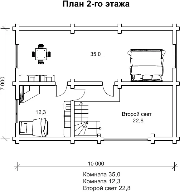 Дуже цікавим архітектурним рішенням є поєднання другого світла з мансардним поверхом. Проекти будинків з мансардою зазвичай користуються особливою популярністю, а друге світло надає всій внутрішній обстановці урочистості і ошатної атмосфери. Мансарда під дахом завжди приваблює своєю незвичайною архітектурою і вікнами, розташованими прямо під небом. Наші проекти будинків з мансардою являють собою відмінне поєднання практичності і неординарного дизайну. Судіть самі, на першому поверсі котеджу Камея розміщується невелика спальня, кухня, санвузол, а також зона відпочинку. Сходи на мансардний поверх розташована по центру будівлі, на другому поверсі розташовані ще дві спальні. Наявність другого світла є відмінною рисою проекту Камея. Багатьом припаде до душі рішення розділити санвузол і ванну кімнату.