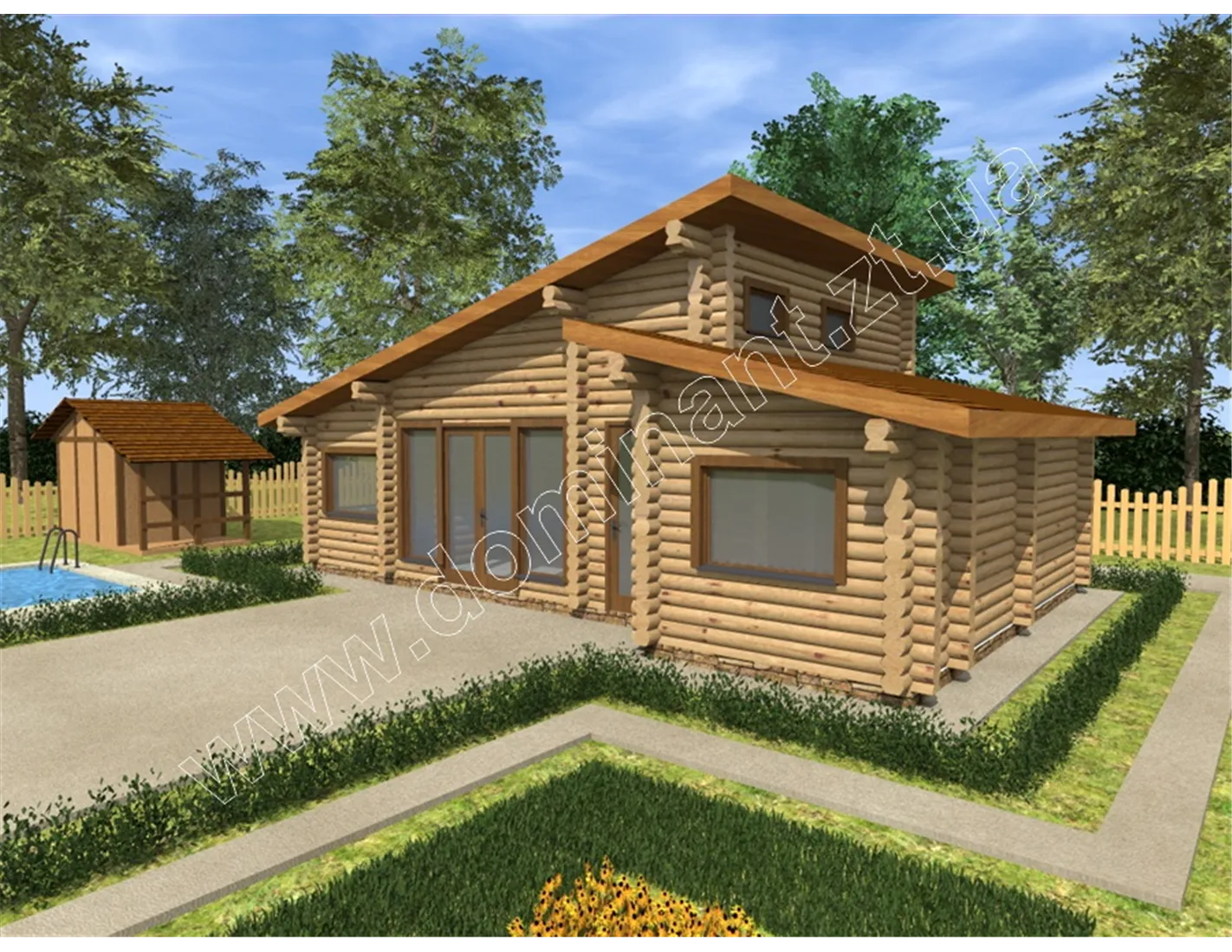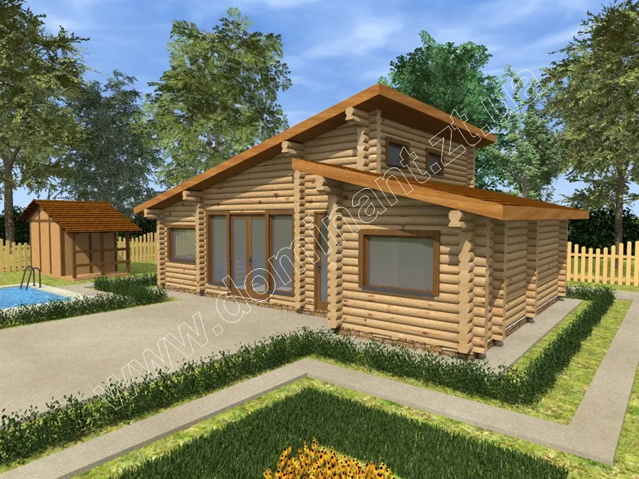 Пропонуємо вам звернути увагу на проект дерев’яного будинку з оциліндрованого бруса Мірта dominant-wood.com.ua/uk/proekty/480-mirta. За даним проектом можна здійснити недороге будівництво будинку, прекрасно підходить для сезонного відпочинку за містом і навіть постійного проживання.