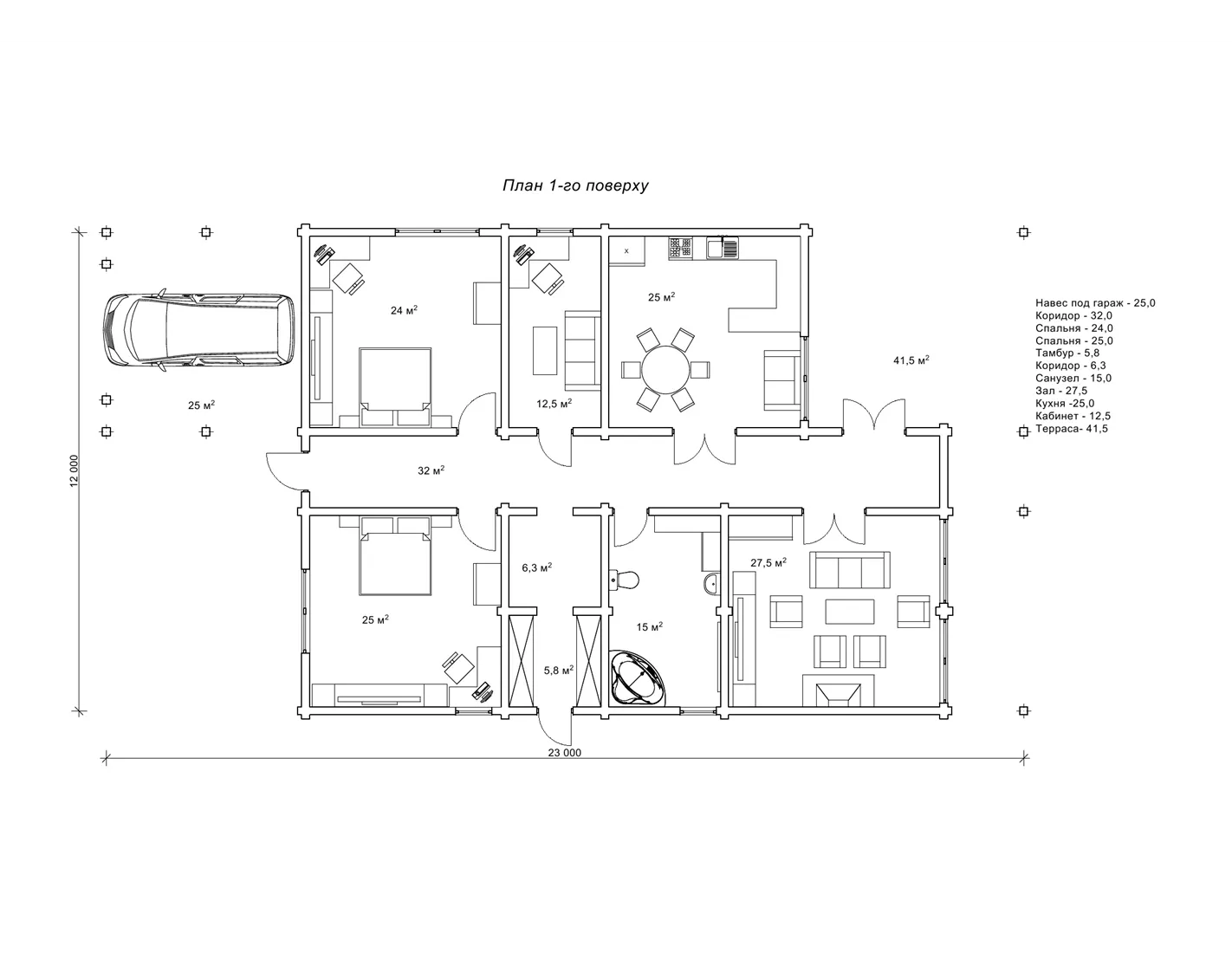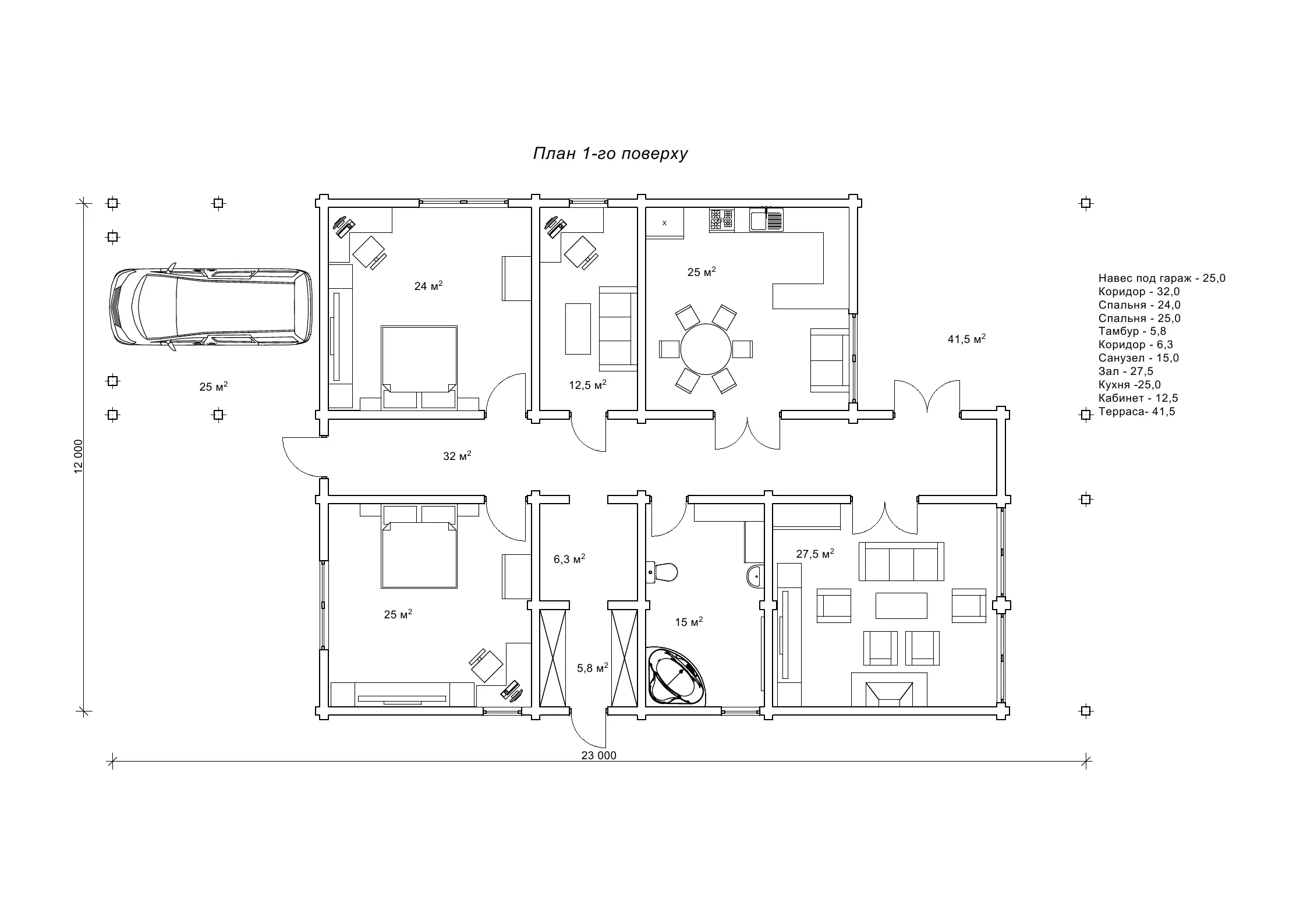 навіс під гараж (м²)25,0