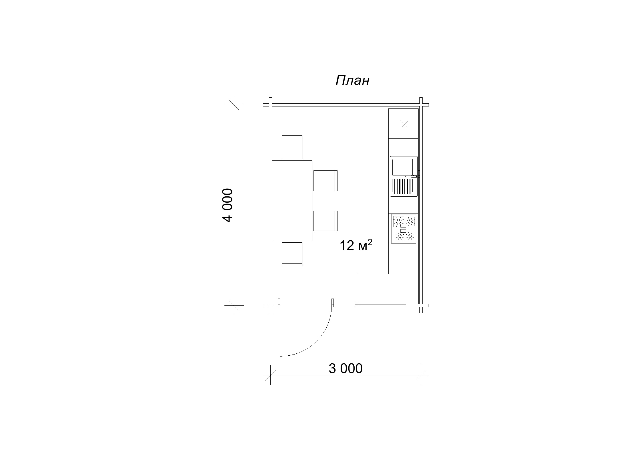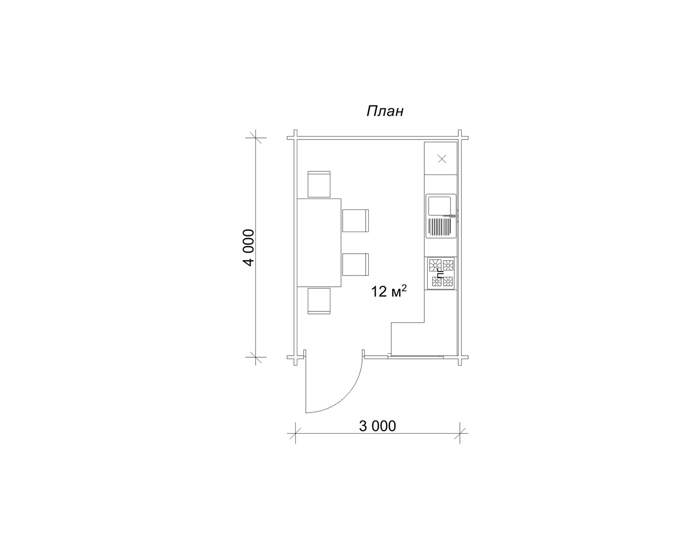 План будиночка літньої-кухні з однією кімнатою 4 на 3 м