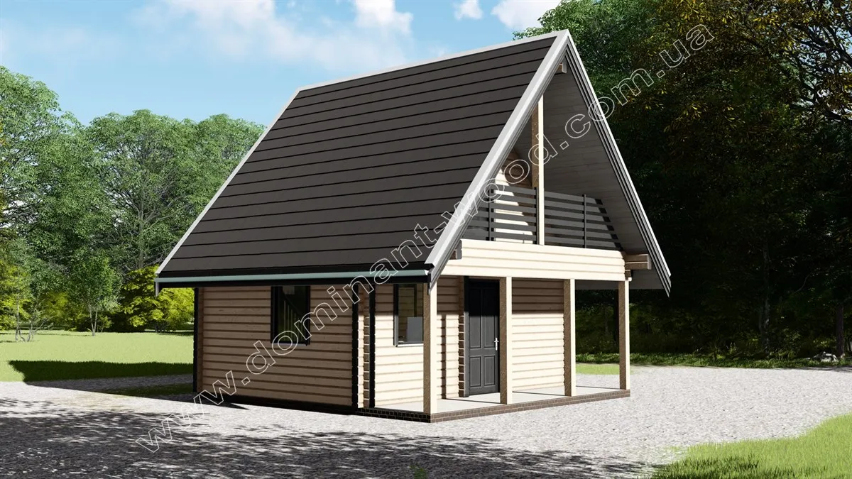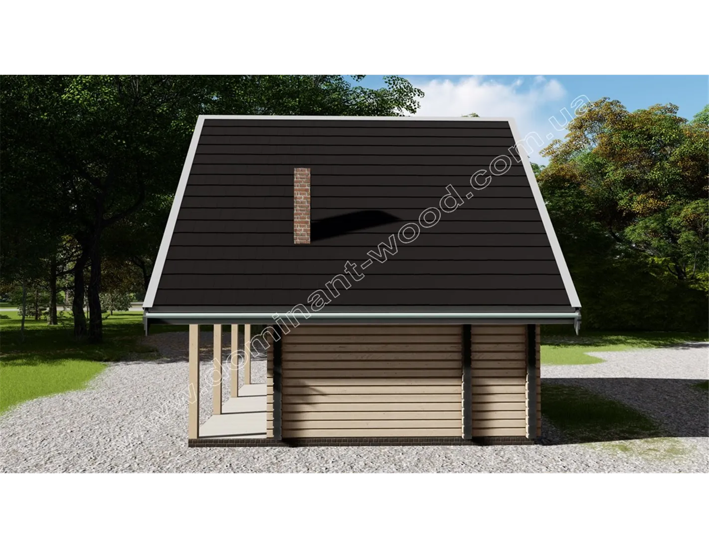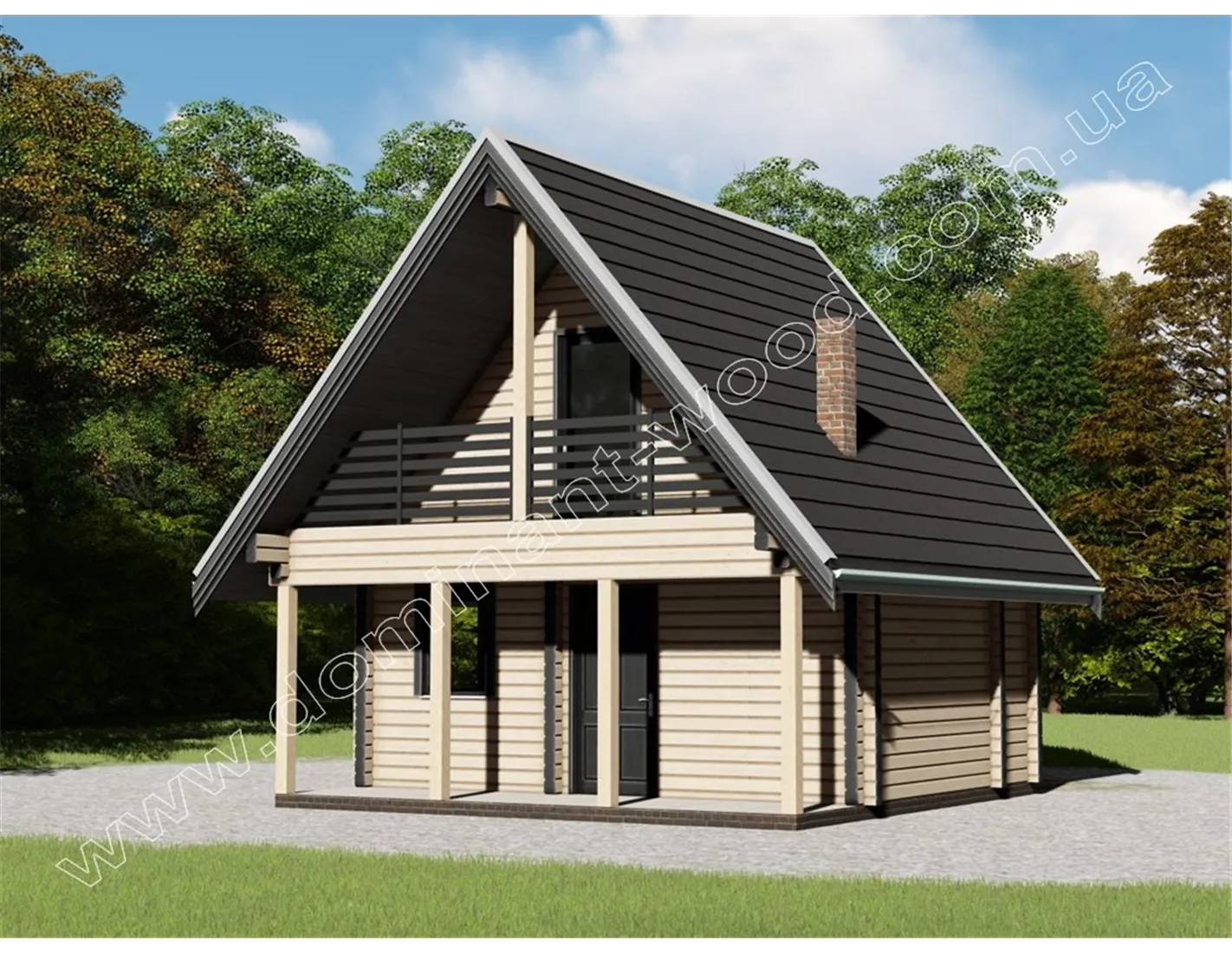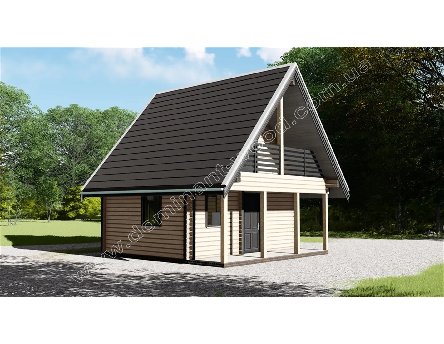 Гостьовий котедж «Веліна» приваблює стильними фасадами з відшліфованого, соснового бруса. Вхідна група оформлена гармонійним тандемом навісу та балкону. Усередині котеджу є зал, кухня, санвузол та сходи. Всі приміщення та сходова зона максимально ергономічно та раціонально сплановані на першому поверсі. А на другому поверсі-мансарді є простора спальня 23,5 м2 та балкон розміром 9 м2 за аналогією з терасою на першому поверсі. Загальна площа двох поверхів становить 72 м2, і в таких компактних розмірах є абсолютно все, щоб зробити дозвілля в будиночку максимально комфортним. Економічна вартість, стильний екстер’єр дерев’яного будинку, висока якість матеріалу, що використовується в будівництві плюс довговічність і швидкість монтажу - гарні аргументи, щоб прямо зараз оформити замовлення на будівництво котеджу «Веліна».