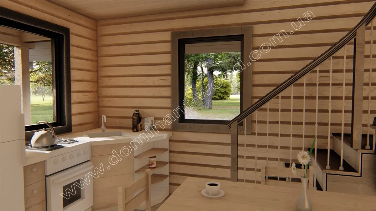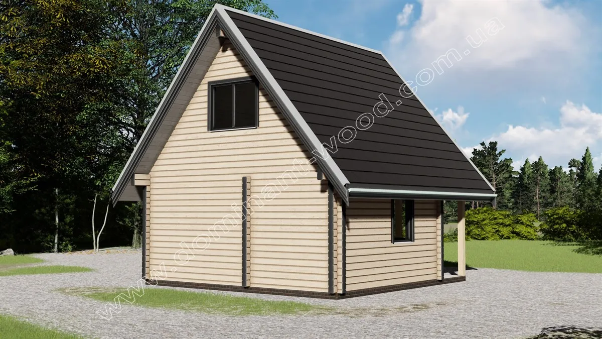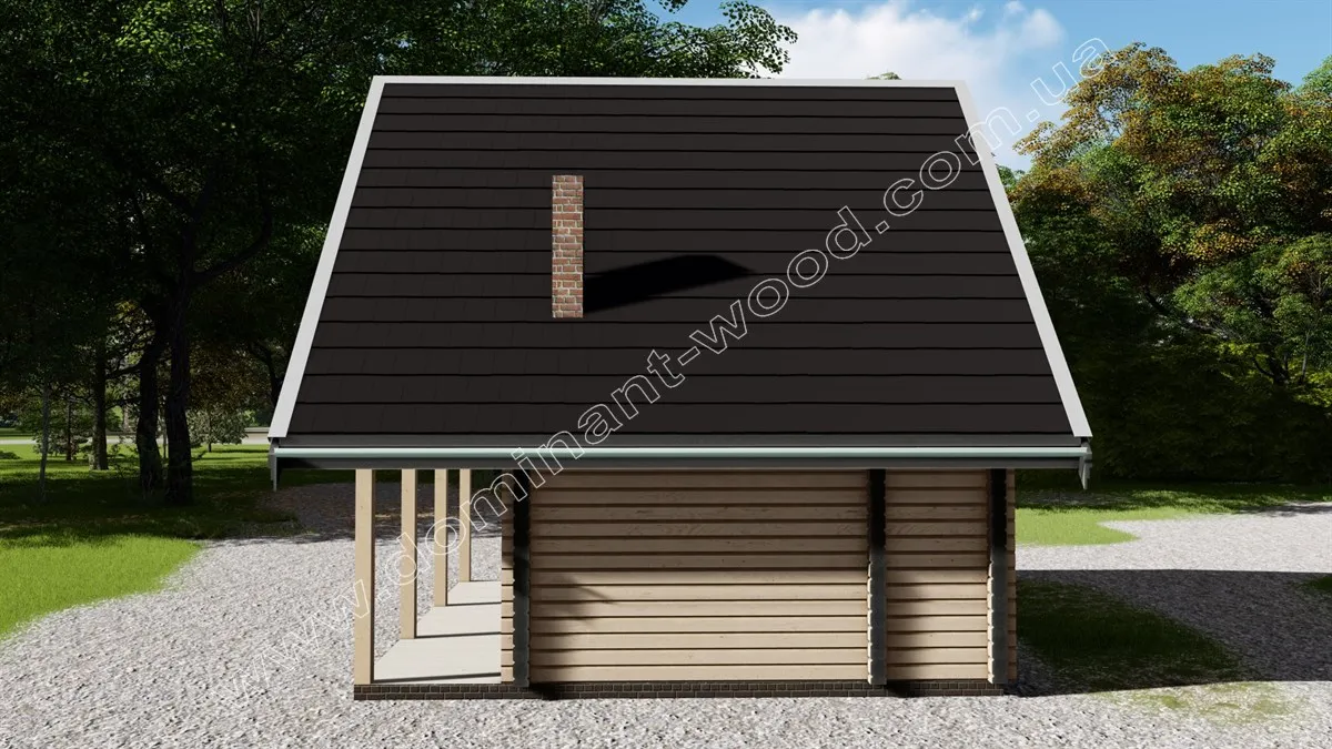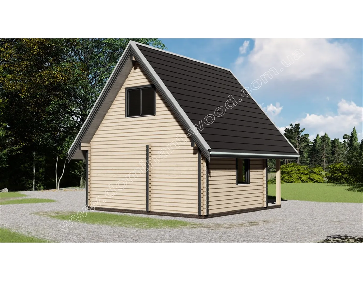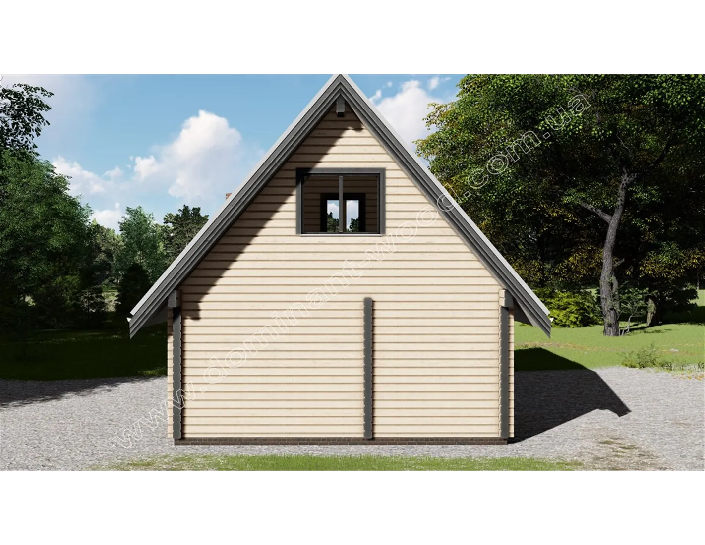 Гостьовий котедж «Веліна» приваблює стильними фасадами з відшліфованого, соснового бруса. Вхідна група оформлена гармонійним тандемом навісу та балкону. Усередині котеджу є зал, кухня, санвузол та сходи. Всі приміщення та сходова зона максимально ергономічно та раціонально сплановані на першому поверсі. А на другому поверсі-мансарді є простора спальня 23,5 м2 та балкон розміром 9 м2 за аналогією з терасою на першому поверсі. Загальна площа двох поверхів становить 72 м2, і в таких компактних розмірах є абсолютно все, щоб зробити дозвілля в будиночку максимально комфортним. Економічна вартість, стильний екстер’єр дерев’яного будинку, висока якість матеріалу, що використовується в будівництві плюс довговічність і швидкість монтажу - гарні аргументи, щоб прямо зараз оформити замовлення на будівництво котеджу «Веліна».