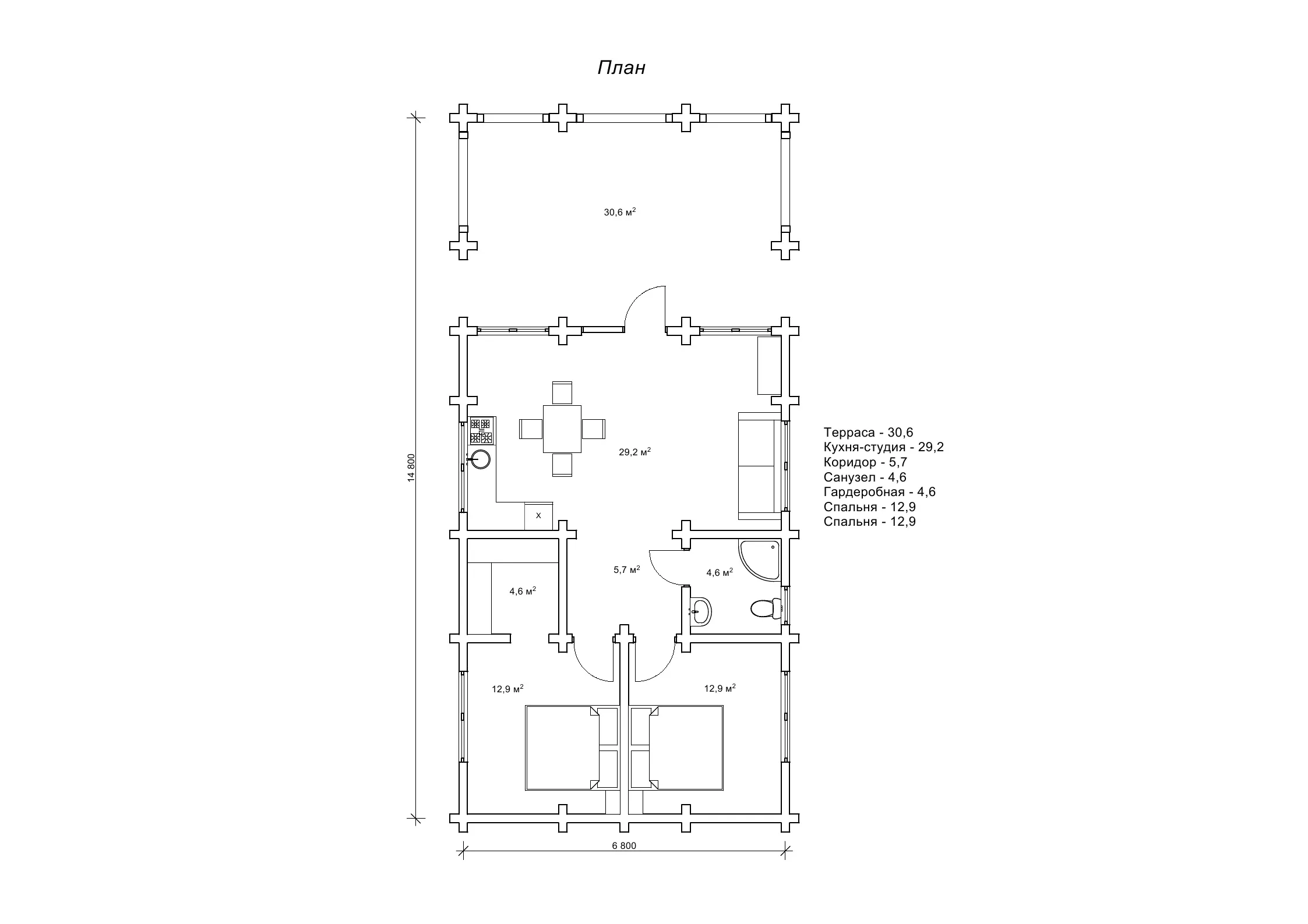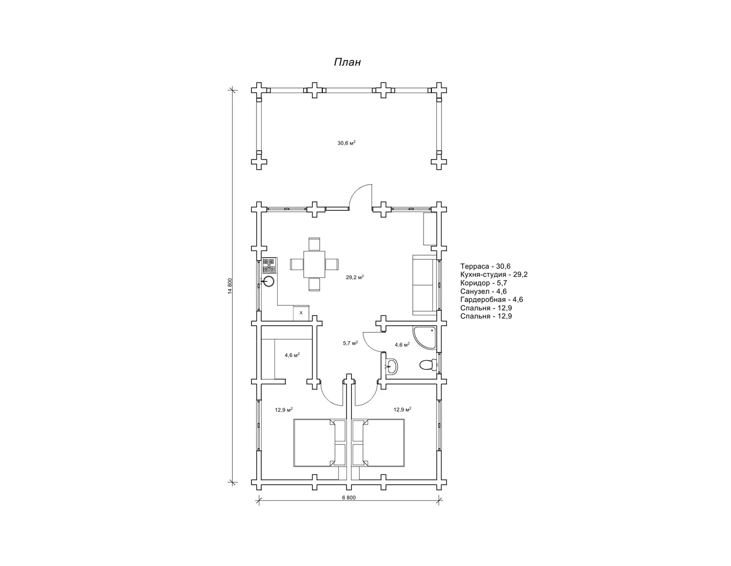 Оциліндрований будинок з дерева 14,8 на 6,8 м - «Жакона2»