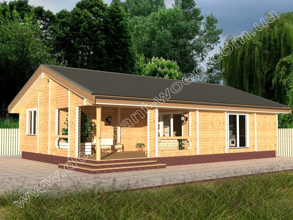 Дерев’яний котедж «Адальма» - відмінний вибір для побудови на дачі або в якості постійного житла. Проект обов’язково оцінять ті, хто бажає отримати раціональне планування житлового простору без сходів і другого поверху з розміщенням всіх кімнат на одному рівні. Будинок відповідає всім уявленням про комфортне житло для сім’ї на один поверх з двома спальнями. Споруда будинку на один поверх за проектом «Адальма» стане гідним вибором у випадку ваших сумнівів - що вибрати: одноповерховий або двоповерховий будинок з дерева?. Ми раді запропонувати готове рішення з максимально комфортними умовами для проживання, щоб ви не витрачали час на роздуми по вдалому розміщенню кімнат. Найвимогливіший господар залишиться задоволений, побудувавши котедж «Адальма» на своїй заміській ділянці!