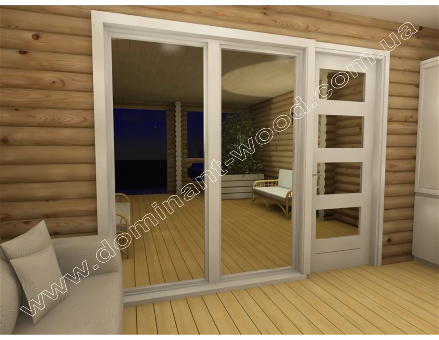 Проект «Адальма» - це неймовірно красивий дерев’яний зруб, який втілює всі переваги проживання у власному будинку! Тут є і тераса, на якій зручно вечеряти в погожі літні вечори; і великі вікна, що наповнюють будинок світлом; і дві затишні кімнати: батьківська спальня і дитяча кімната. Оциліндровані стіни будиночка надають ошатний вигляд котеджу, від нього немов віє теплом і затишком. Котедж «Адальма» створений, щоб втілити вашу мрію про свій будиночку на природі.