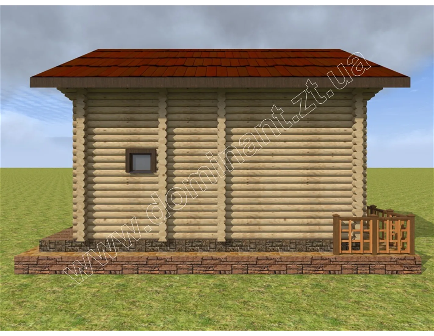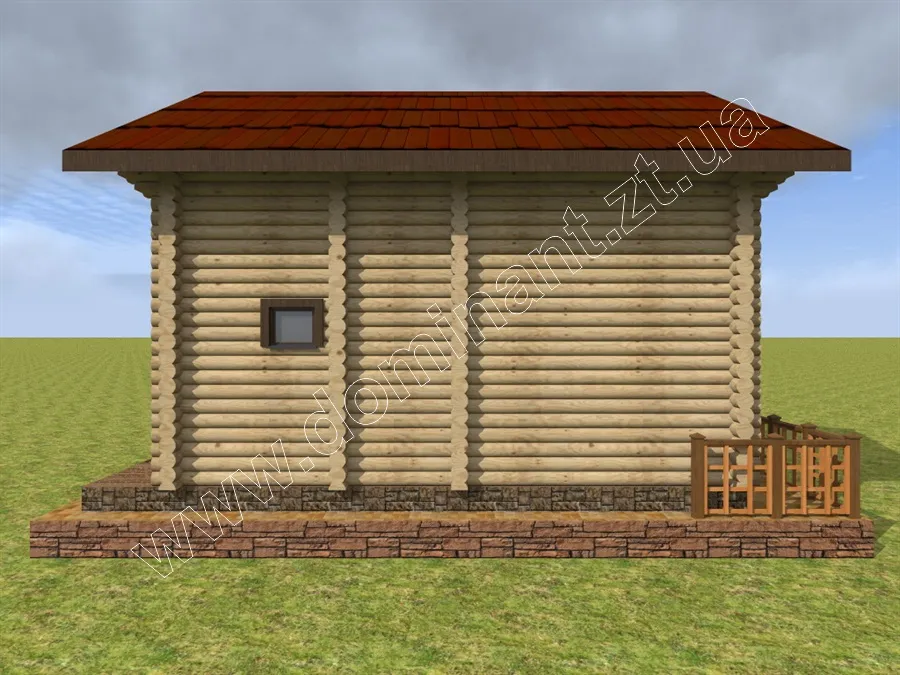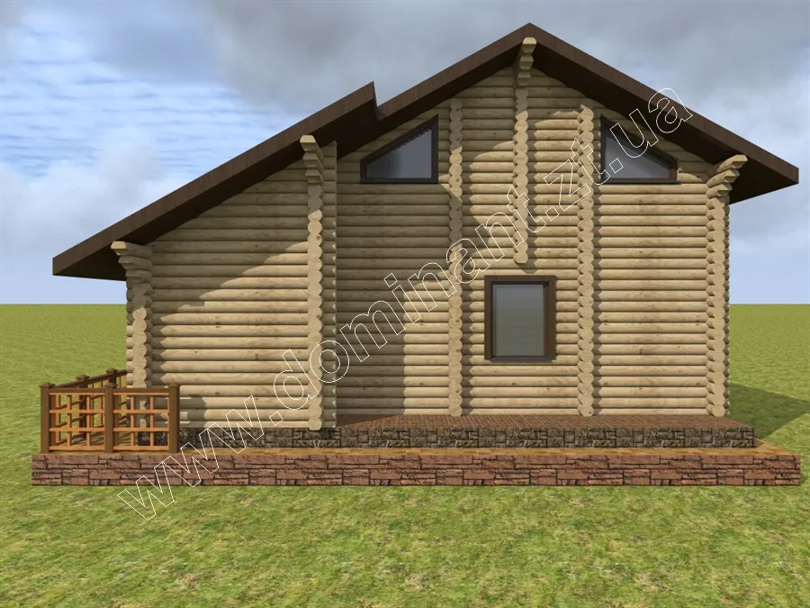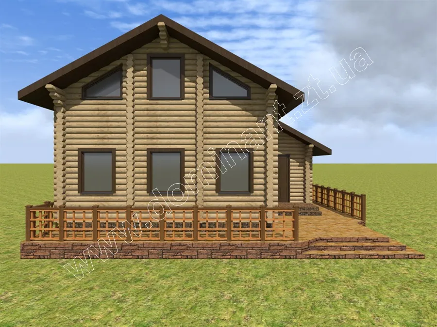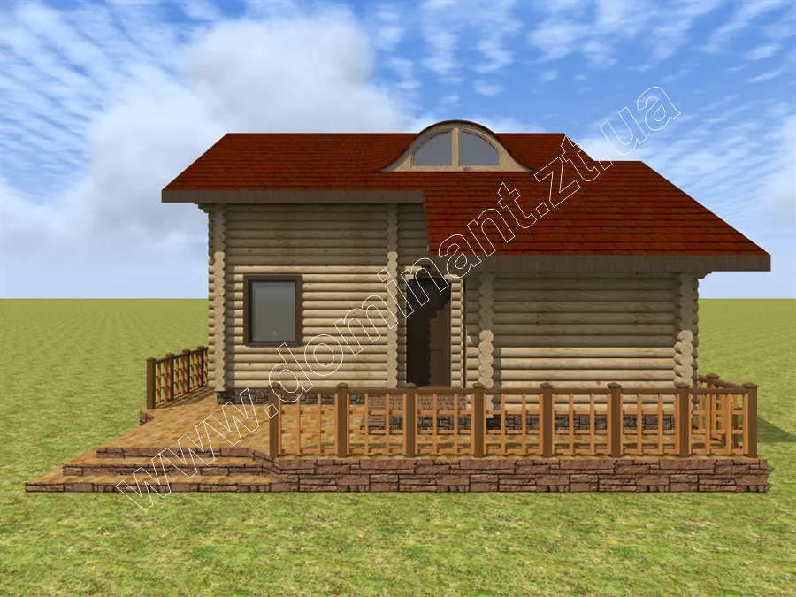 Майданчик навколо будинку, виділений фундаментом і ступенями, і огороджений фігурним парканчиком, грає роль відкритої тераси. Тут можна або встановити тимчасовий павільйон з легкої тканини, що захистить від спеки і відкритих сонячних променів, або додати криту терасу. Визначитися з цим вам допоможе наша стаття «Тераса: ідеї оформлення dominant-wood.com.ua/uk/blog/statti/terasa-idei-oformlennya. Також при виборі матеріалів для будівництва варто ознайомитися з нашою статтею: «З чого будувати будинок? Порівнюємо різні матеріали для будівництва будинку» dominant-wood.com.ua/uk/blog/statti/z-chogo-buduvati-budinok.
