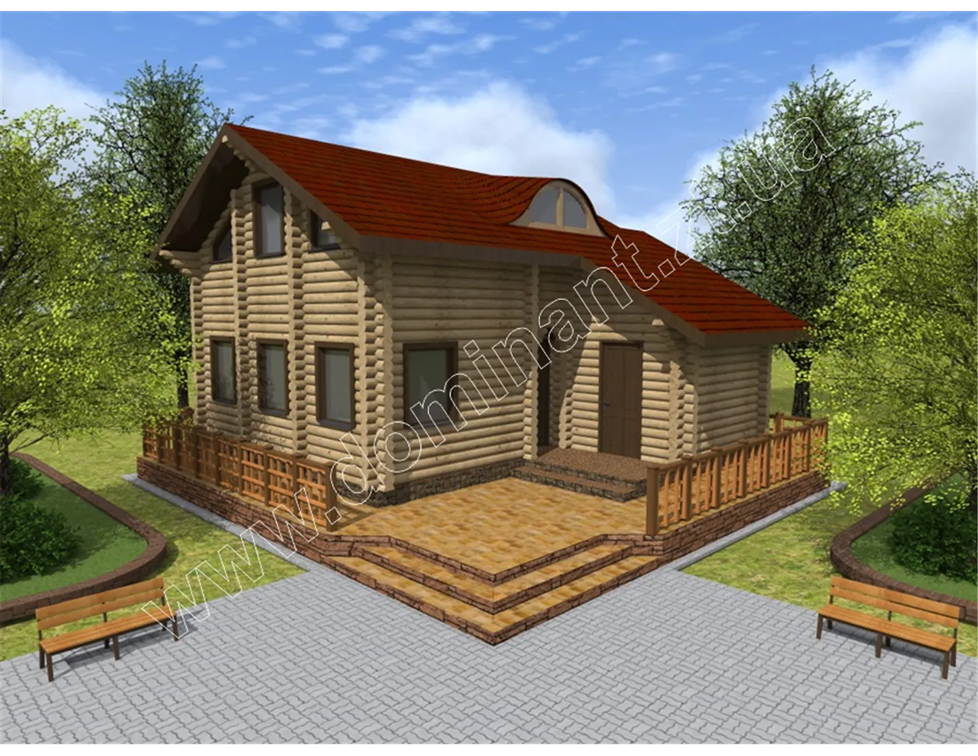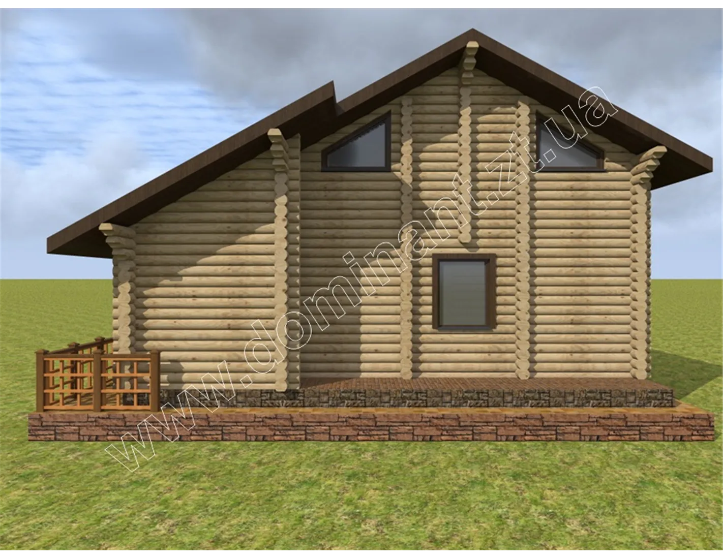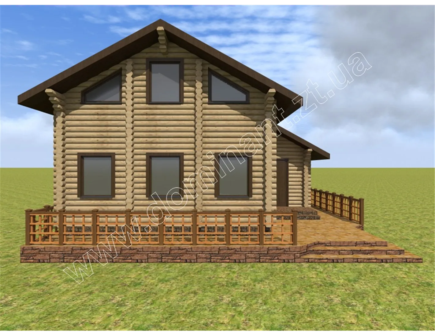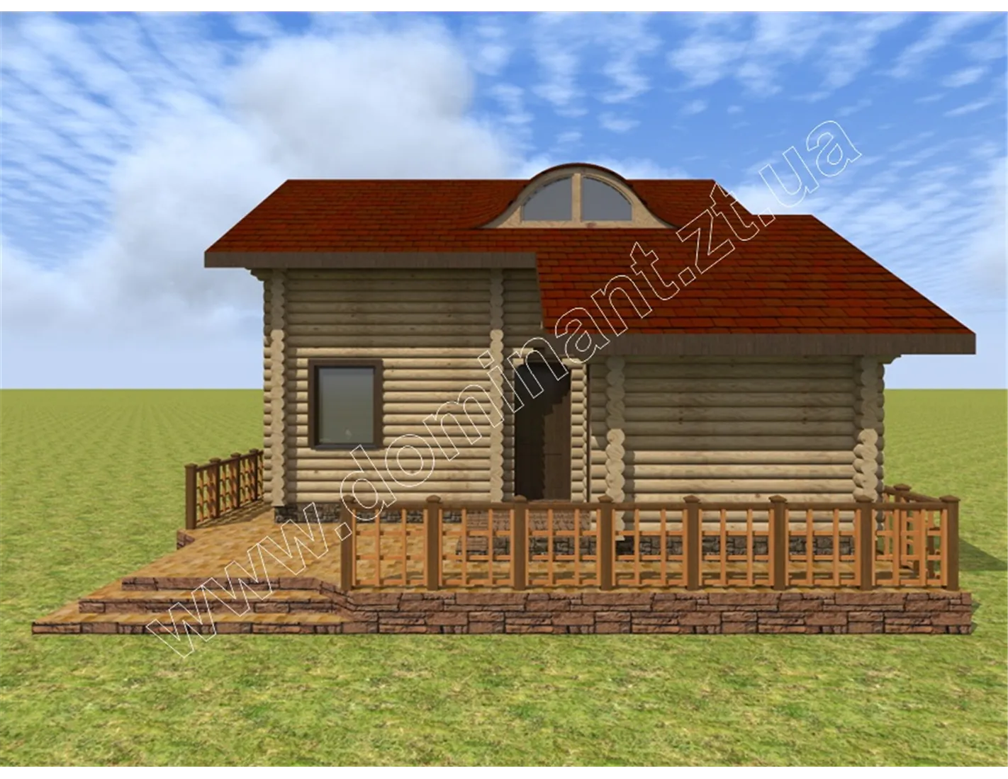Майданчик навколо будинку, виділений фундаментом і ступенями, і огороджений фігурним парканчиком, грає роль відкритої тераси. Тут можна або встановити тимчасовий павільйон з легкої тканини, що захистить від спеки і відкритих сонячних променів, або додати криту терасу. Визначитися з цим вам допоможе наша стаття «Тераса: ідеї оформлення dominant-wood.com.ua/uk/blog/statti/terasa-idei-oformlennya. Також при виборі матеріалів для будівництва варто ознайомитися з нашою статтею: «З чого будувати будинок? Порівнюємо різні матеріали для будівництва будинку» dominant-wood.com.ua/uk/blog/statti/z-chogo-buduvati-budinok.