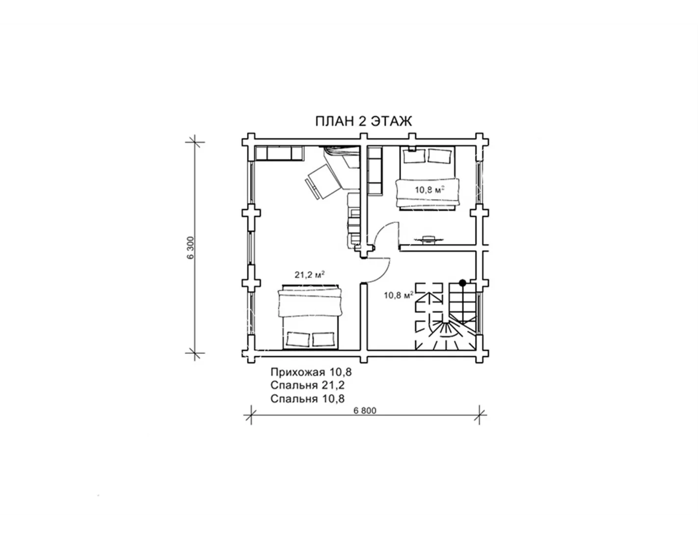 Проект двоповерхового будинку 8х9 м з брусу - «Гордій»