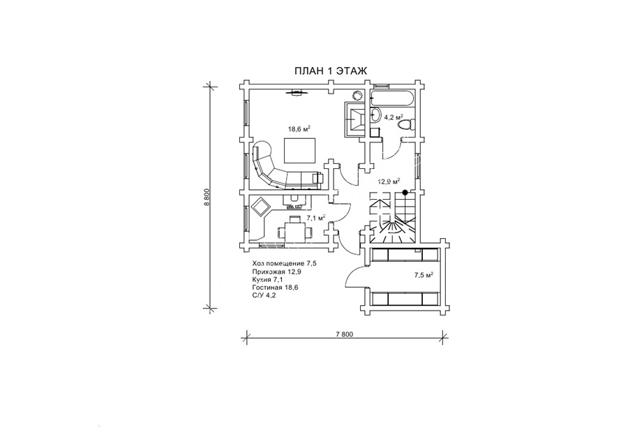 кімната (м²)7,5