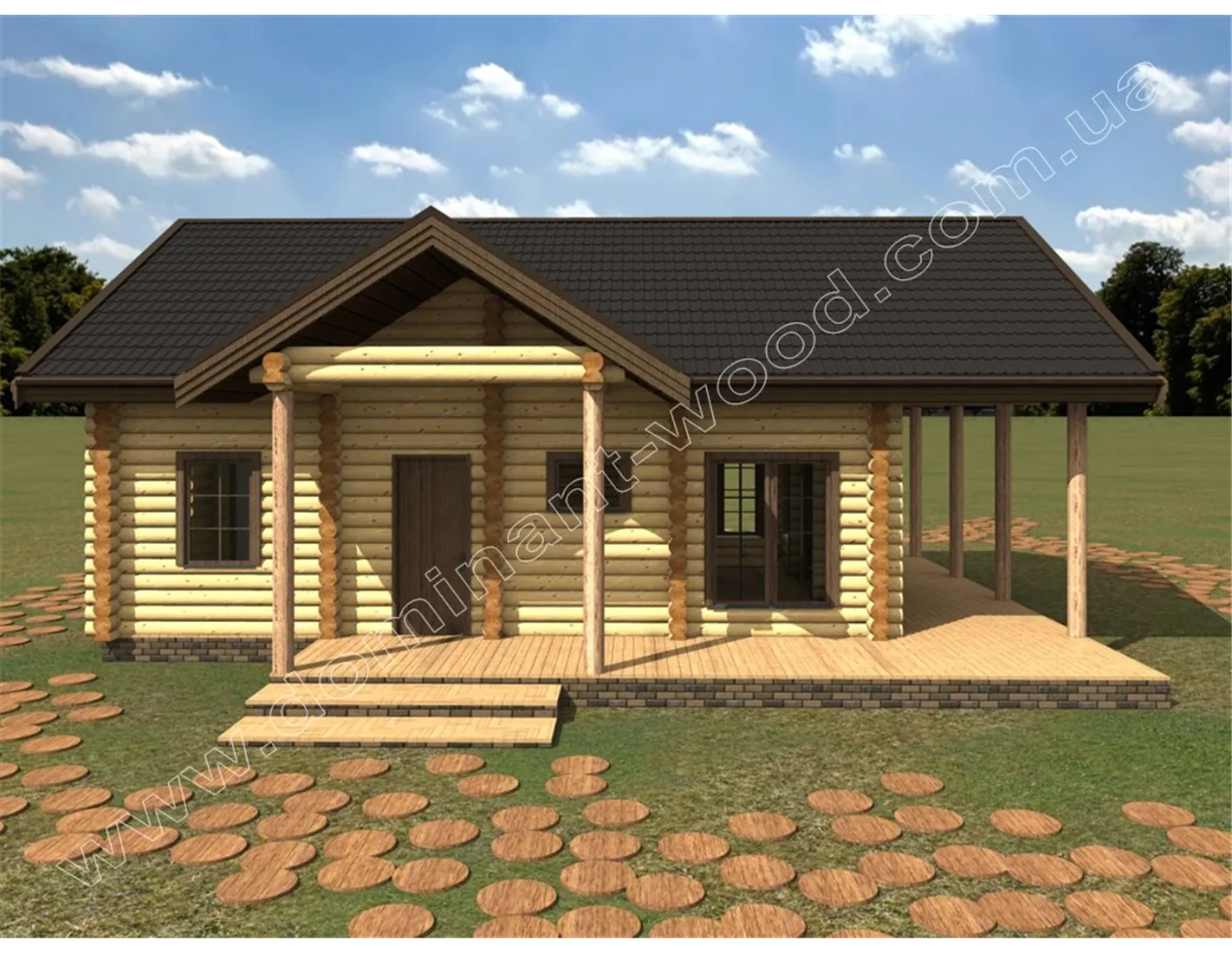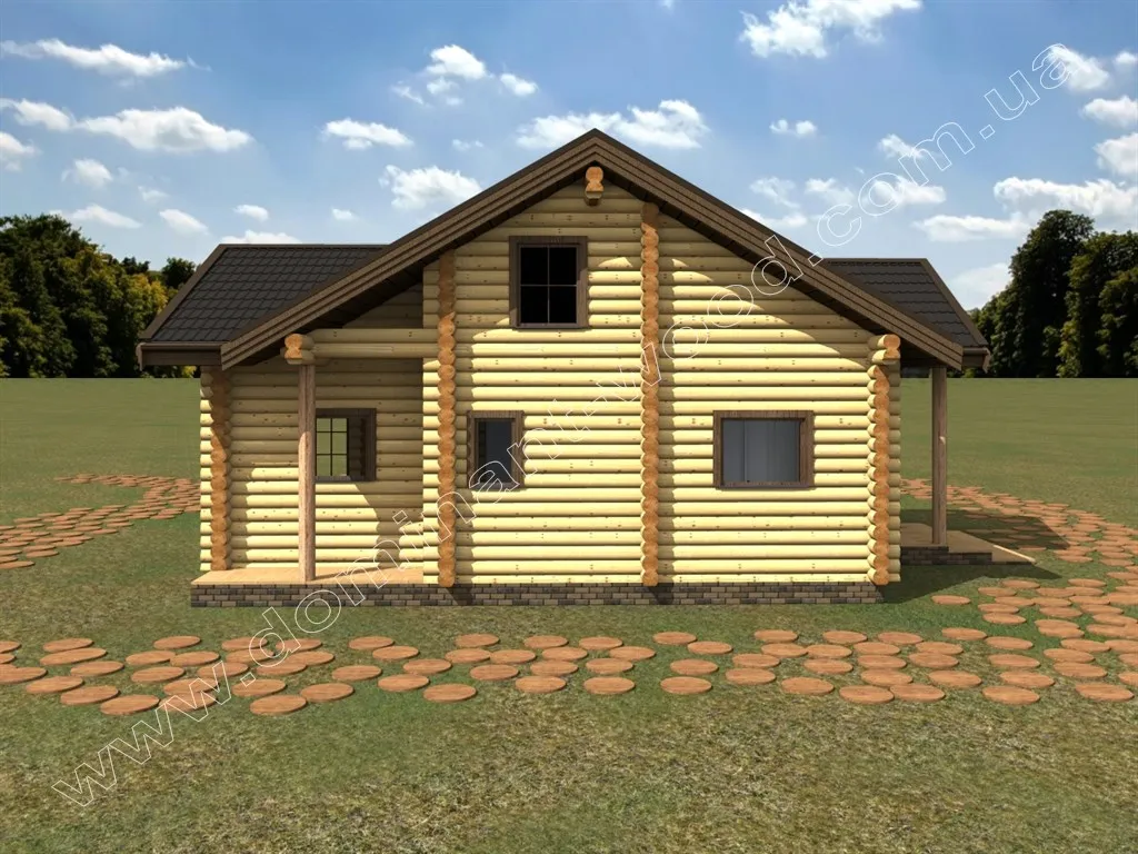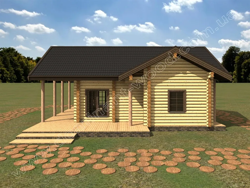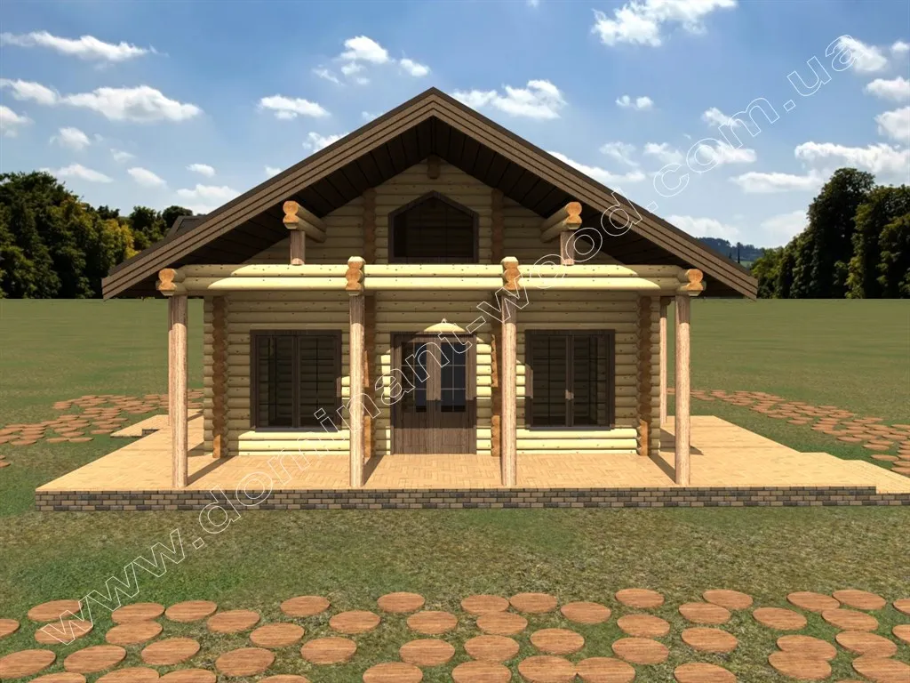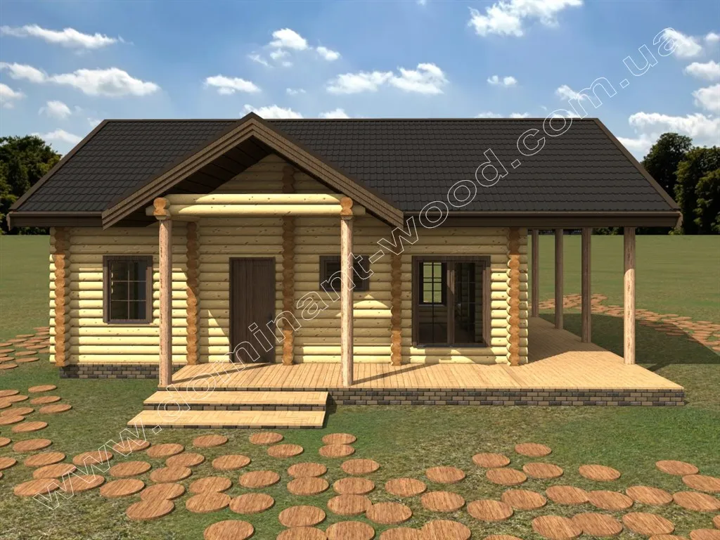 Проект будинку з оциліндрованих колод з терасою