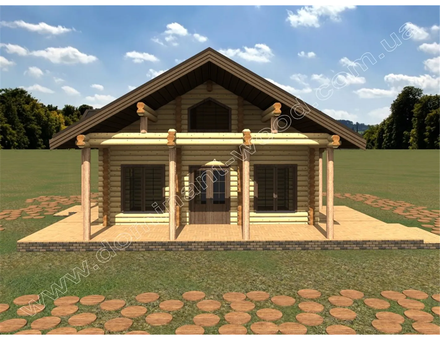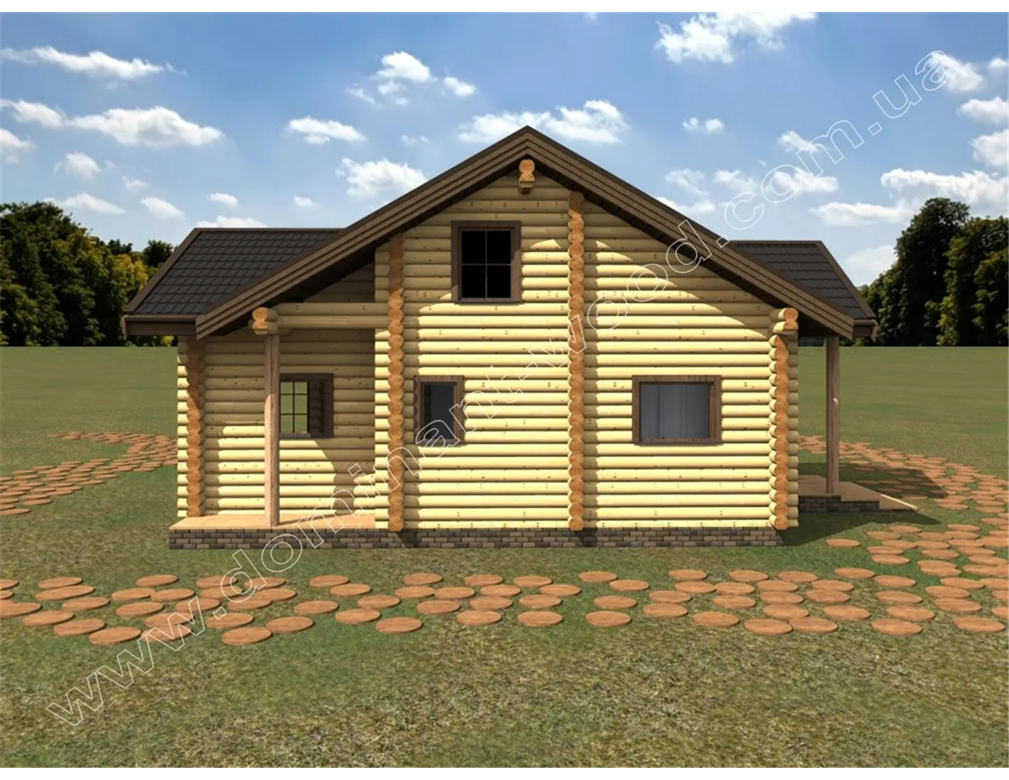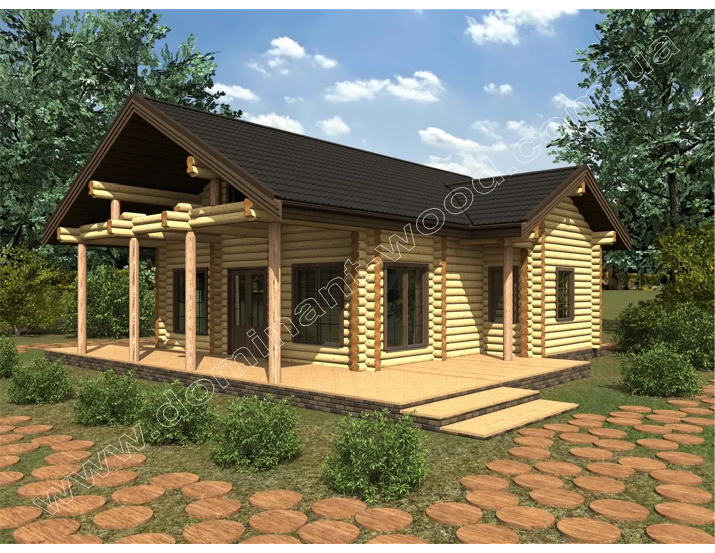 Проект будинку з оциліндрованих колод з терасою