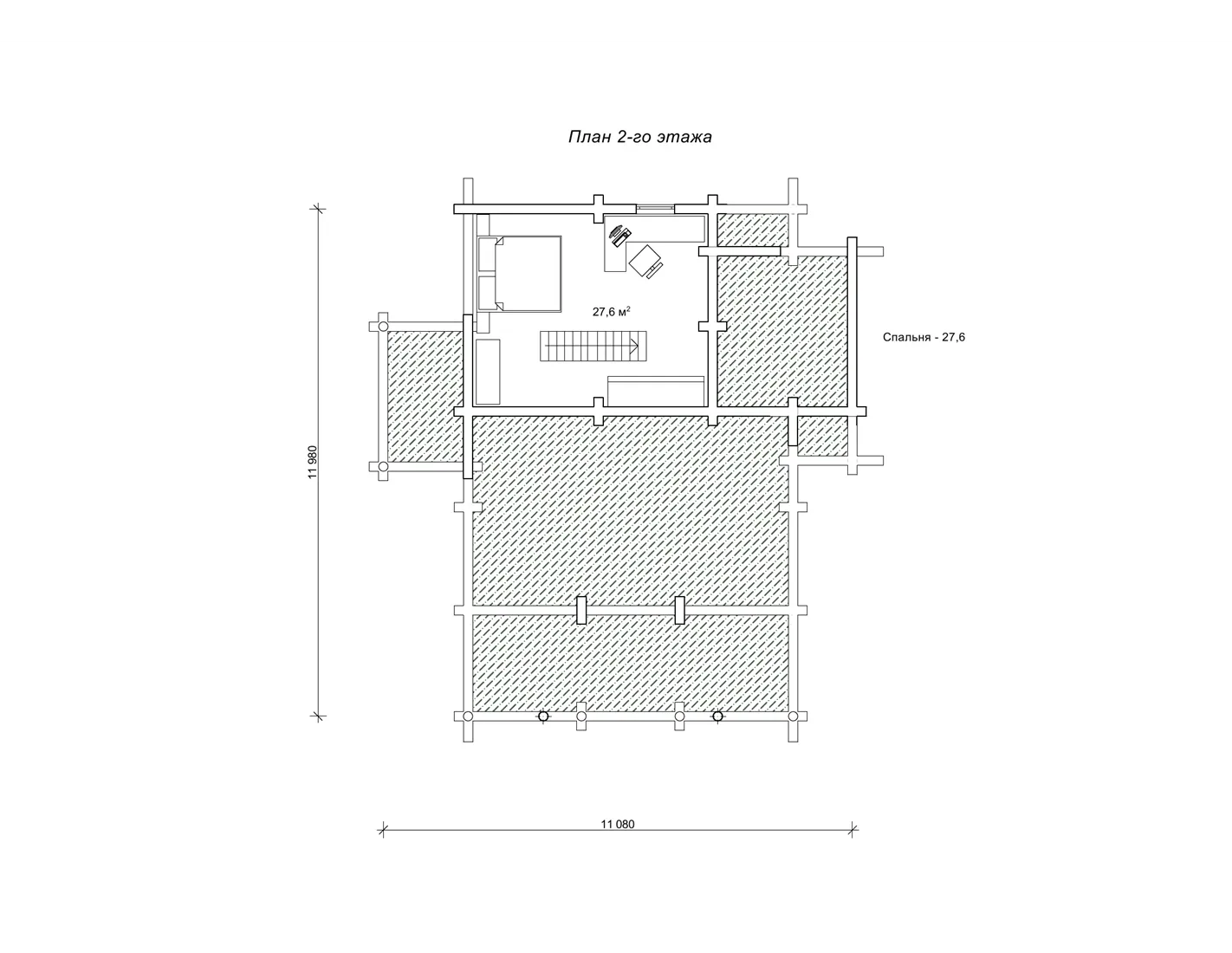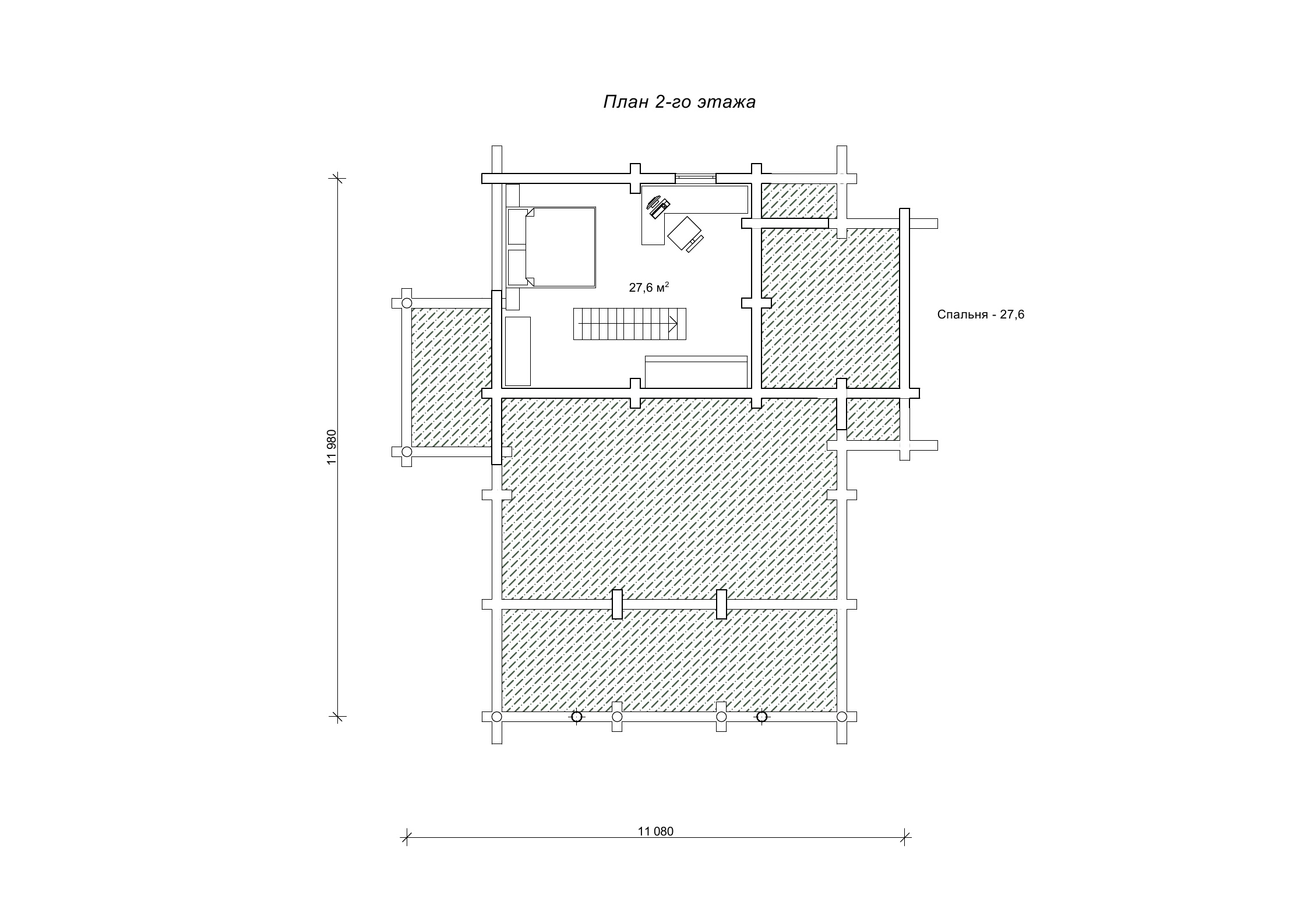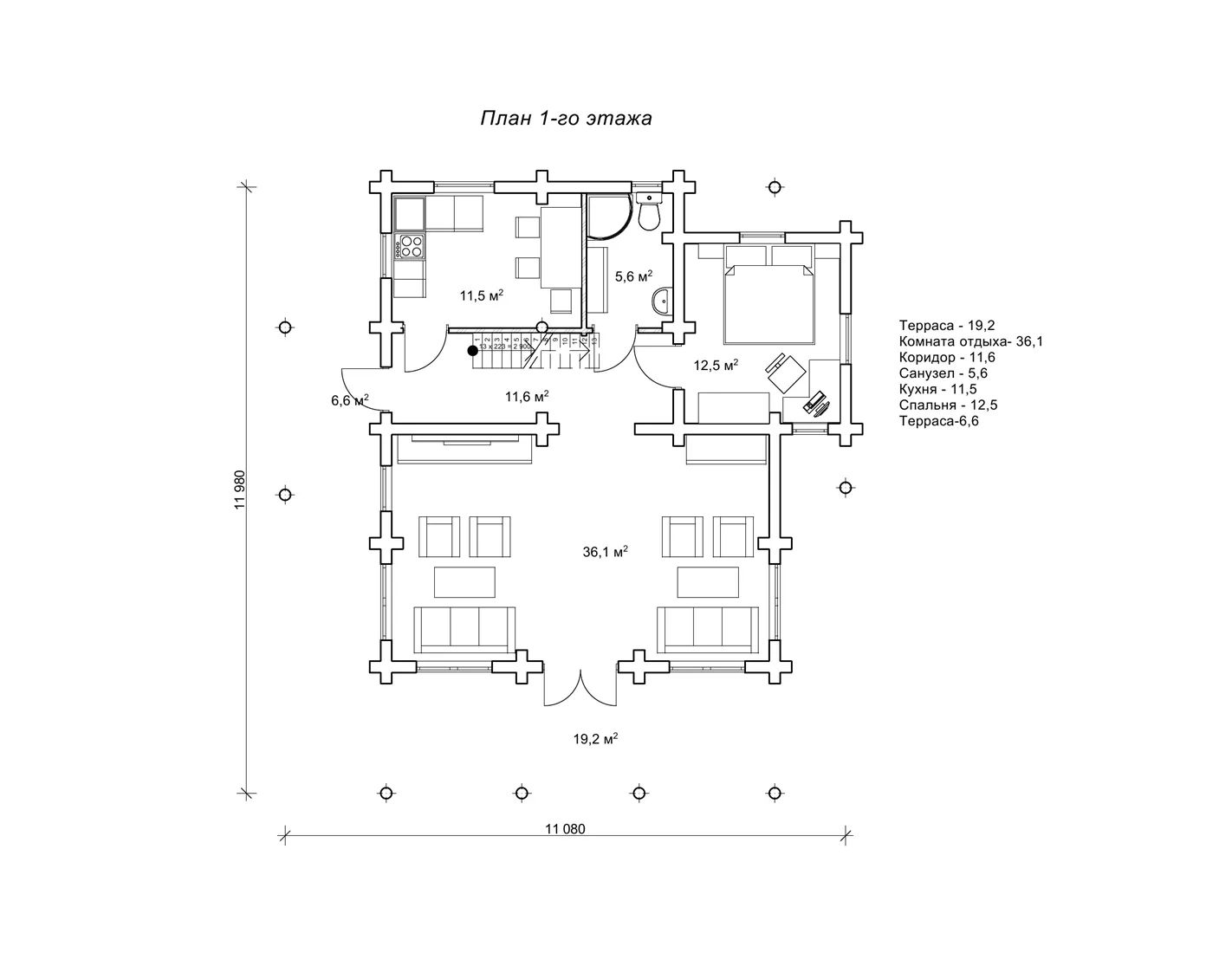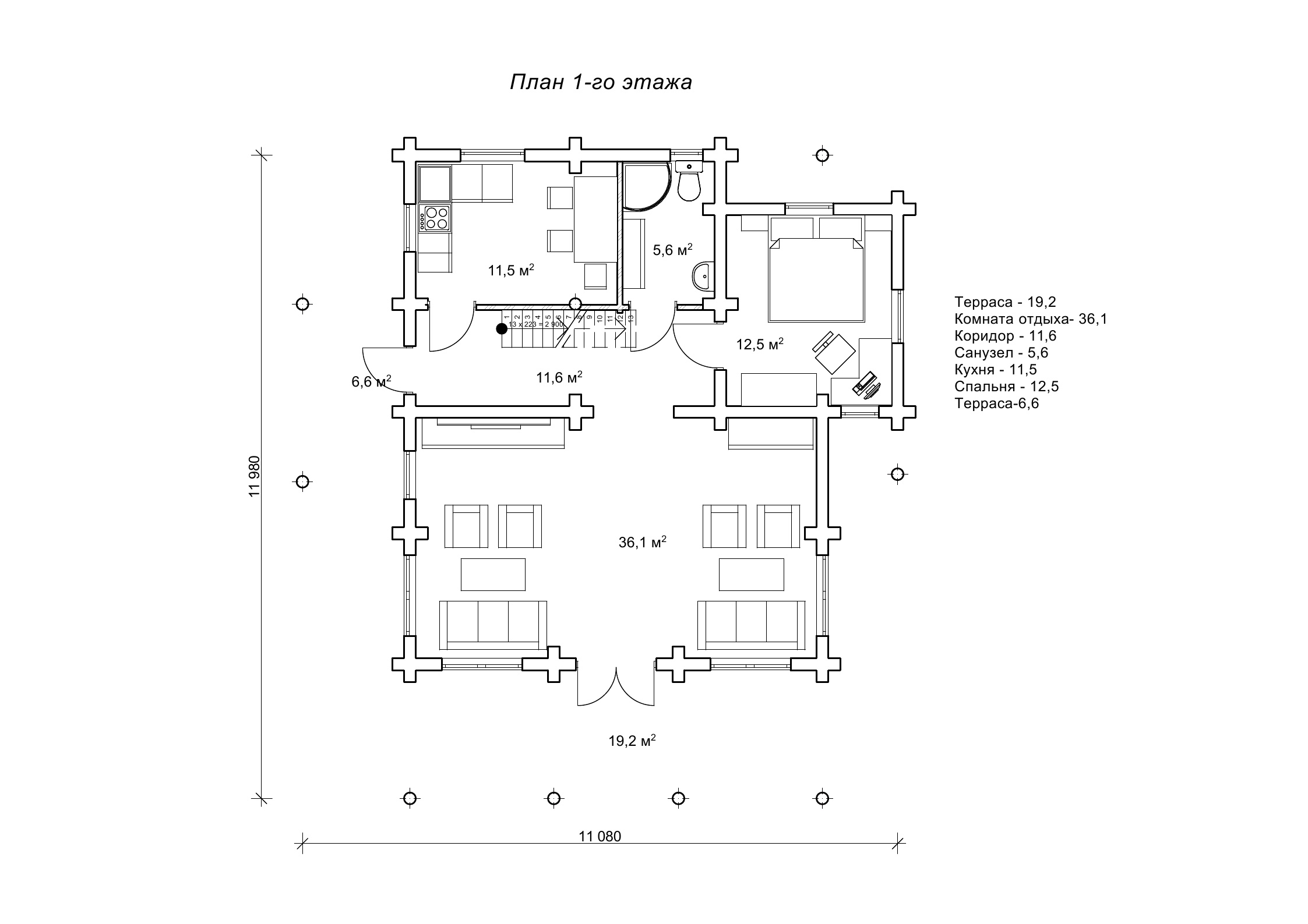 План заміського будинку з колод 11,9 х 11 м «Гридні»