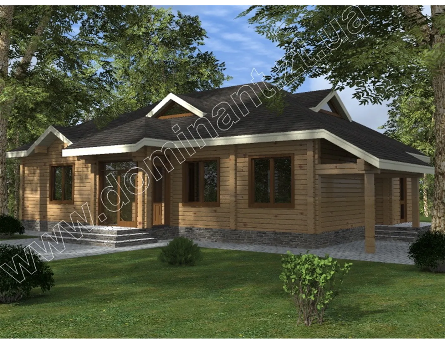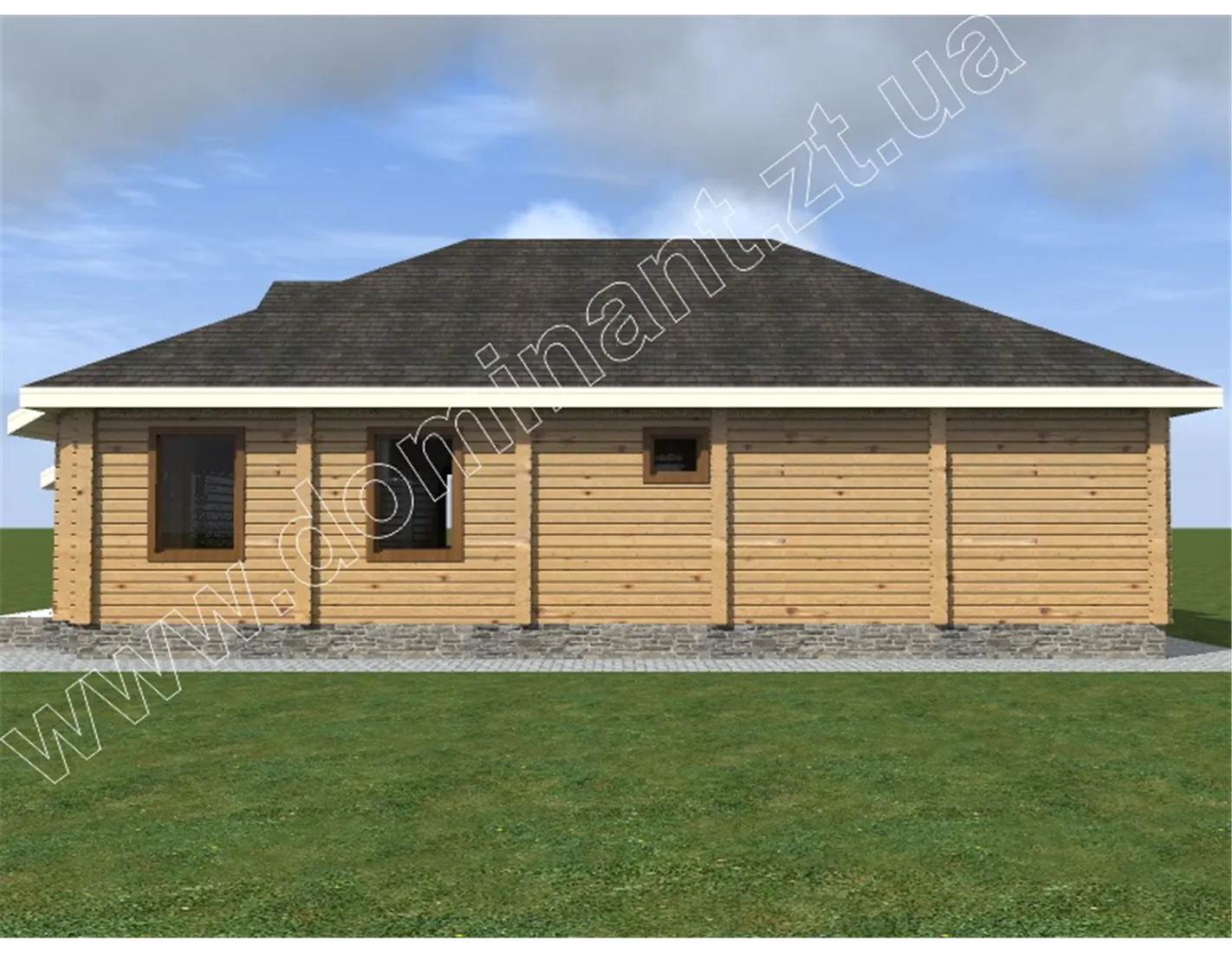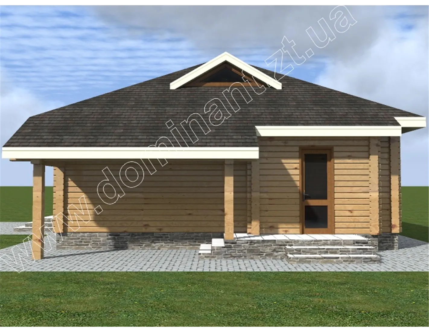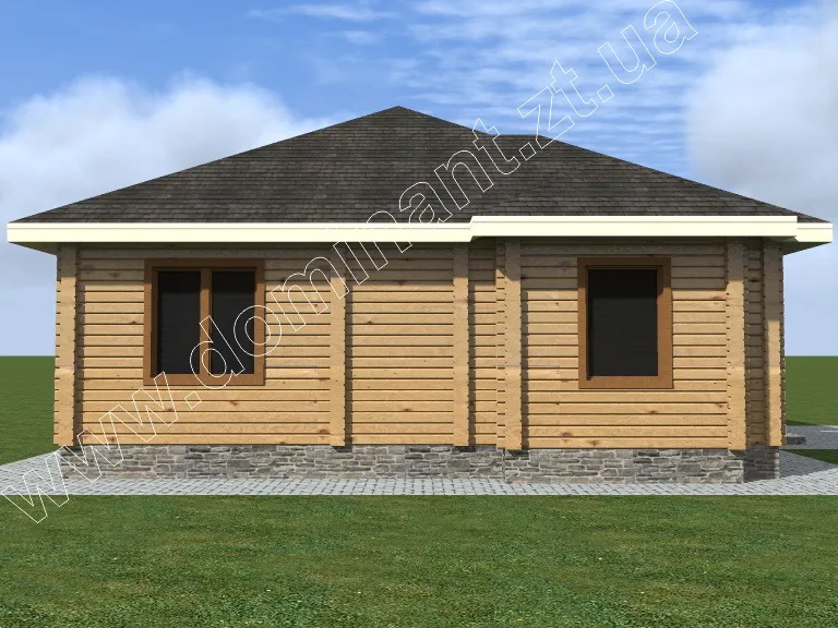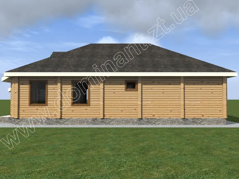 Варто звернути увагу на фундамент в даному проекті. Навколо нього створена кам’яна доріжка і кам’яна галявина, що дозволяє обійти будинок під час негоди, не наступаючи на мокру землю, а також розміститися на свіжому повітрі після дощу, не грузнучи в бруд з меблями. Який фундамент краще встановити під дерев’яний будинок, ви можете дізнатися в нашій статті «Будівництво будинків з дерева: види фундаменту» dominant-wood.com.ua/uk/blog/statti/budivnitstvo-budinkiv-z-dereva-vidi-fundamentu.