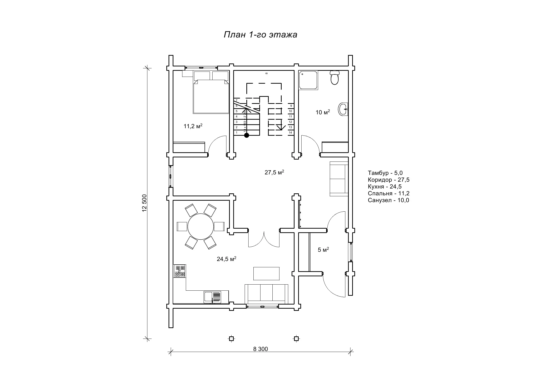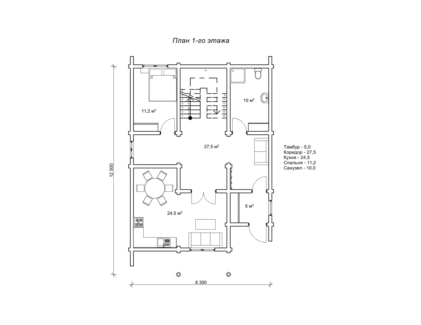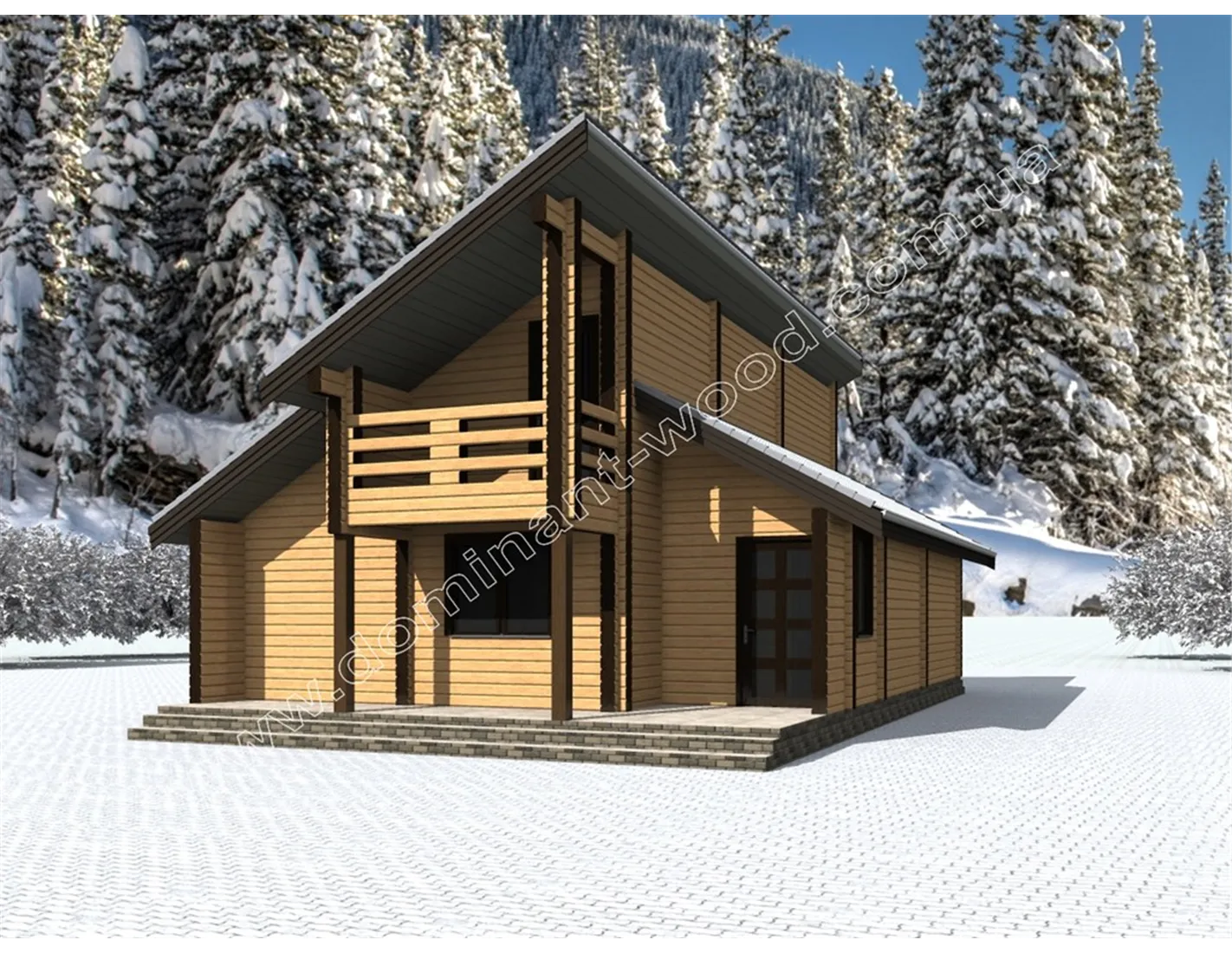 Проект котеджу 12,5 на 8,3 м «Вітрило» з сухого брусу