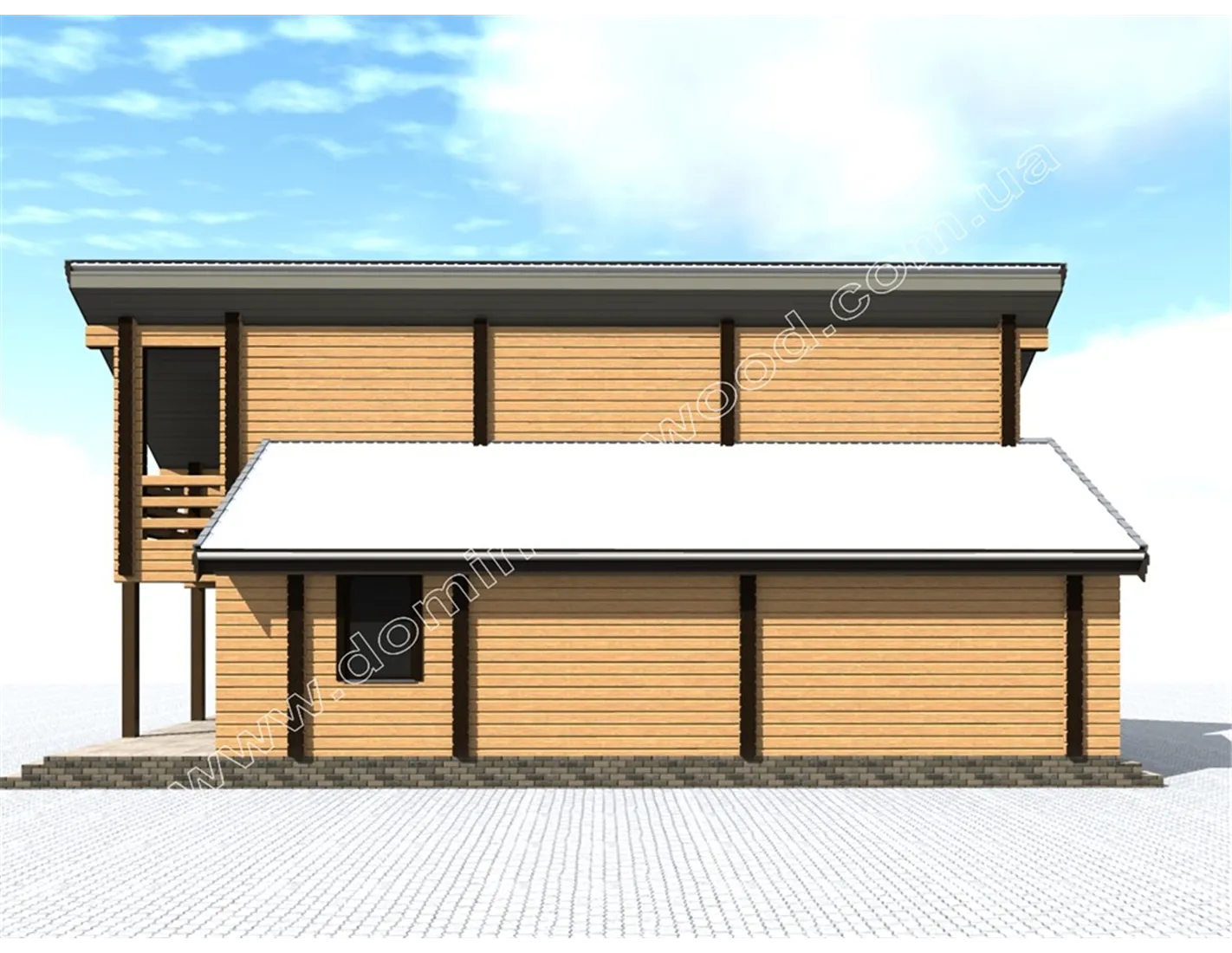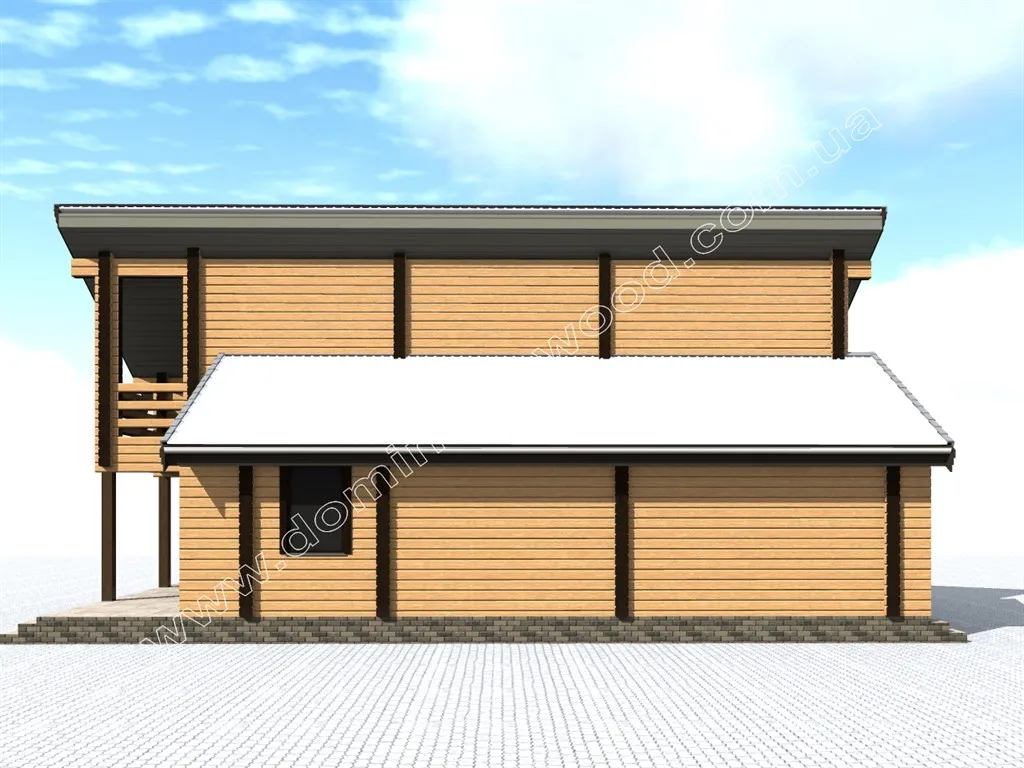 Котедж 12,5 на 8,3 м з сухого бруса в стилі хай-тек - «Вітрило»
